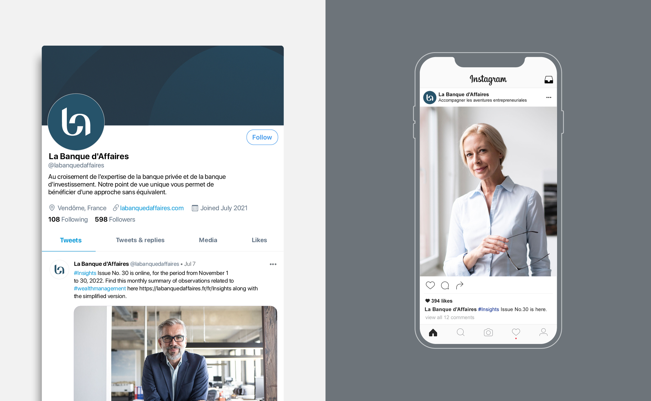 L’identité visuelle La Banque d’Affaires doit asseoir une nouvelle marque crédible et légitime sur le marché de la banque d’affaires, en reflétant la richesse du partenariat des deux marques fondatrices, SwissLife Banque Privée et Alantra. Les dimensions haut de gamme et conseil doivent être très présente dans cette création.