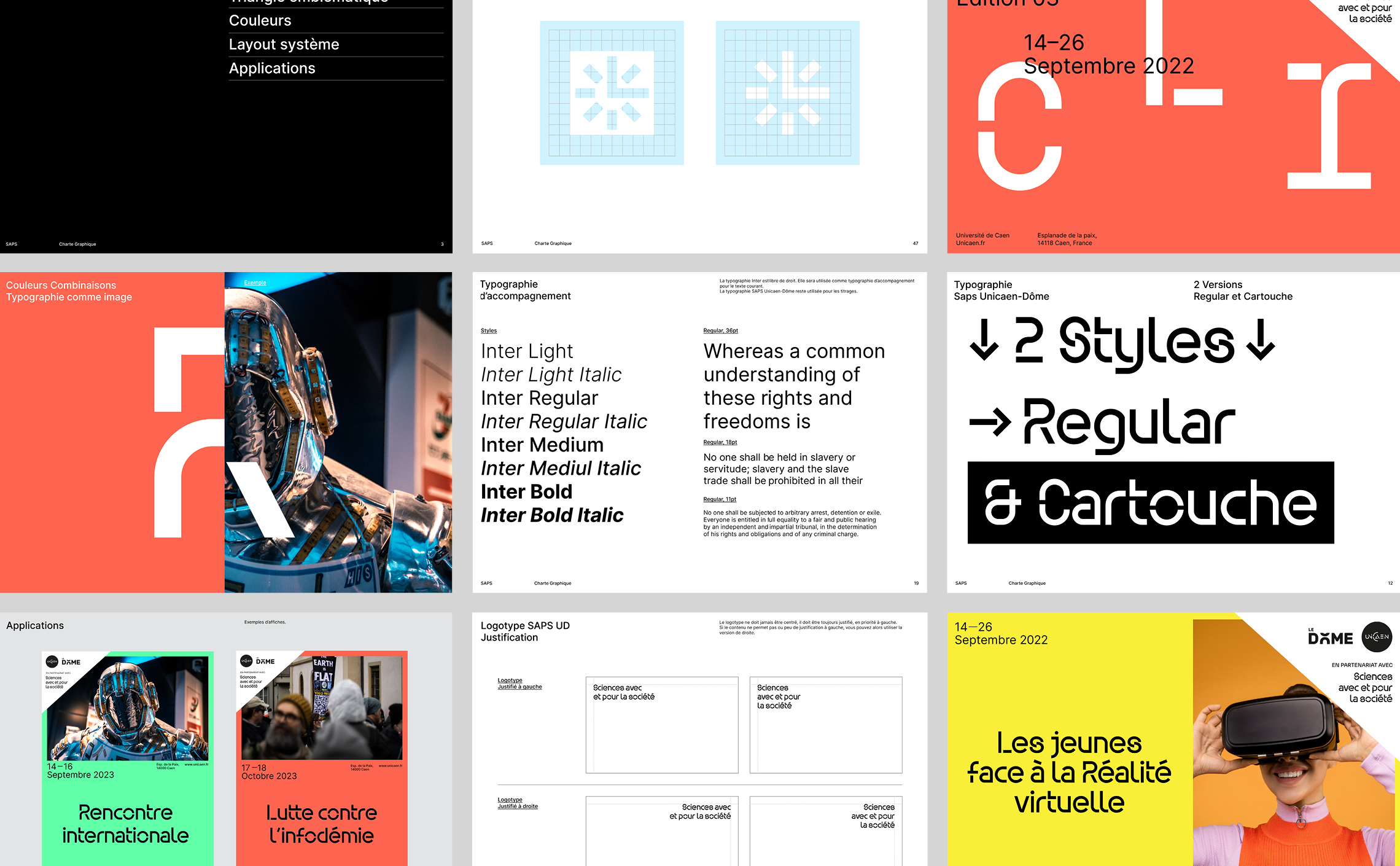 Aucune cohérence graphique n’existait entre la communication des différents programmes existants sous le label SAPS ; l’identité de chaque programme étant soit lié à celle de l'université de Caen, du Dôme ou à sa propre identité. L’université de Caen Normandie a contacté Graphéine pour redéfinir la charte graphique et l’harmonisation des outils de communication de la cellule “Sciences avec et pour la Société” (SAPS) en partenariat avec Le Dôme.