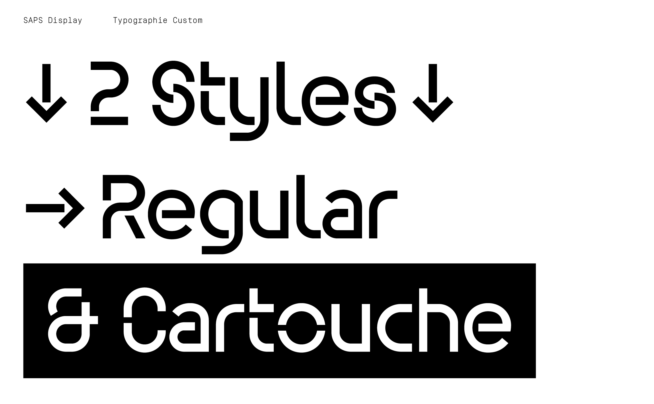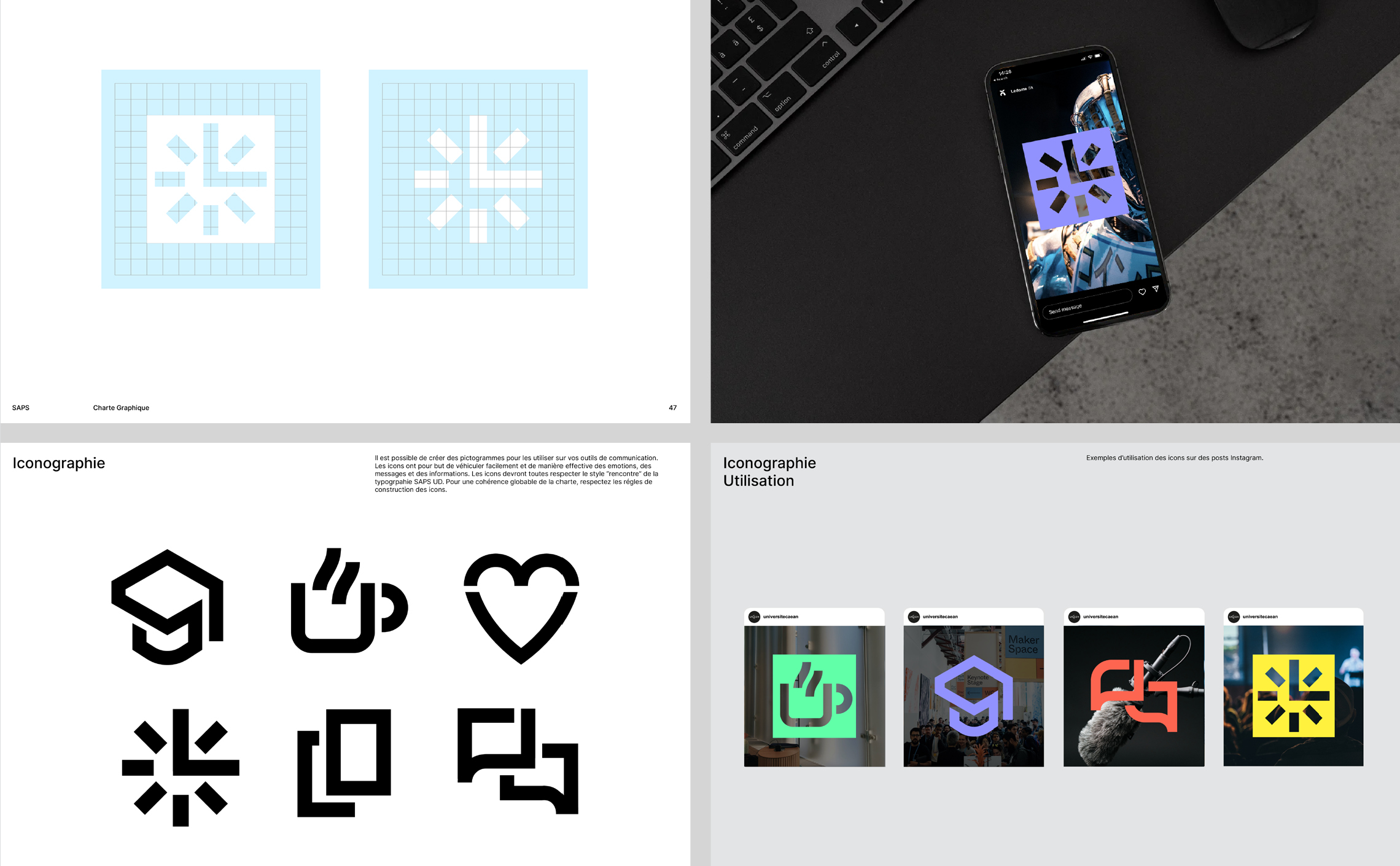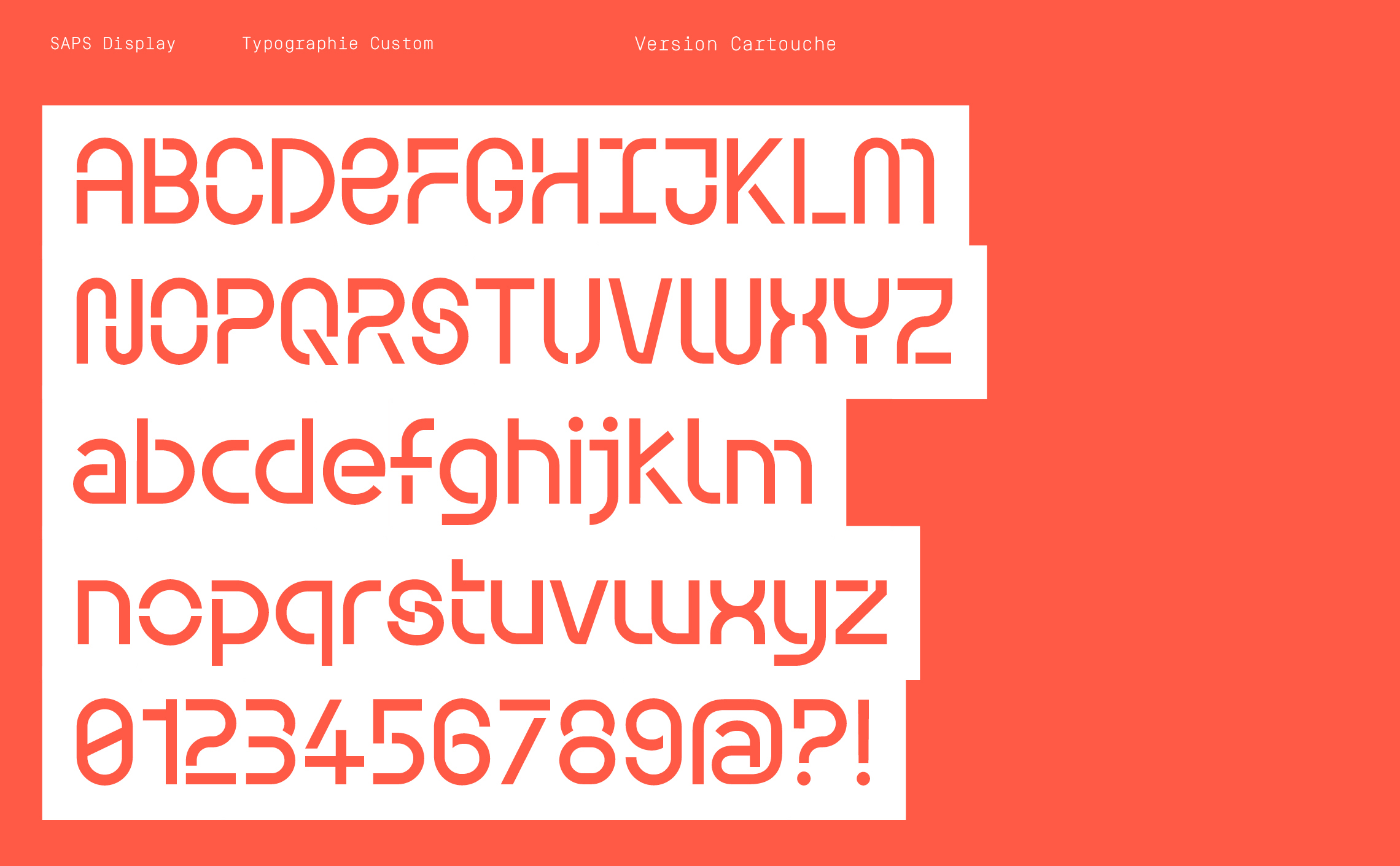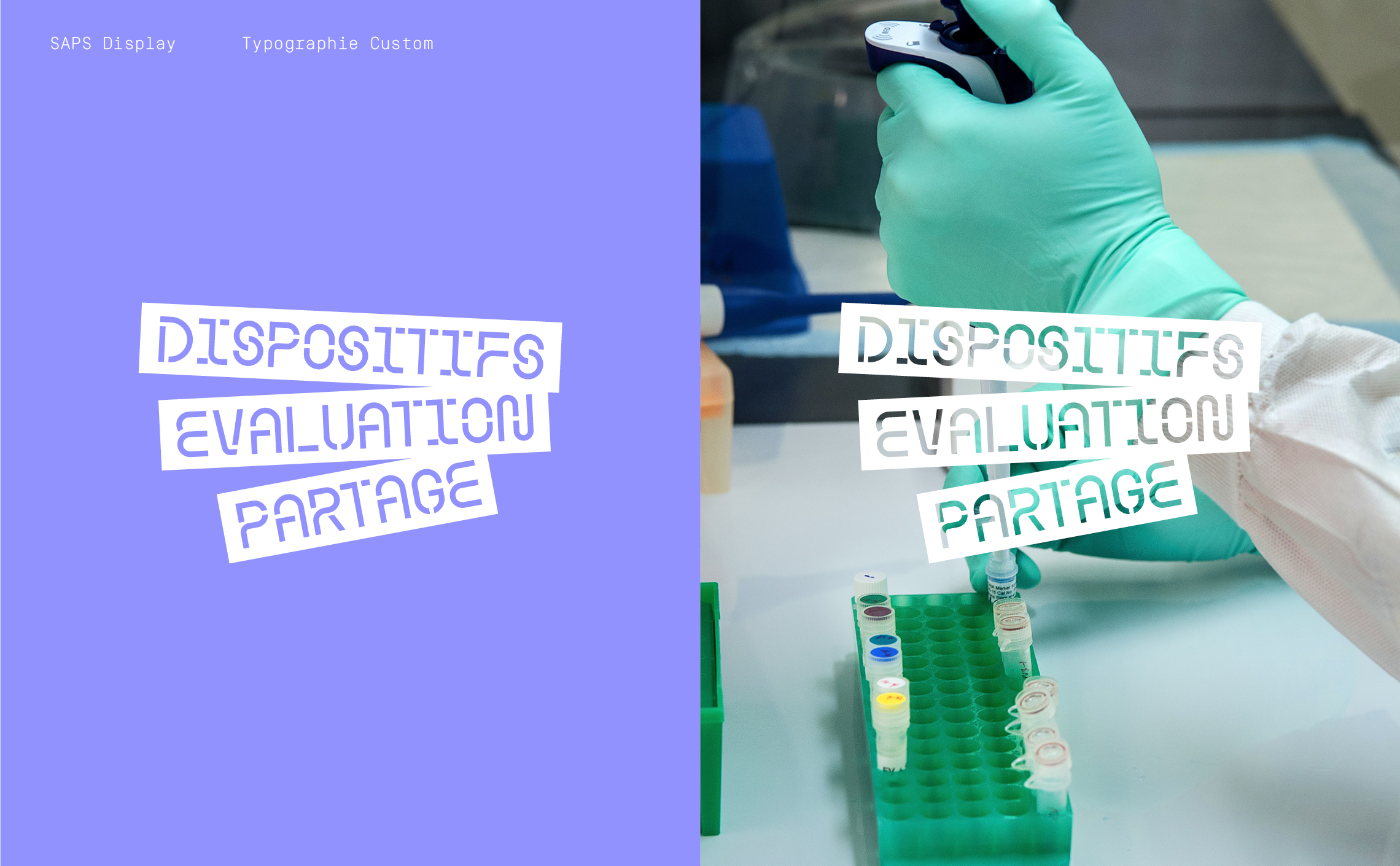 Nous avons donc choisi de créer un univers visuel basé sur une typographie custom “formes croisées”. Marquer l'identité du label SAPS par la typographie permettait de garder une grande flexibilité sur la mise en page et l'iconographie tout en labellisant les programmes SAPS sous le même drapeau.