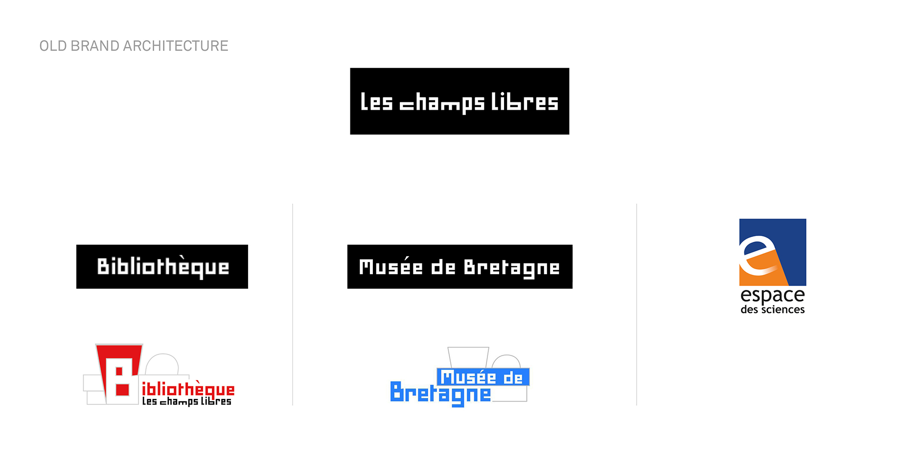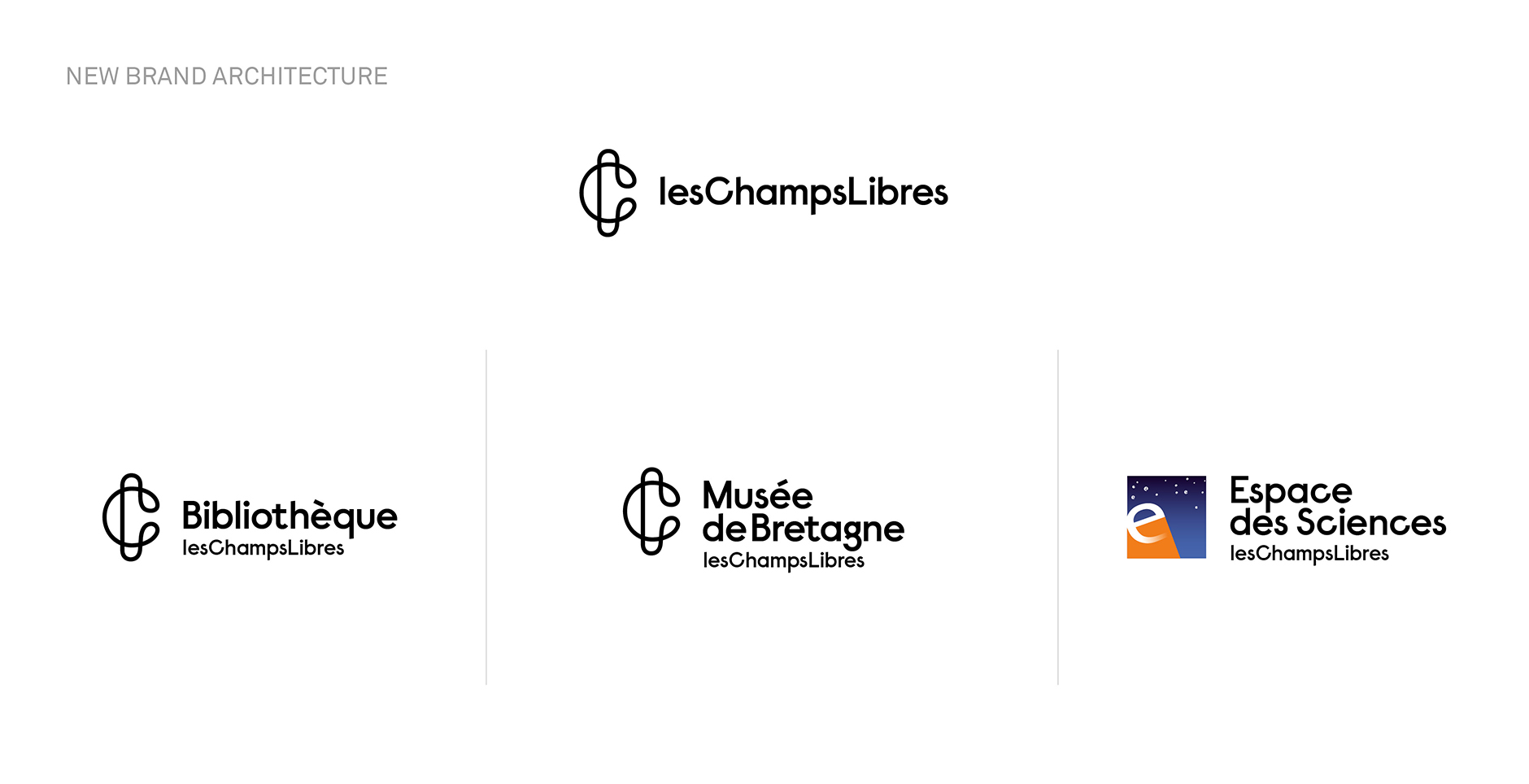 La nouvelle identité visuelle des Champs Libres se devait de mettre en place une architecture de marque globale claire vis à vis de ses constituantes.