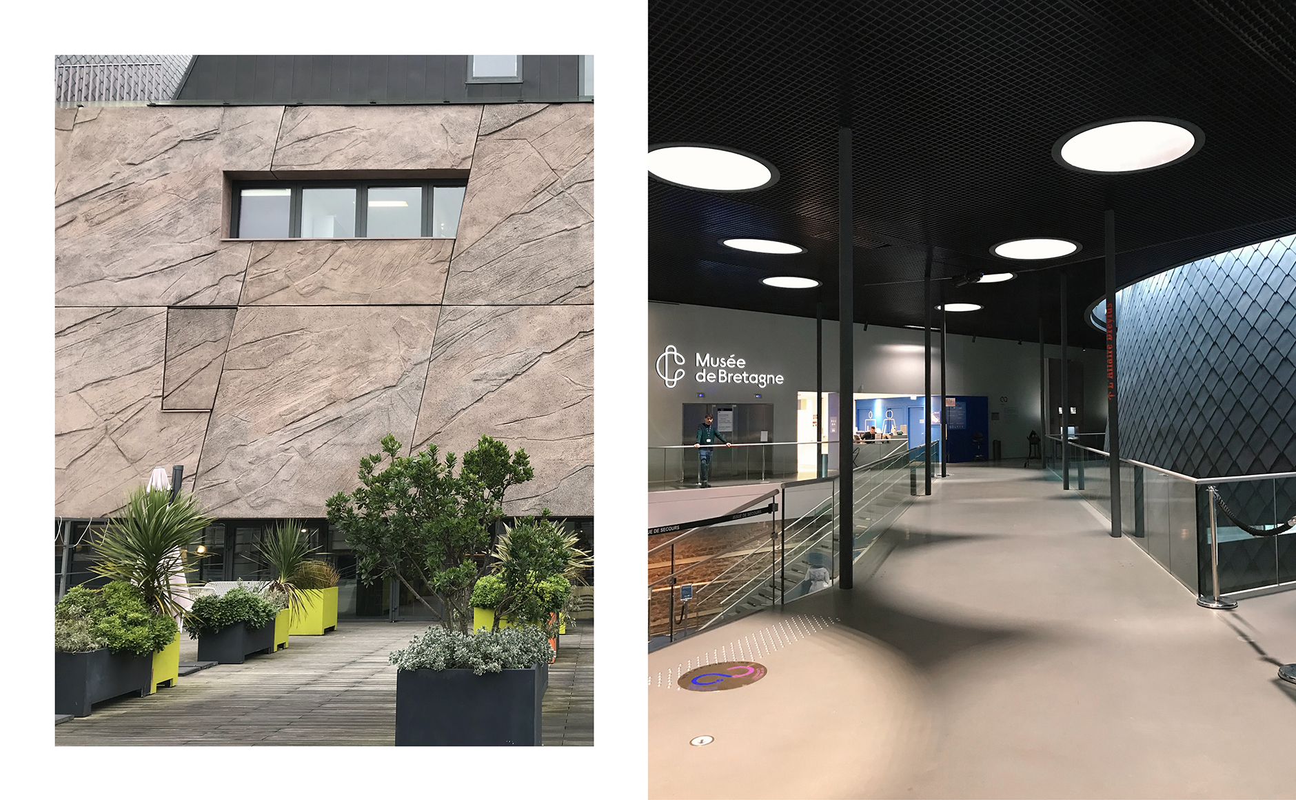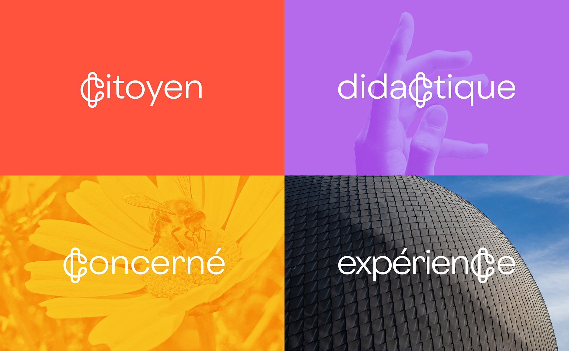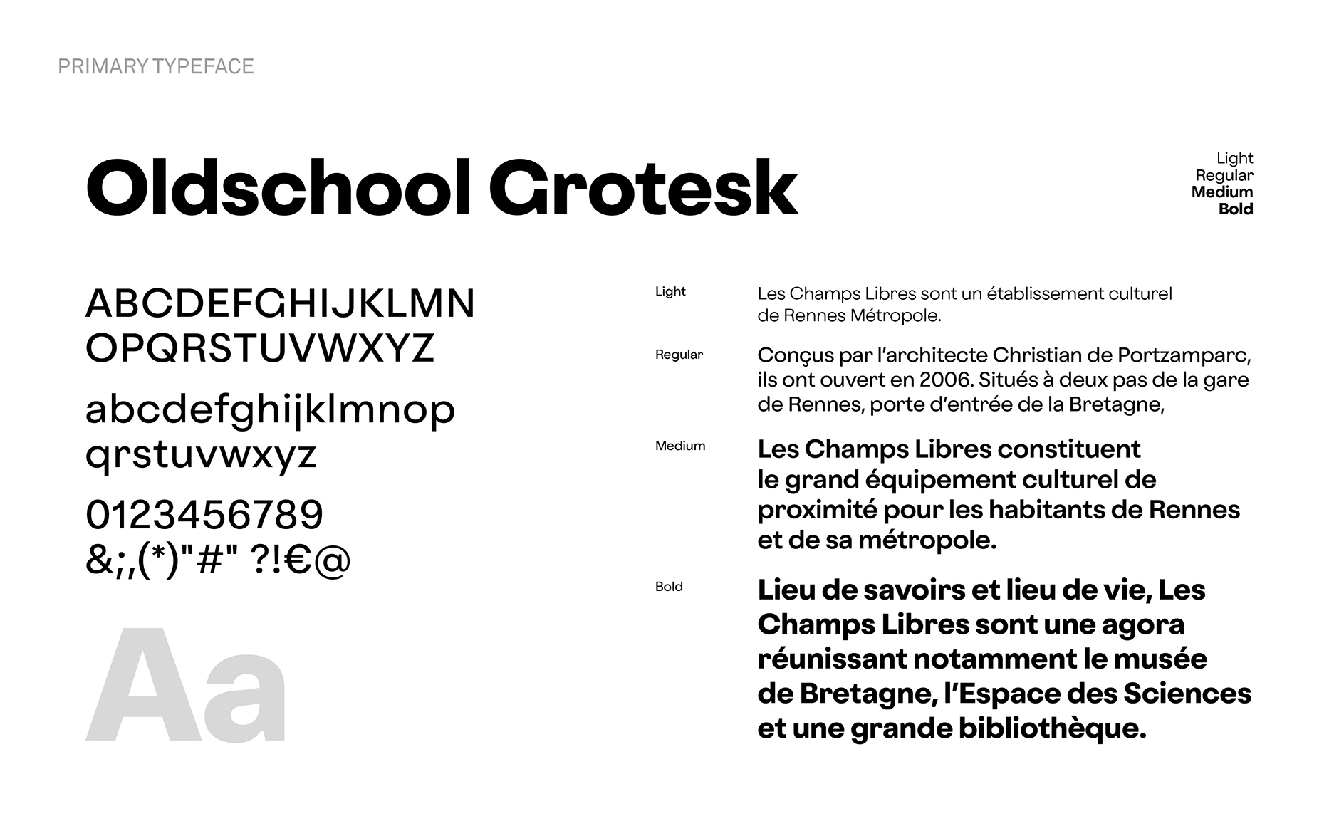 Les logos de la Bibliothèque et du Musée de Bretagne étaient également composés en Minimum dans sa version classique. Seul l’Espace des Sciences possédait un logotype à part entière sans lien avec les autres entités. Cette scission empêchait une bonne lisibilité du projet et complexifiait la compréhension du lieu.