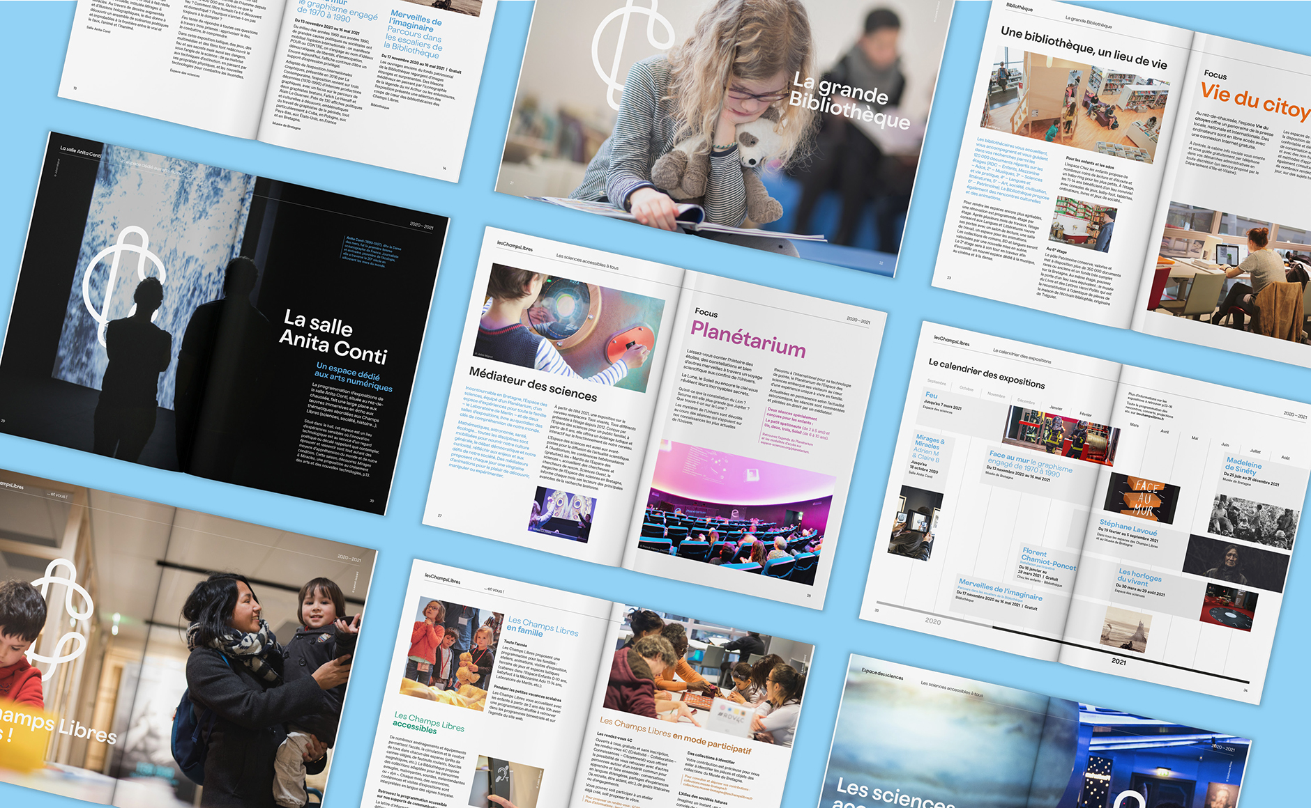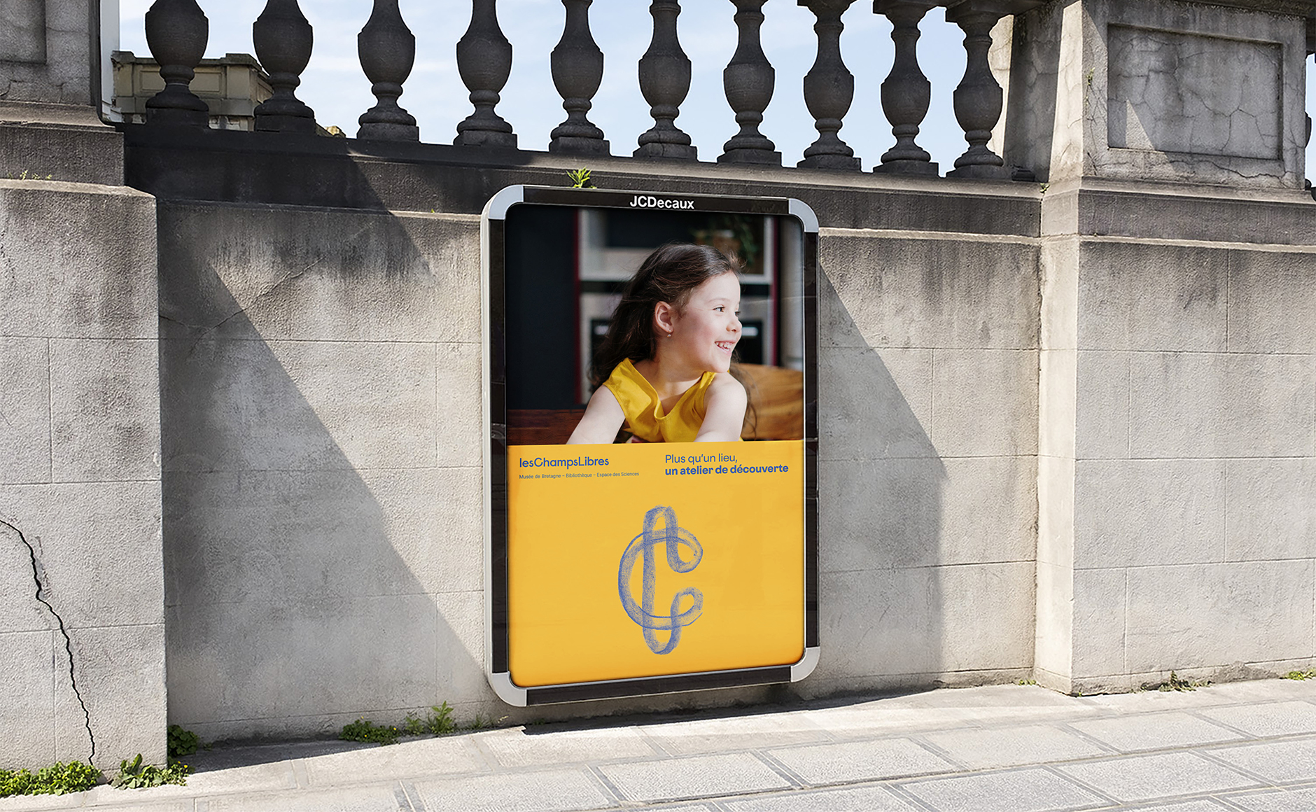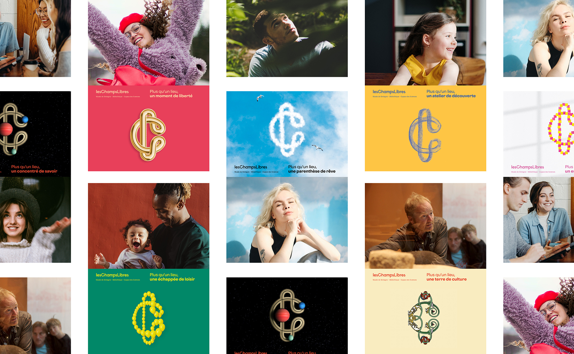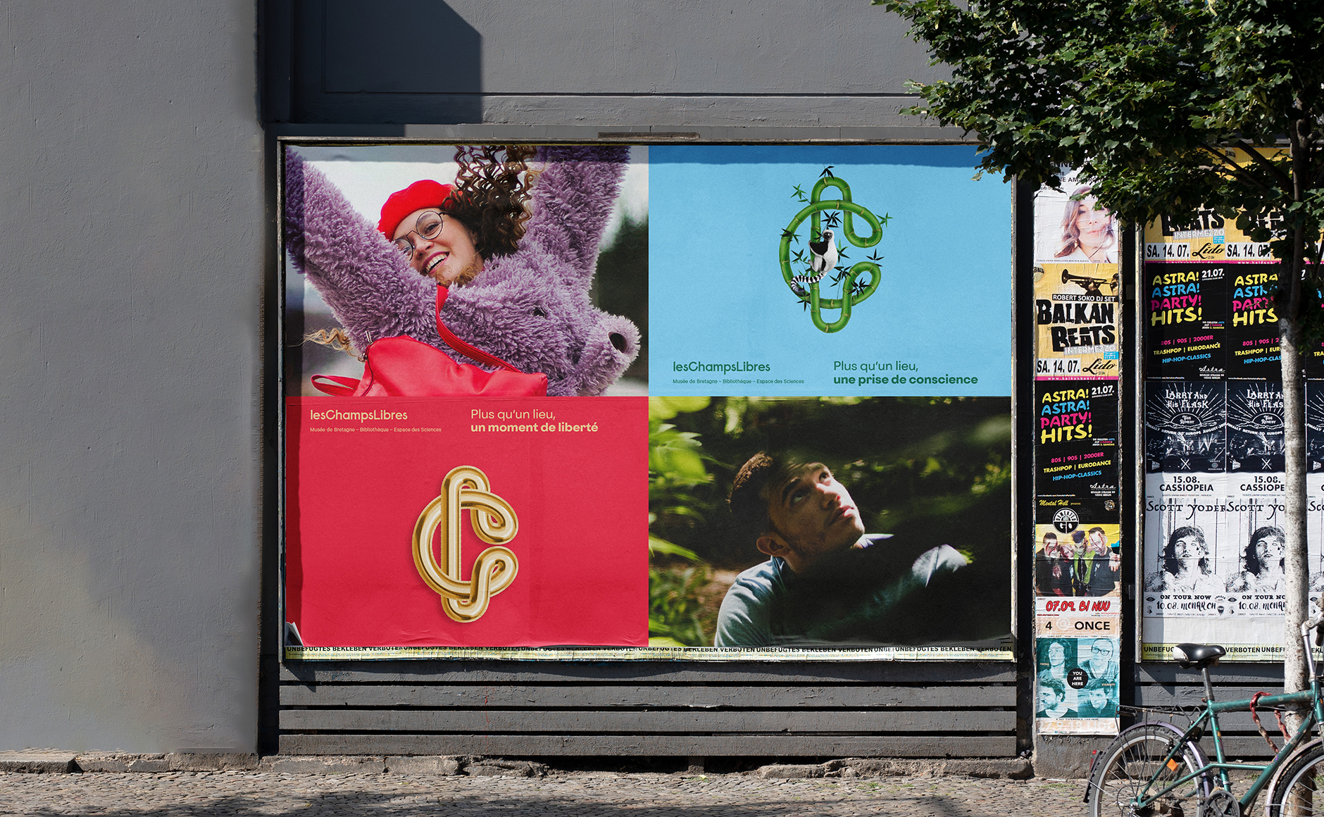 Il nous tenait à cœur de proposer une identité qui ne soit pas rigide afin que chacun puisse s’approprier les Champs Libres et ainsi développer son lien affectif au lieu. Chacun peut se réapproprier l’emblème : le dessiner, le décorer. Son potentiel de déclinaison infini lui assure de pouvoir être au cœur de la communication des Champs Libres et de ses différentes entités pendant de nombreuses années.