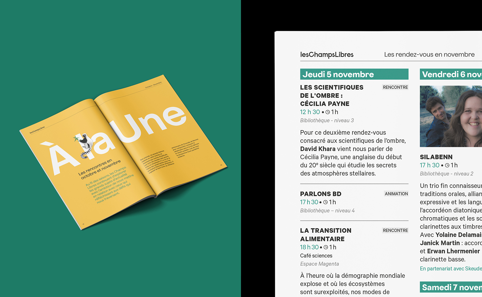 Graphéine a eu pour mission de créer l’identité visuelle d’un lieu mais aussi d’une expérience. Nous devions résoudre la problématique d’architecture de marque en unissant les 3 entités sous un même étendard. Créer un logo qui réaffirme les valeurs des Champs Libres «maison accueillante, commune, plurielle» et qui fidélise les publics.