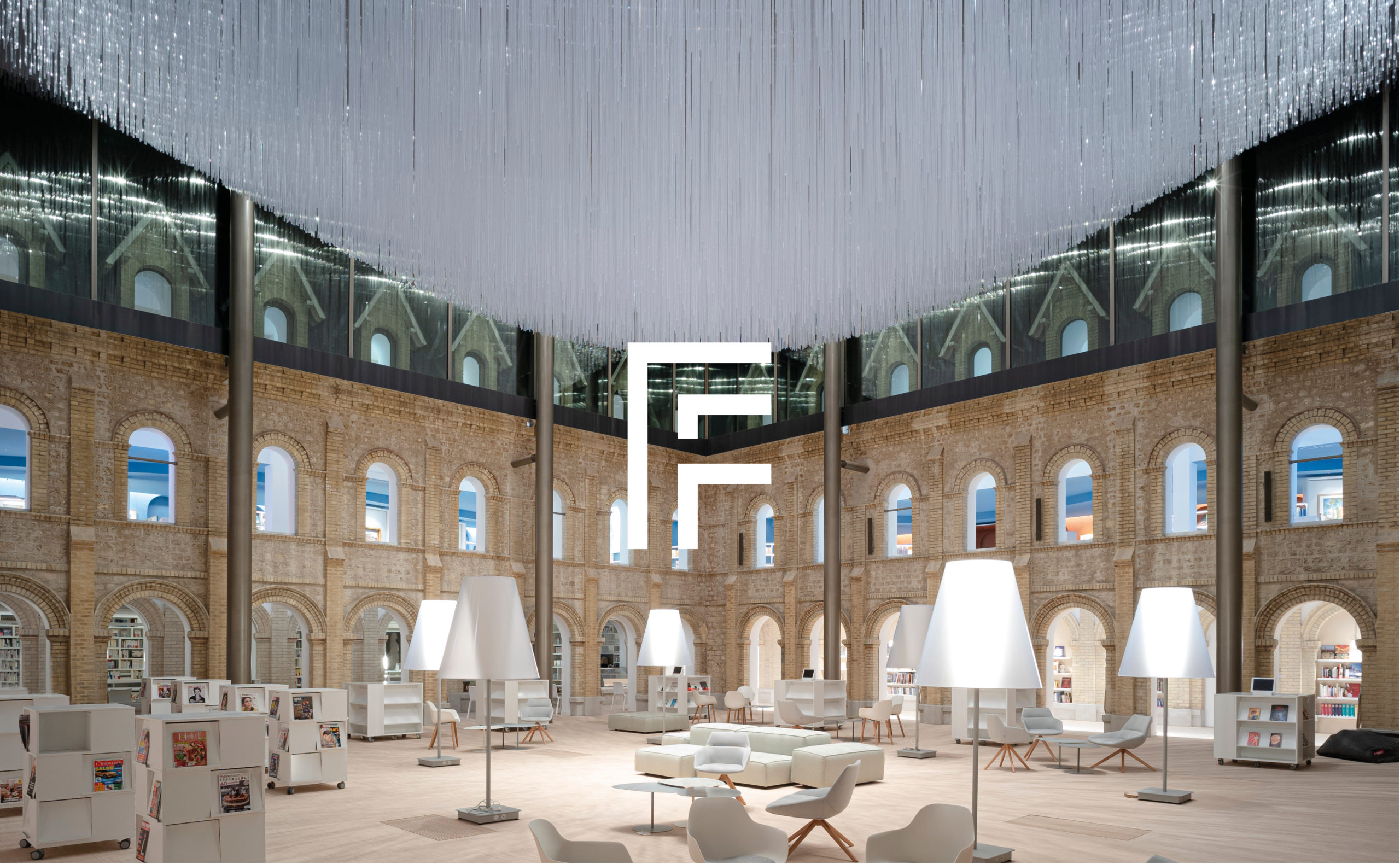 Dès l’étude du projet dans la phase de candidature, nous avons accordé une grande importance à cette dimension architecturale pour définir l’identité visuelle des Franciscaines. L’étude du bâtiment nous a permis d’appréhender un lieu très ouvert avec un grand potentiel de déambulation. Sous cet angle, nous avons découvert la lettre « F » que dessine le bâtiment vu du ciel. Le choix du monogramme s’est alors rapidement imposé comme une évidence, tant pour sa force évocatrice que par son efficacité à inscrire une offre nouvelle dans le quotidien des Deauvillais-es.