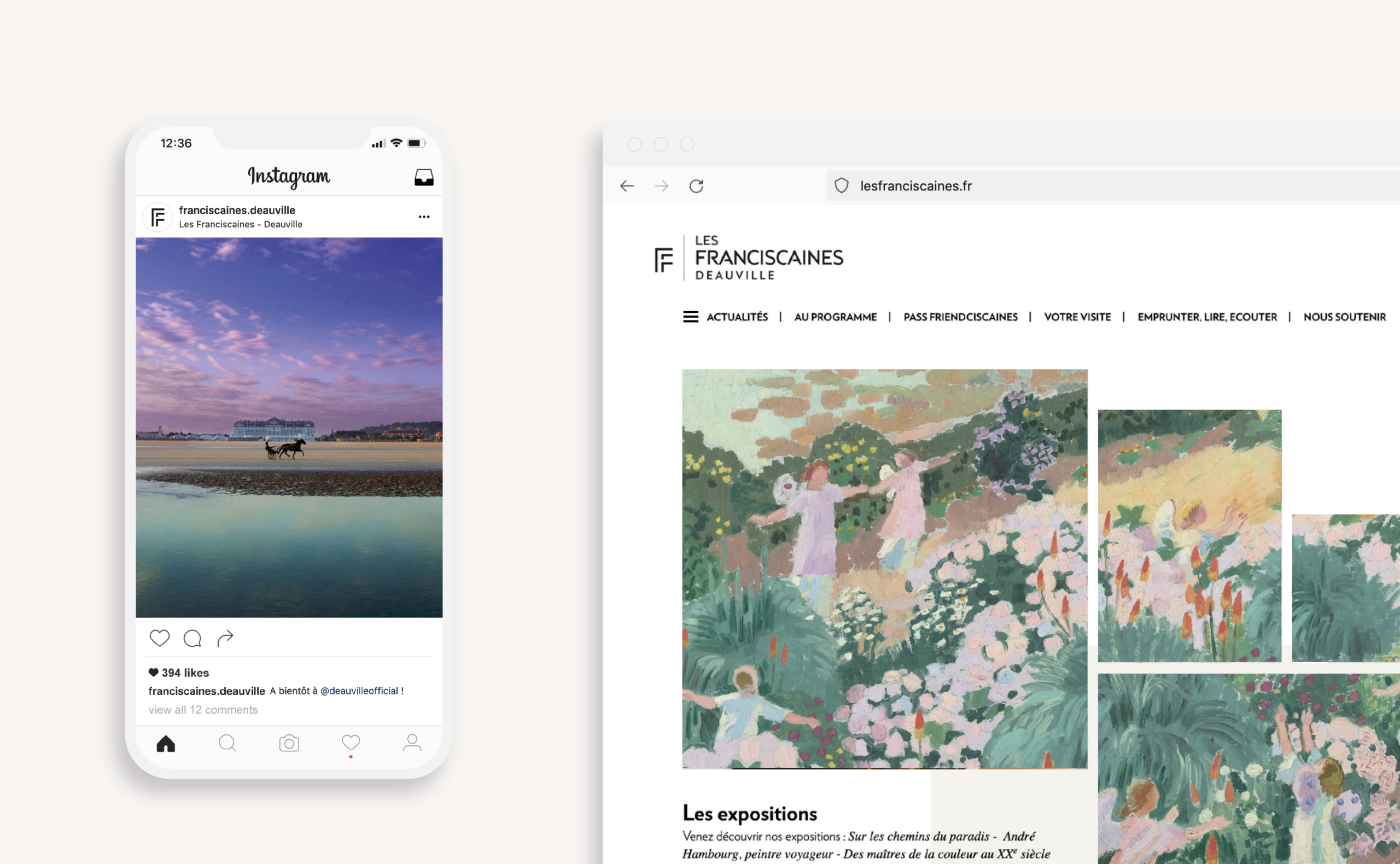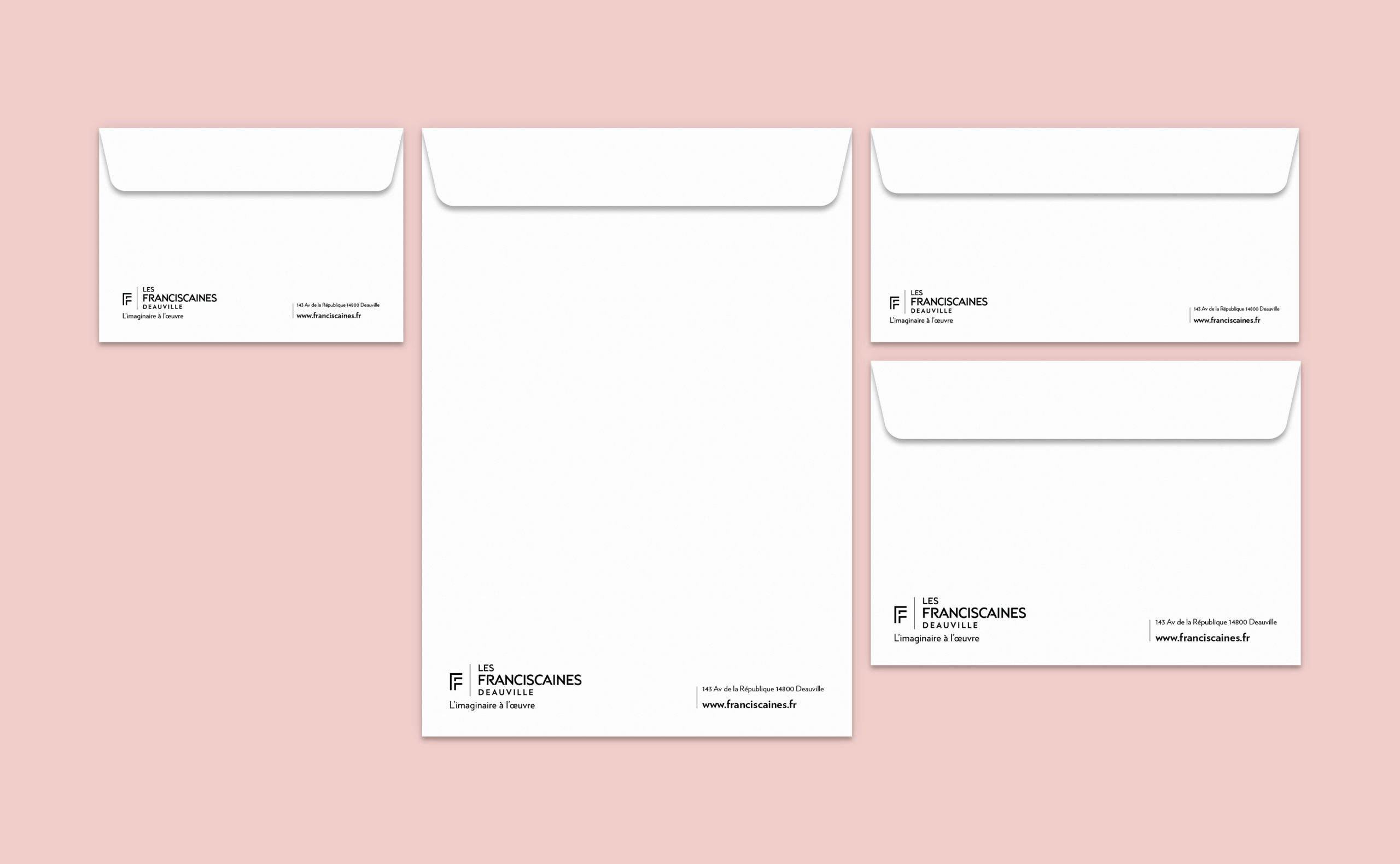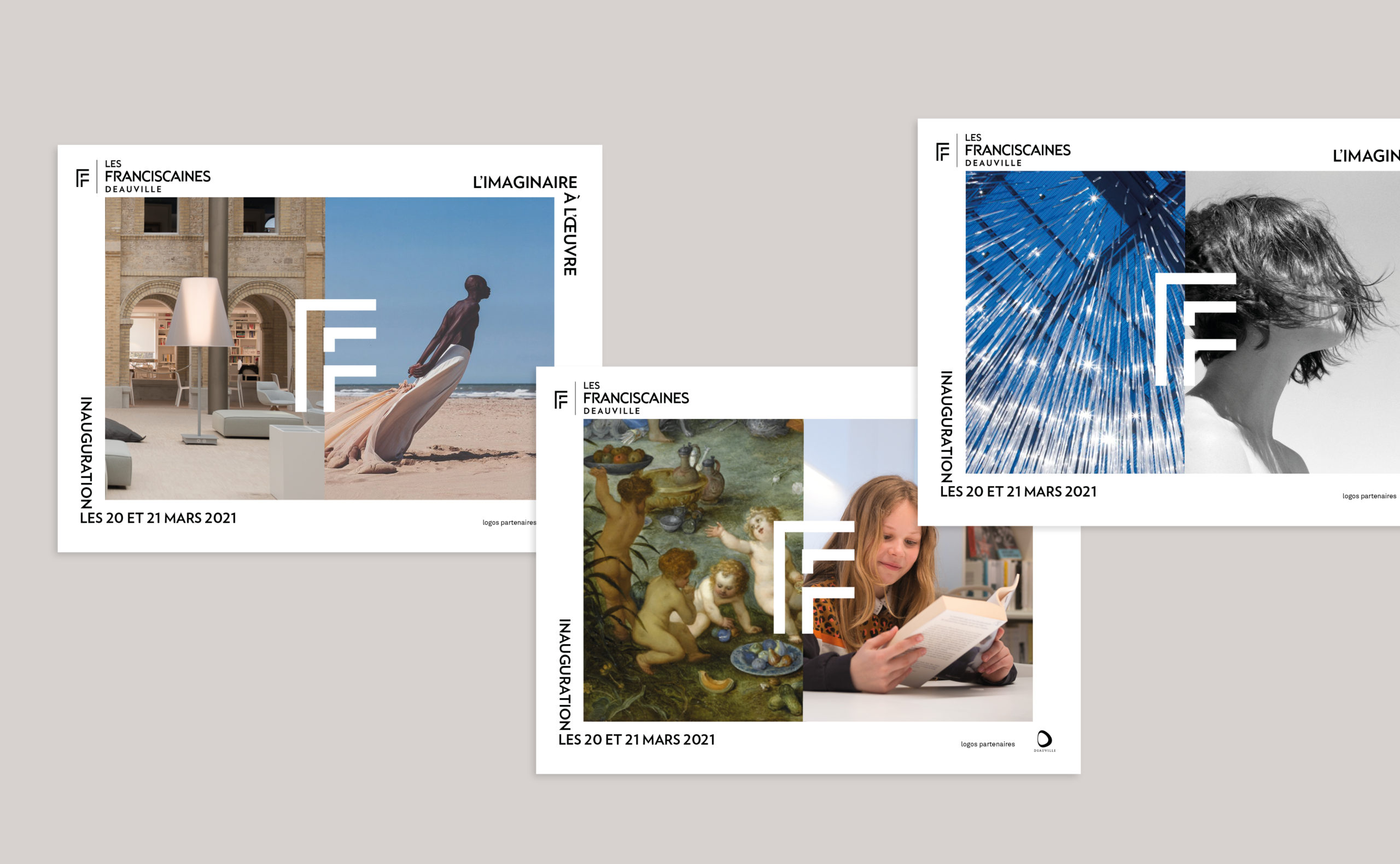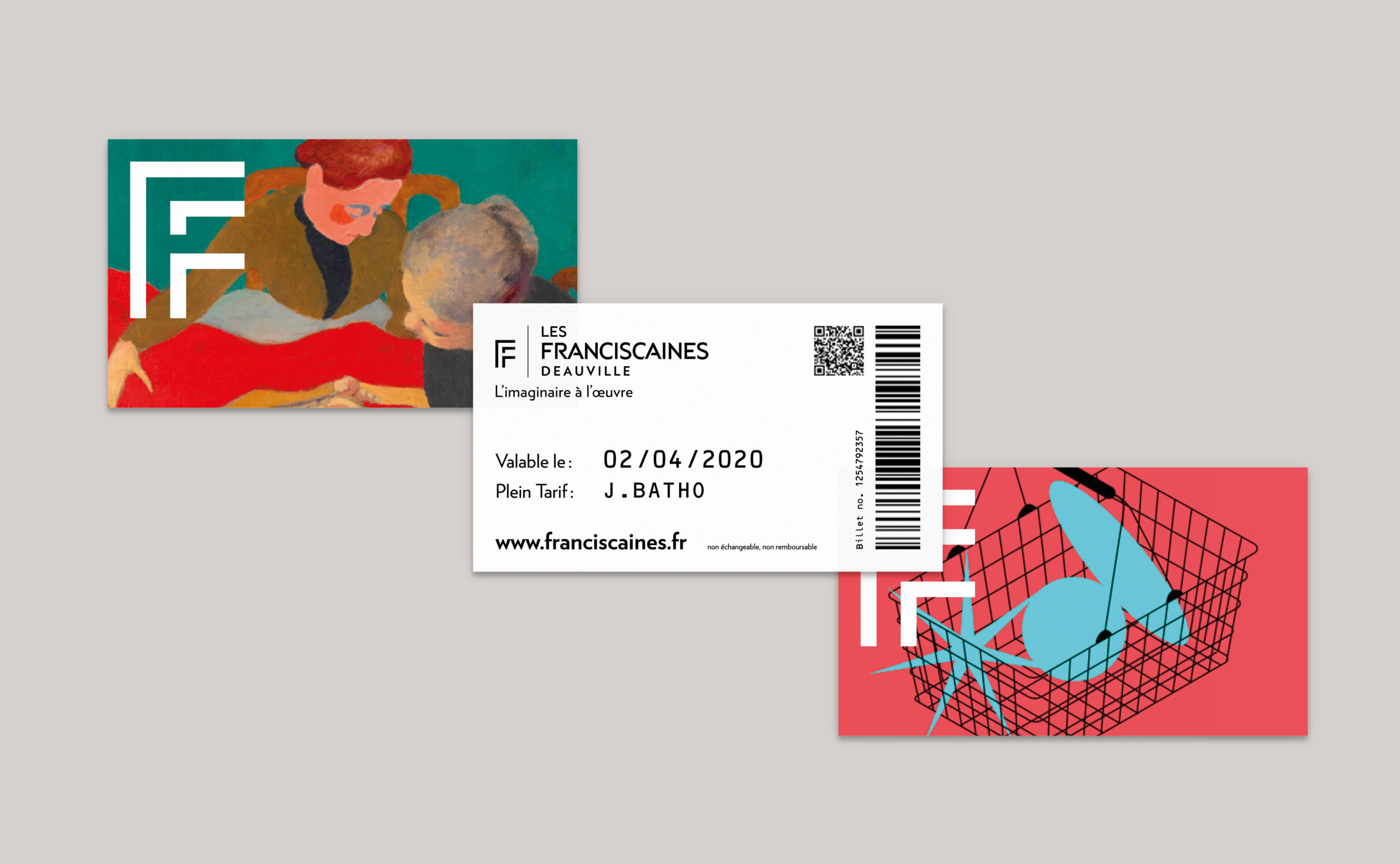 Résultant d’une démarche d’innovation et d’expérimentation, l’identité des Franciscaines se traduit par la nature même de son positionnement culturel et dans la place de l’usager-acteur au sein du projet. La mission confiée à l’agence Graphéine fut de concevoir l’axe créatif pivot de la communication de l'établissement culturel « Les Franciscaines : musée - médiathèque - lieu de vie » de la Ville de Deauville ; d'élaborer les chartes graphique et éditoriale, ainsi que de mettre en œuvre le territoire de marque sur les supports de communication imprimés et audiovisuels.