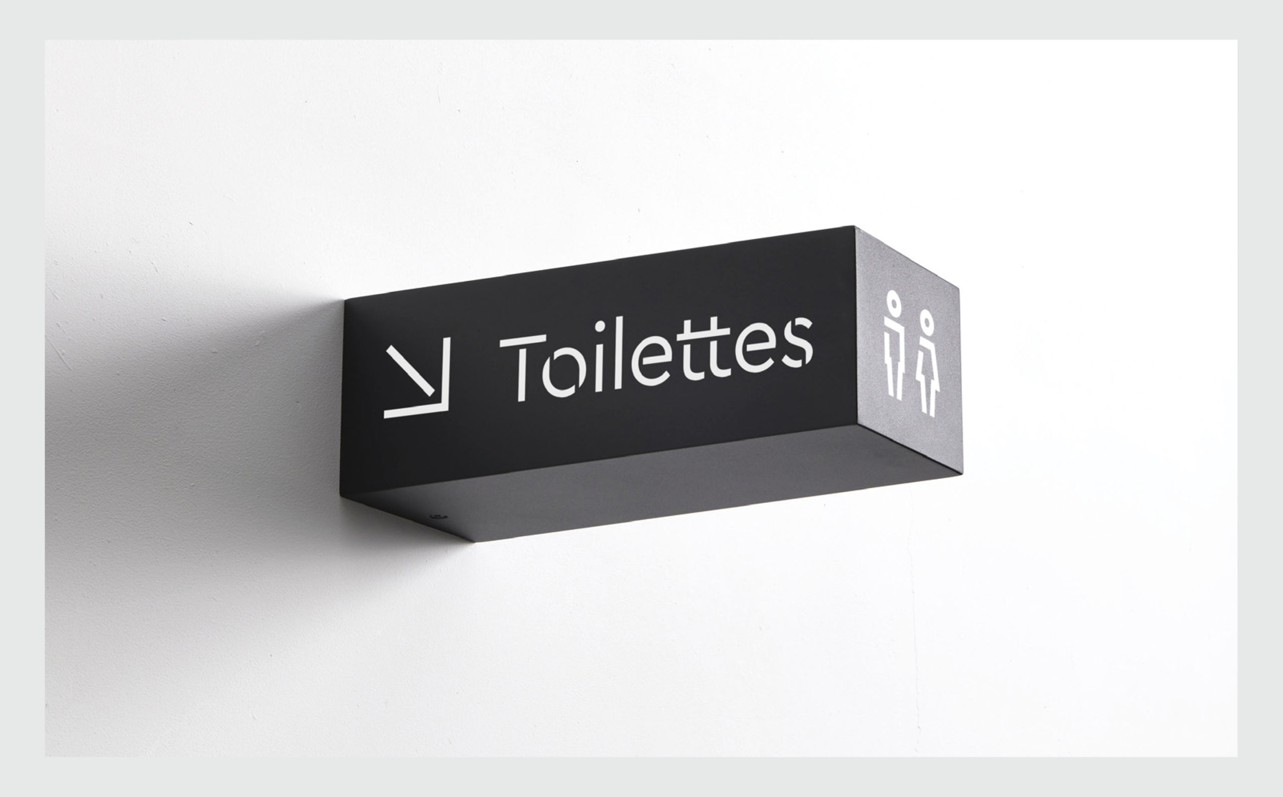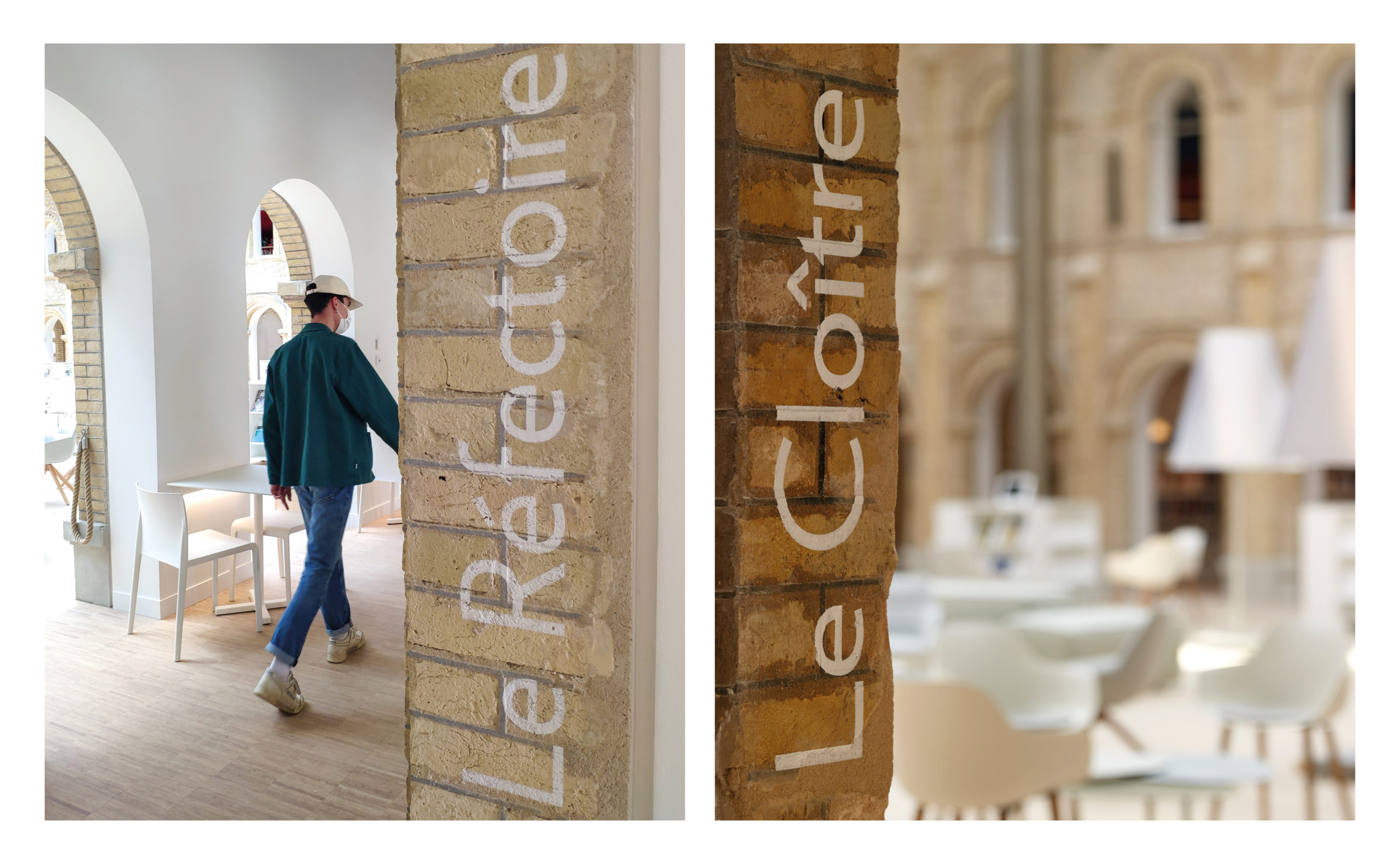 Toujours avec pour volonté de penser Les Franciscaines comme un lieu de vie à destination de tous, nous avons conçu une signalétique chaleureuse et intime pour nommer les différents espaces : le Réfectoire, l’Auditorium, la Cour des expositions, l’Univers Cheval et l’Univers Art de Vivre, etc.