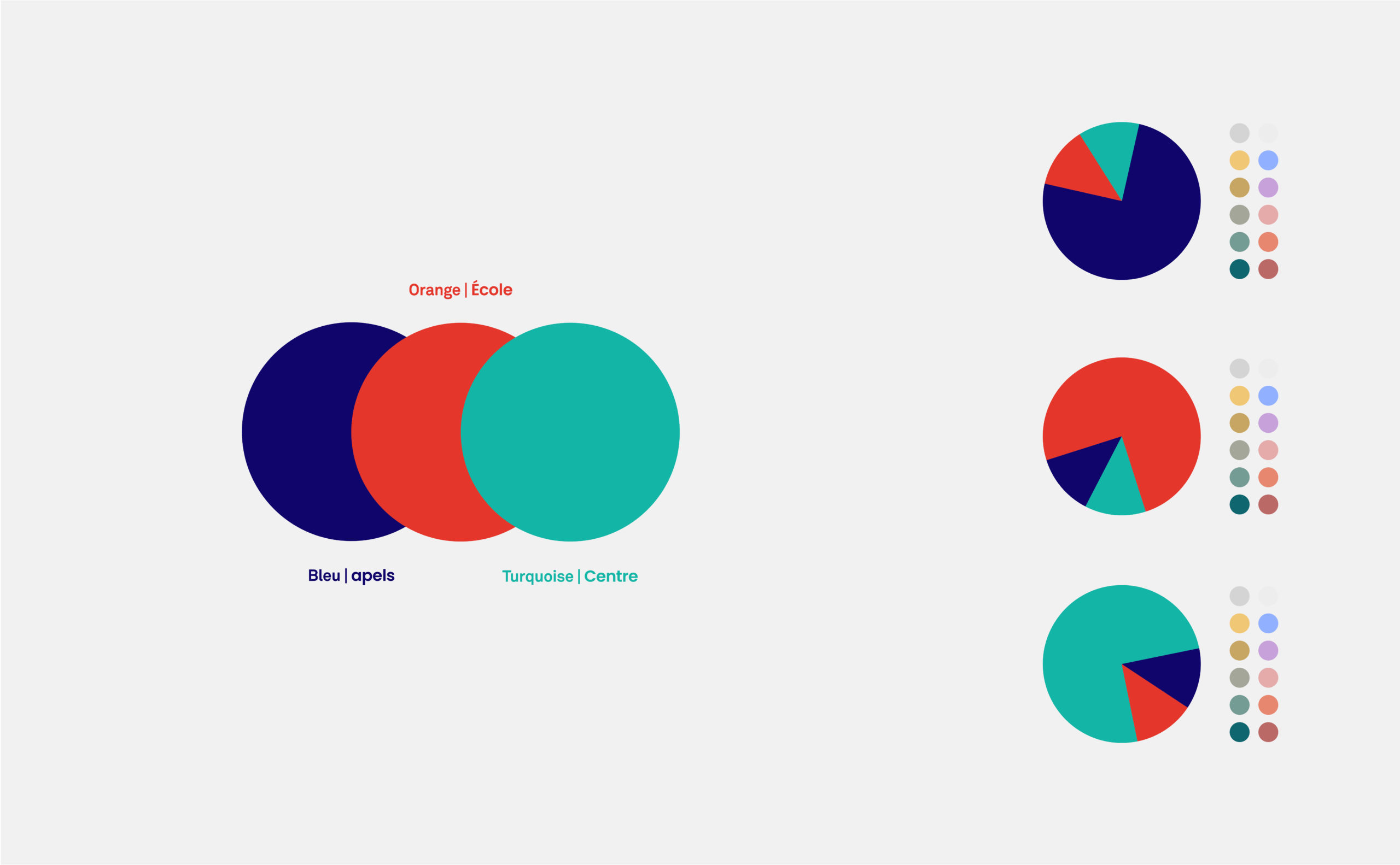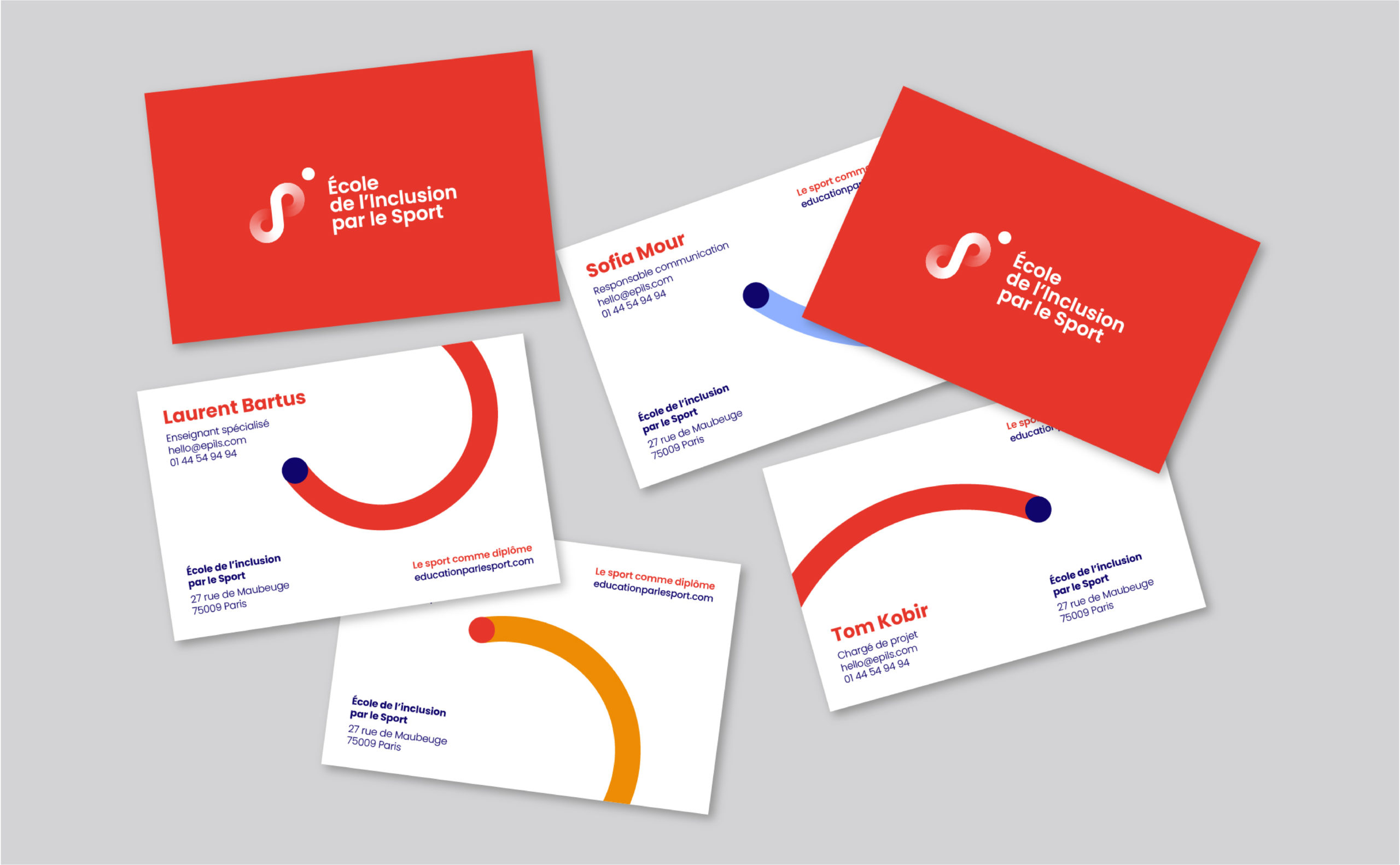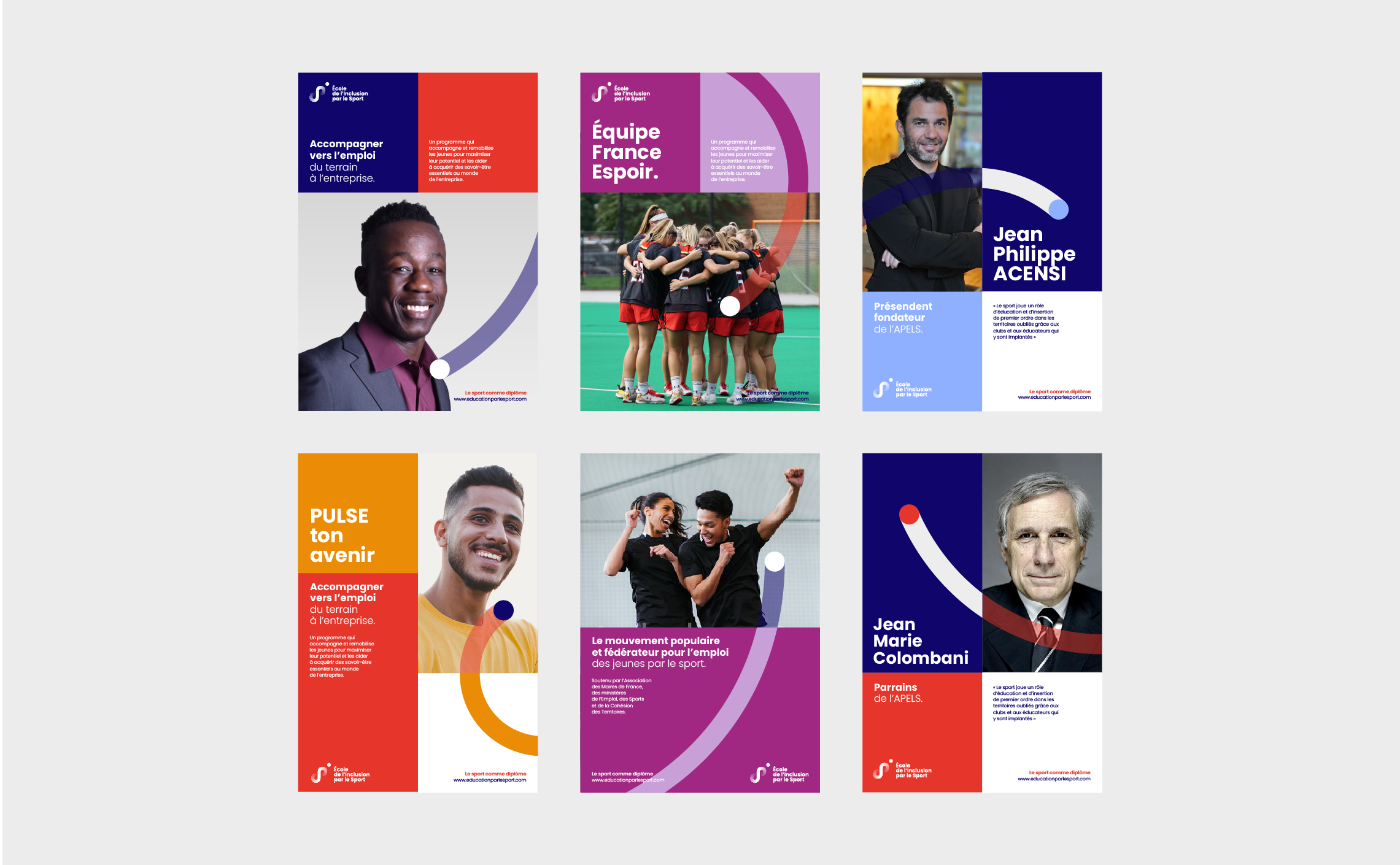 L’APELS étant à l’origine du projet d’école et du centre de formation, il était essentiel de créer un signe unique, permettant une reconnaissance immédiate des actions de l’organisation. La couleur devient un élément distinctif pour chacune des marques créées. Le bleu institutionnel représente l’Agence pour l’Éducation par Le Sport. Associé au orange, il transmet les valeurs sportives, collectives et stimulantes de l’École de l’Inclusion par le Sport. En ce qui concerne le Centre de Formation, le turquoise reflète une énergie sportive plus réfléchie, plus mûre, en corrélation avec l’idée de formation.