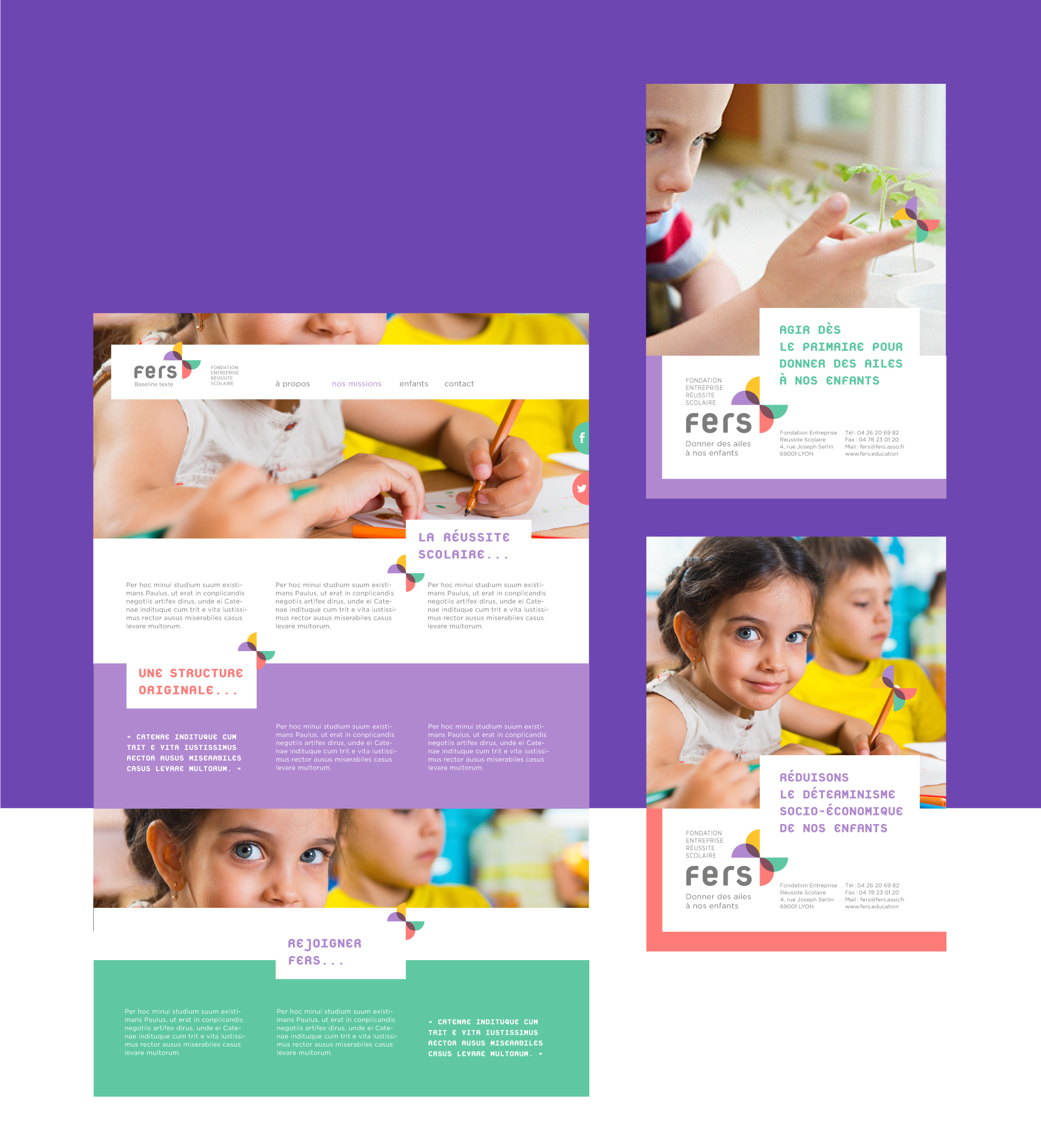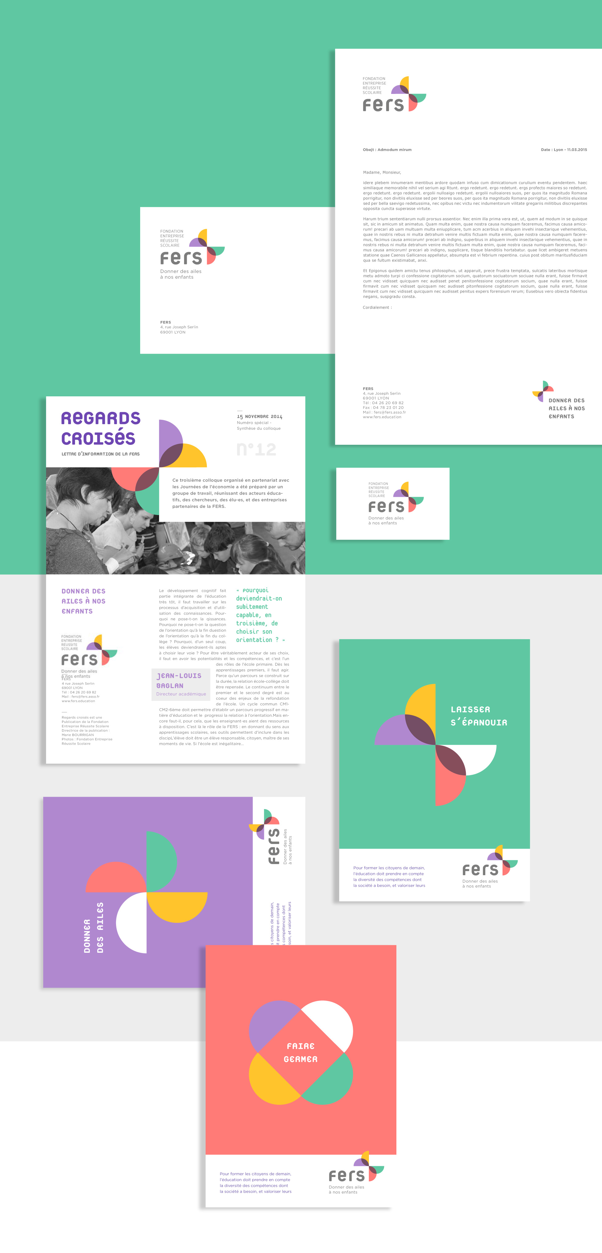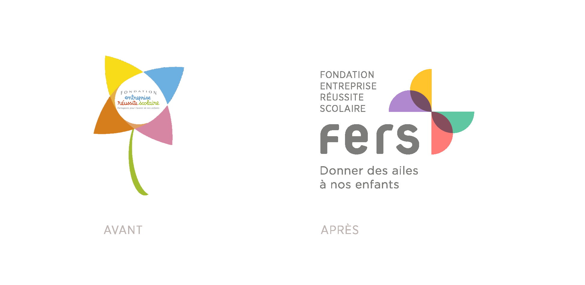 Rebranding pour la Fondation Fers (Fondation Entreprise Réussite Scolaire). Il s’agissait de faire évoluer la fleur de leur logo afin lui donner un petit coup de jeune, et améliorer au passage quelques problèmes de lisibilité du nom.