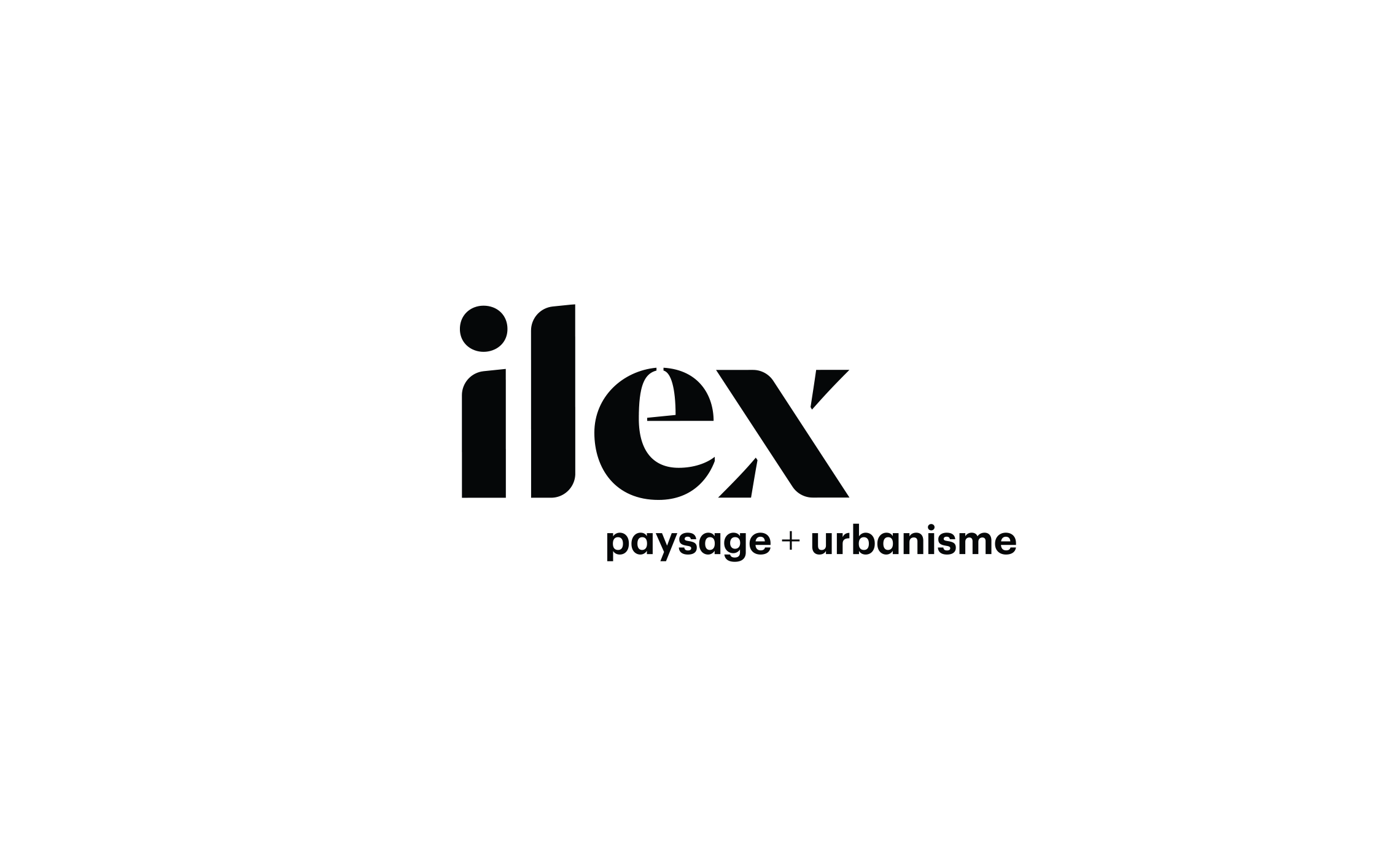 Initialement PaysageUrbanisme, nous avons ajouté le signe + à la baseline. Ceci appuie encore cette notion de contraste caractéristique d'Ilex et permet de nombreux jeux sémantiques.
