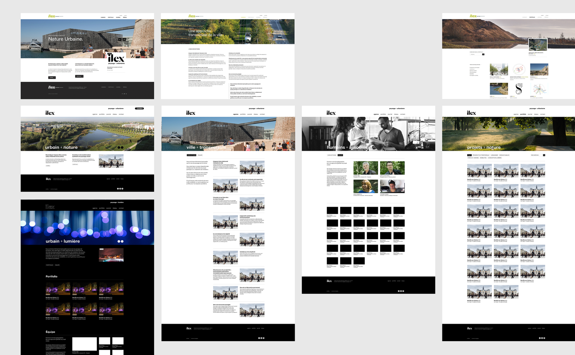 Agence de paysage et d'urbanisme, Ilex travaille le territoire et interroge l'espace. Novateurs et expérimentaux, ils pratiquent une approche sensible de l'urbanisme et placent l'humain au cœur de leur démarche. Ils repensent, façonnent et conçoivent des sites où le végétal et le vivant induisent de nouvelles synergies. Où les notions de durabilité, d'harmonie, de modularité et de bien-être viennent se croiser. Notre mission a été de repenser leur identité visuelle ainsi que l'ensemble de leurs outils de communication.