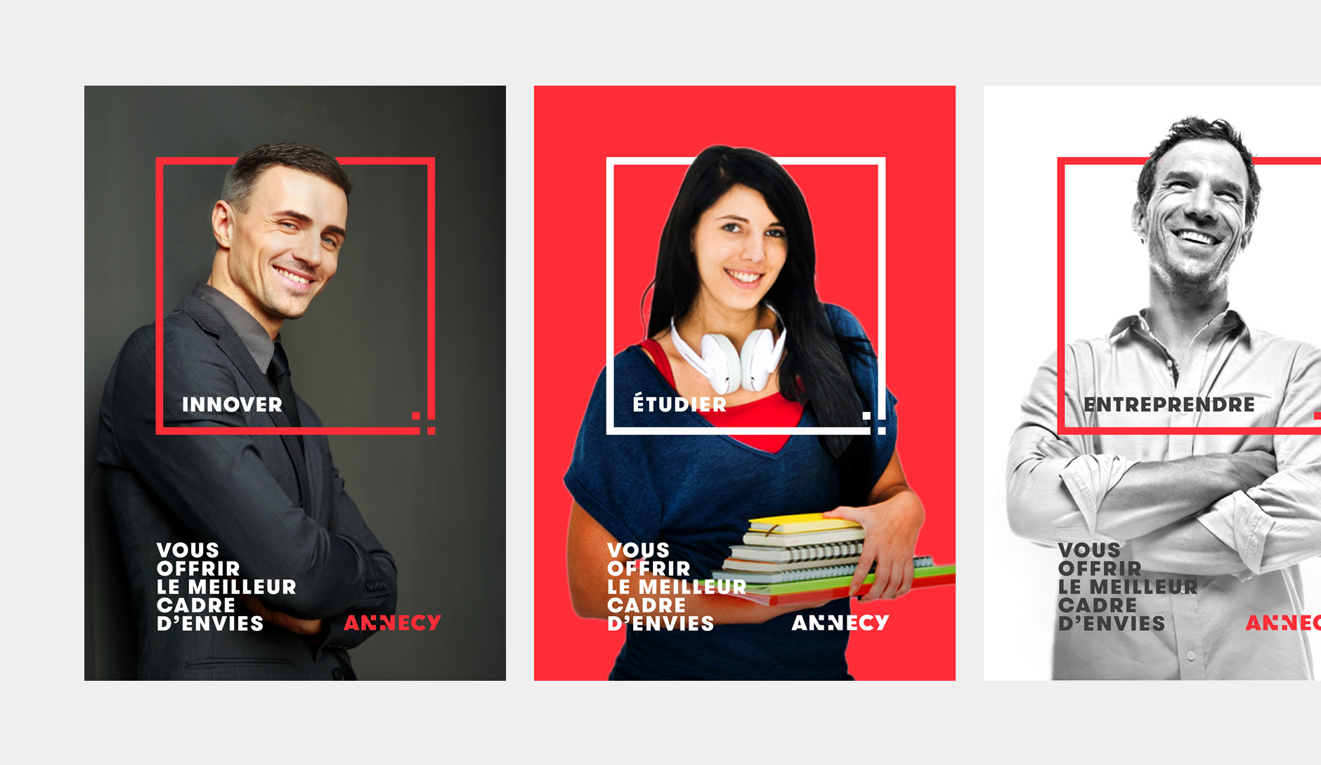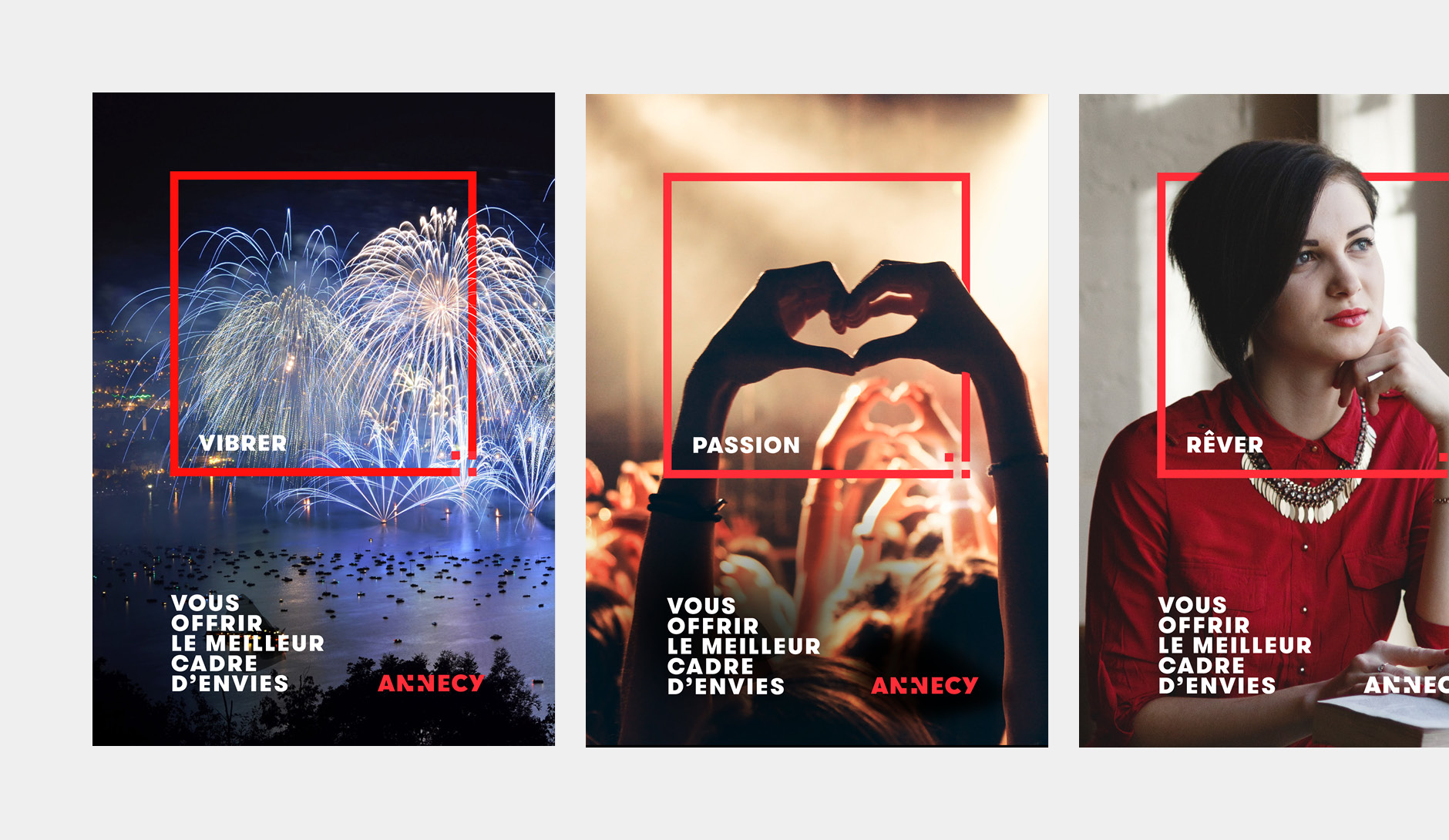 Le nom "Annecy" bénéficie d'une image largement partagée, celle d'un cadre de vie exceptionnel aux abords du lac et des montagnes. Dès lors, ce nom est intrinsèquement porteur de valeurs de qualité de vie, d'un cadre exceptionnel, inutile de chercher à les illustrer dans le logo. Nous avons donc fait le choix de la simplicité en optant pour un logo typographique.