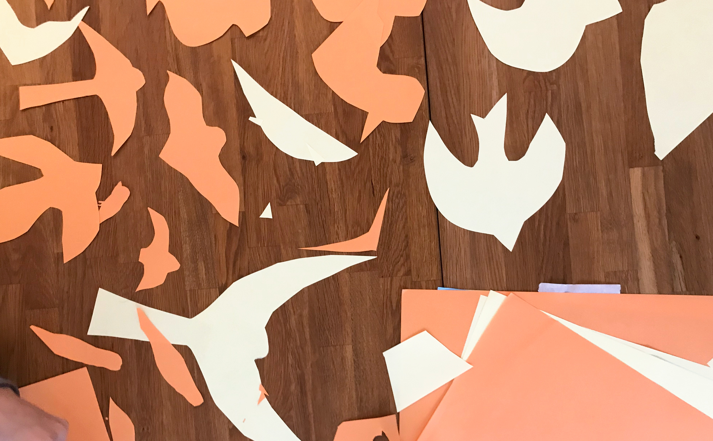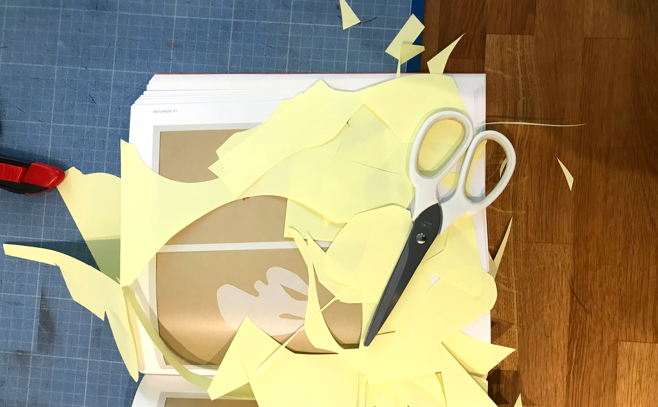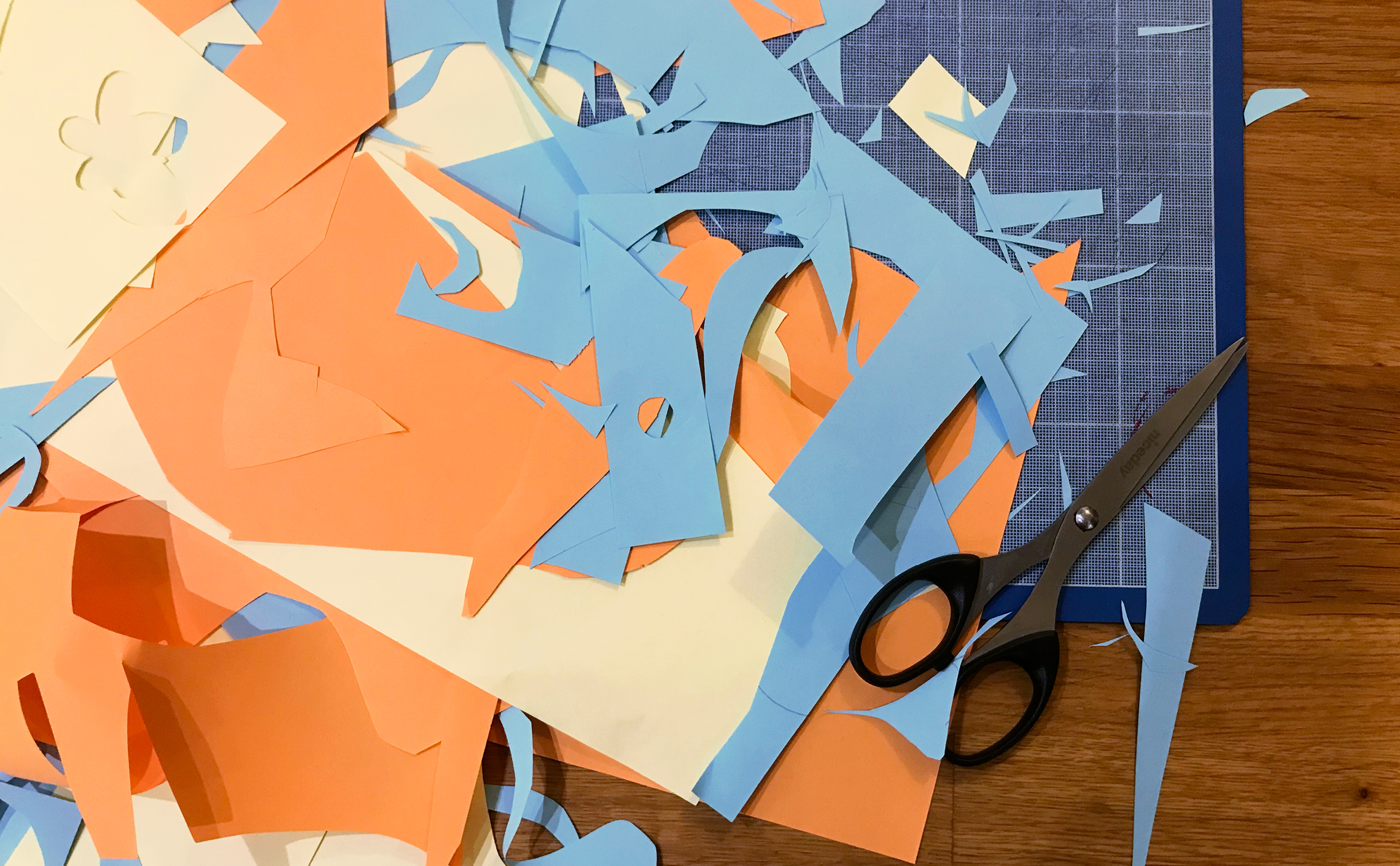 Afin d'enrichir l'univers illustratif, nous nous sommes lancés dans un atelier de papiers découpés. Une façon de quitter l'écran pour revenir à une forme de graphisme artisanal et sensible. Nous en avons profité pour accueillir un jeune stagiaire de 3e et créer un œuvre de street-art éphémère sur les murs du quartier.