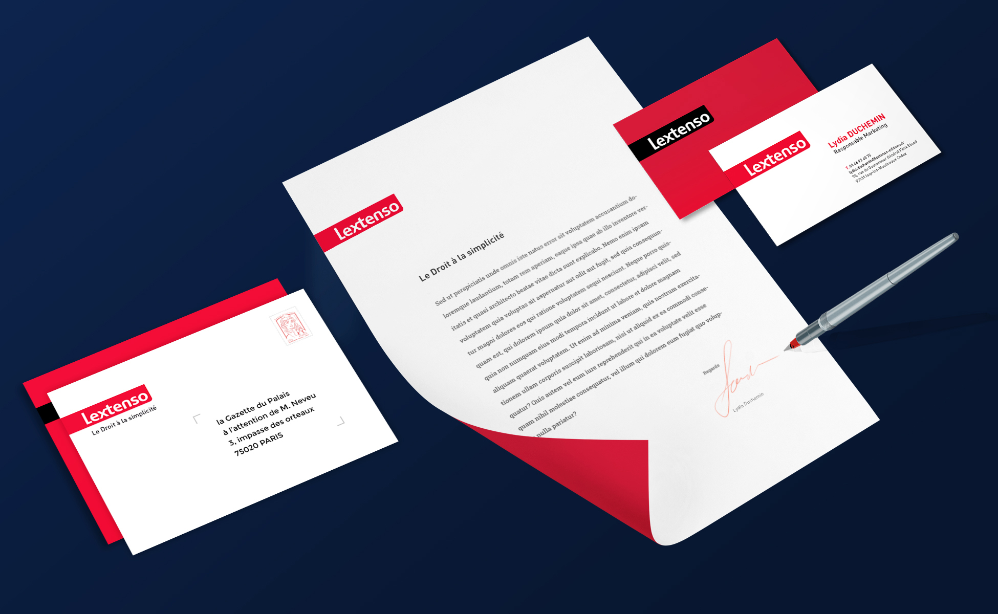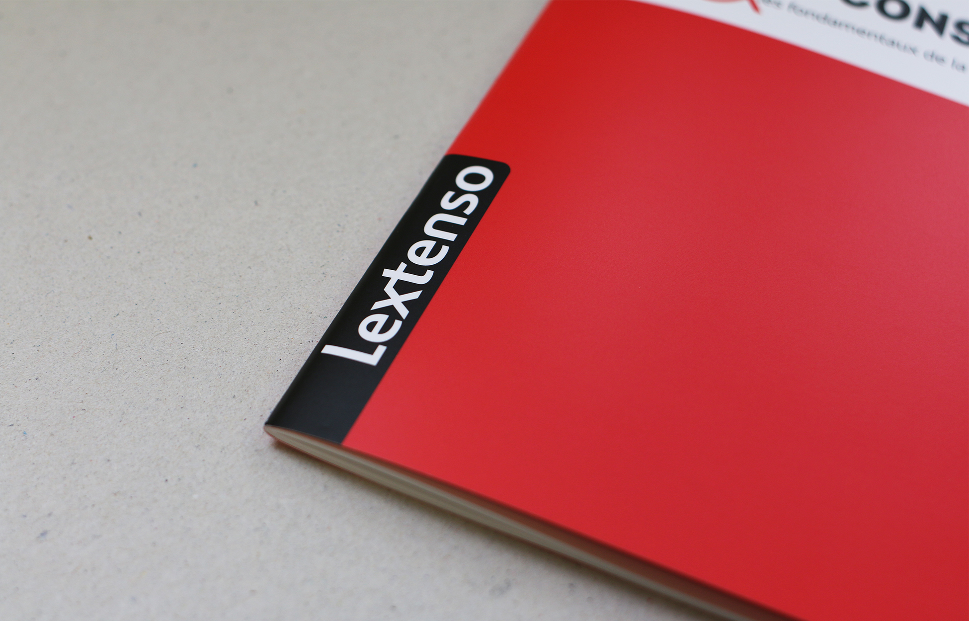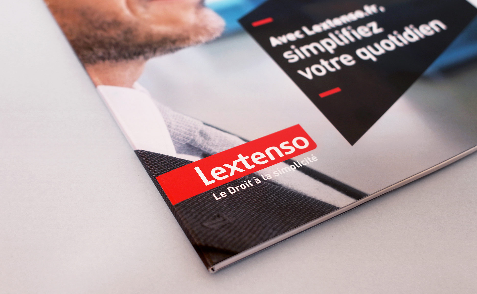 L'objectif de cette refonte était de faire de Lextenso une marque ombrelle à même de fédérer graphiquement l'ensemble de ses différentes éditions. Le logotype se retrouve très souvent dans un contexte de double signature. Nous avons donc choisi de conserver la simplicité d'un logotype réduit à l'expression de son lettrage dans un cartouche. L'ajout d'un emblème n'aurait été d'aucune utilité, surtout lorsque l'on possède un nom de marque aussi fort et signifiant. Valoriser l'image du nom "Lextenso", né de la fusion de la racine "Lex" (qui signifie "Loi écrite" en latin) et l'expression "In extenso", (qui signifie "En entier"), était alors l'option la plus évidente.