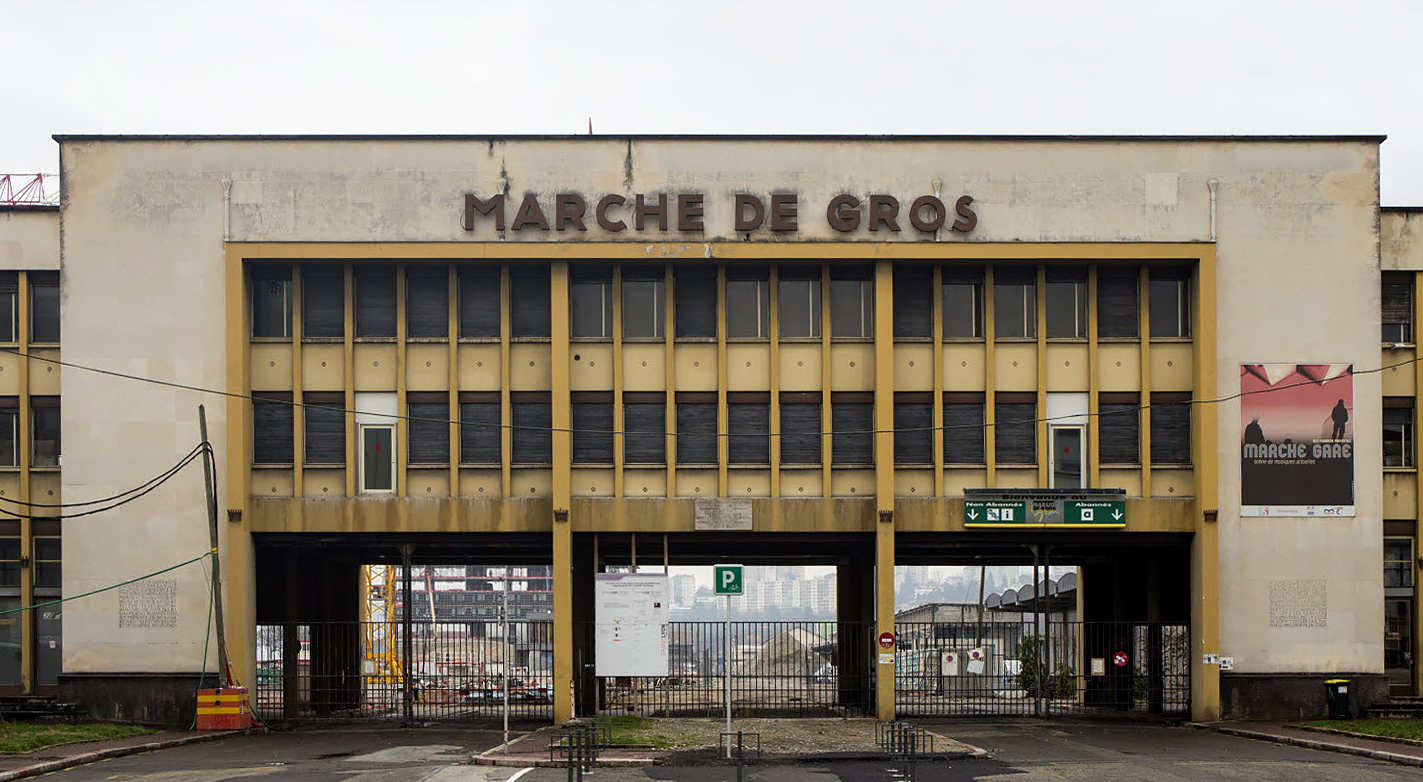 Ouvert en février 2006, le Marché Gare est une salle de concerts et de résidences de Musiques Actuelles gérée par l’association Mjc Presqu’île Confluence. C’est un lieu de rencontre entre les artistes et le public dans un contexte de proximité et d’attachement à la création musicale et artistique. Le Marché Gare a obtenu le label SMAC en 2019, aux côtés de l’Epicerie Moderne et du Périscope, partenaire privilégié de longue date au sein du projet de coopération S2M. Les missions principales sont la diffusion (organisation de concerts et événements culturels divers par an), le repérage et l’accompagnement artistiques d’artistes locaux, l’action culturelle et la participation à la structuration du secteur Musiques Actuelles. Installé au sein des anciens bâtiments administratifs du Marché de Gros, le Marché Gare a construit son projet dans ce lieu atypique.