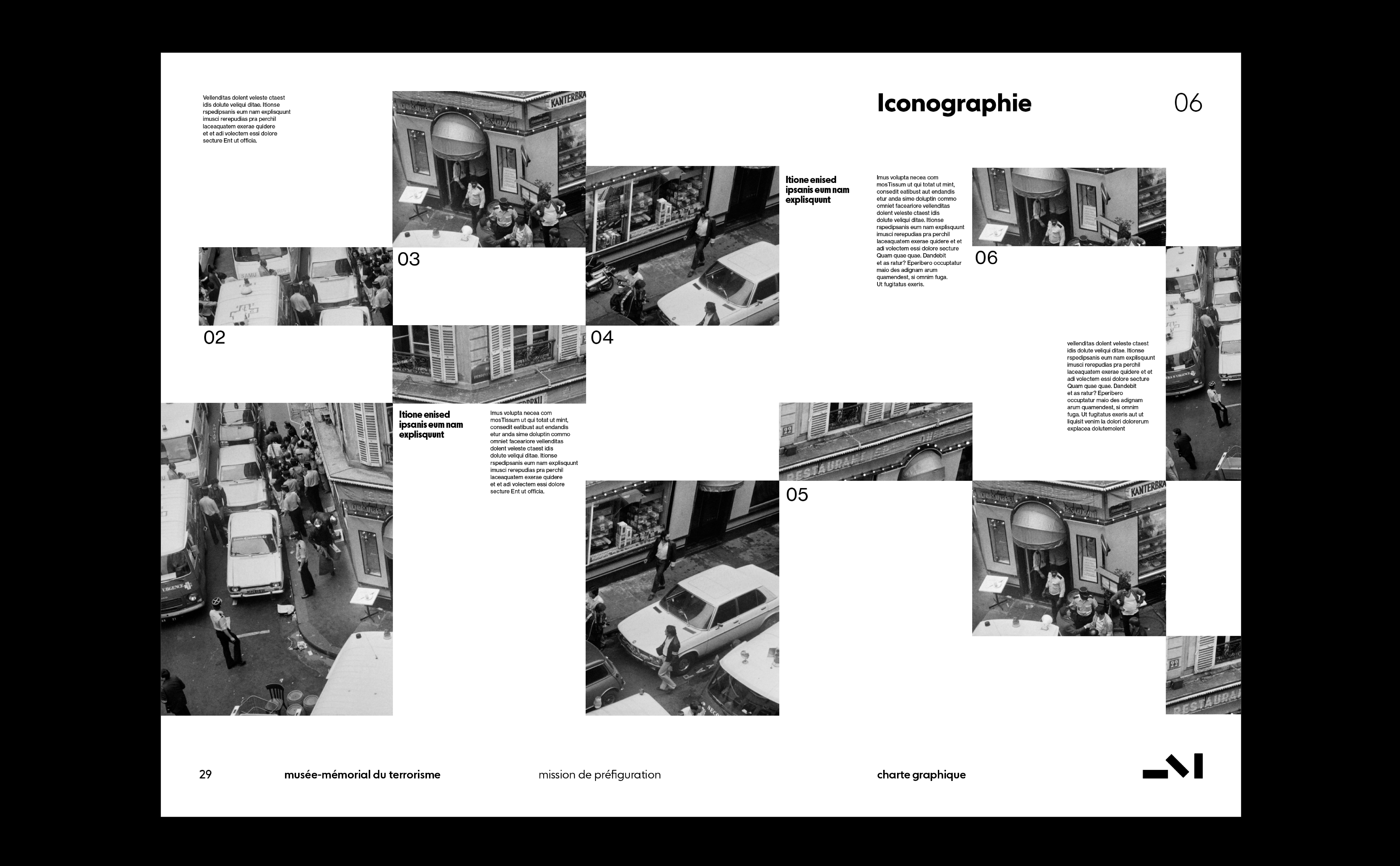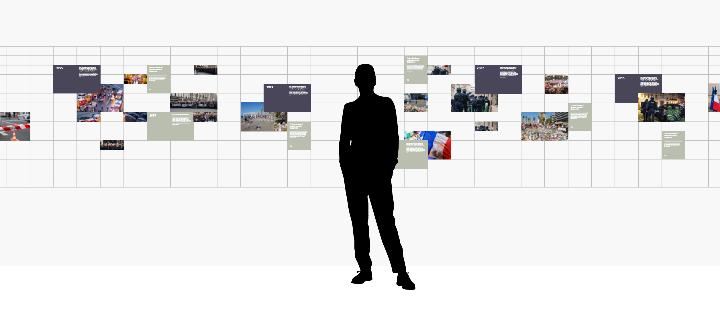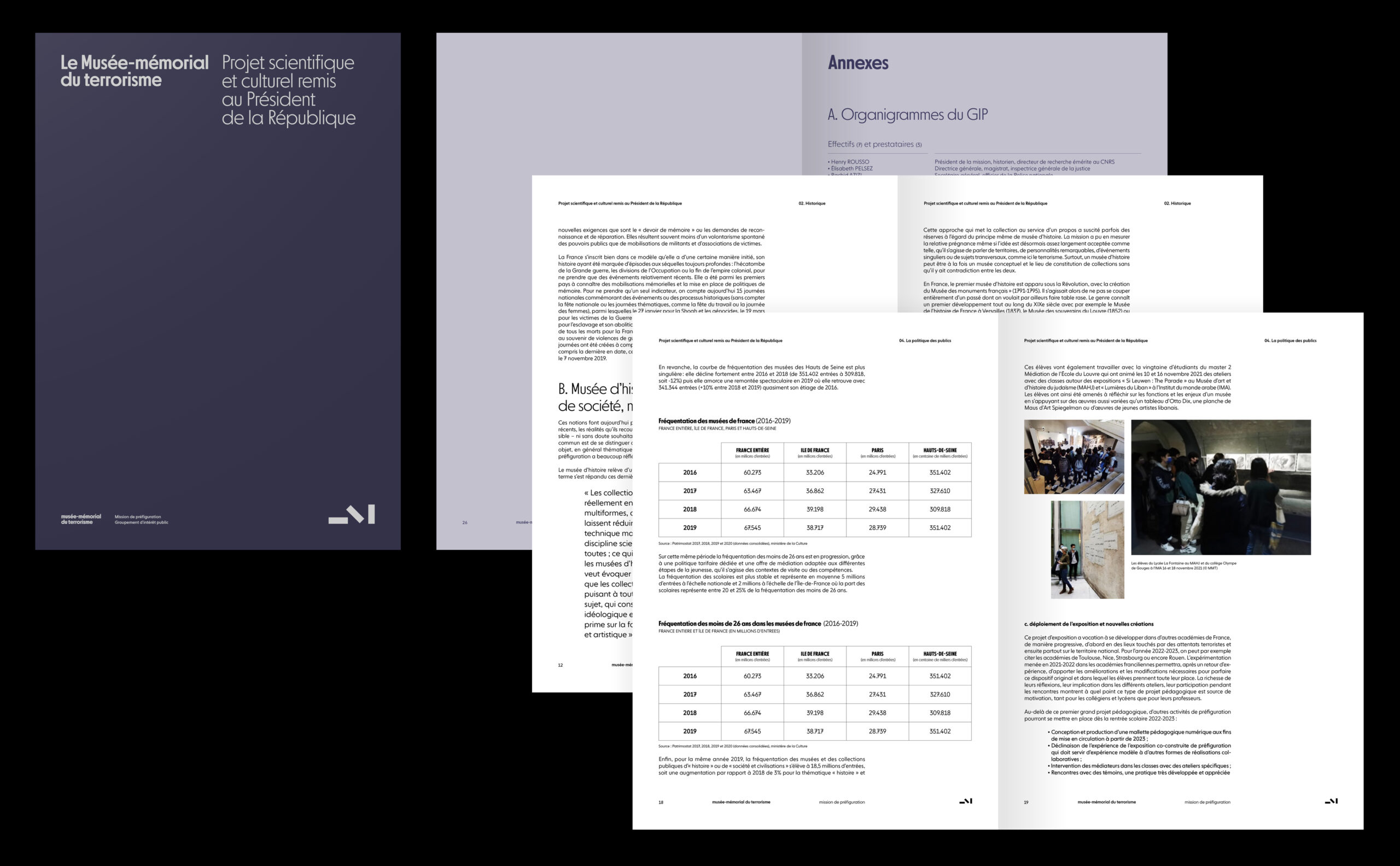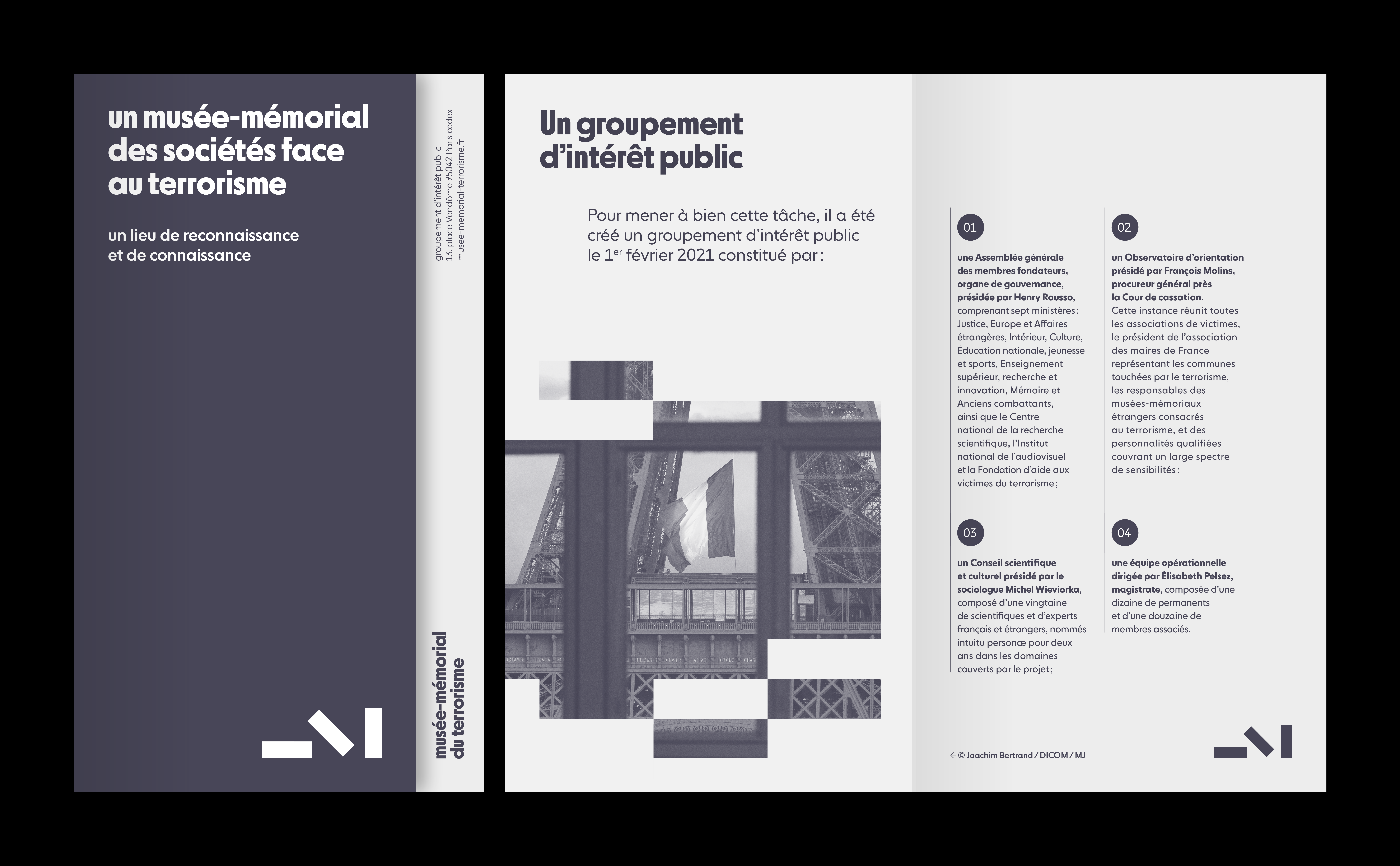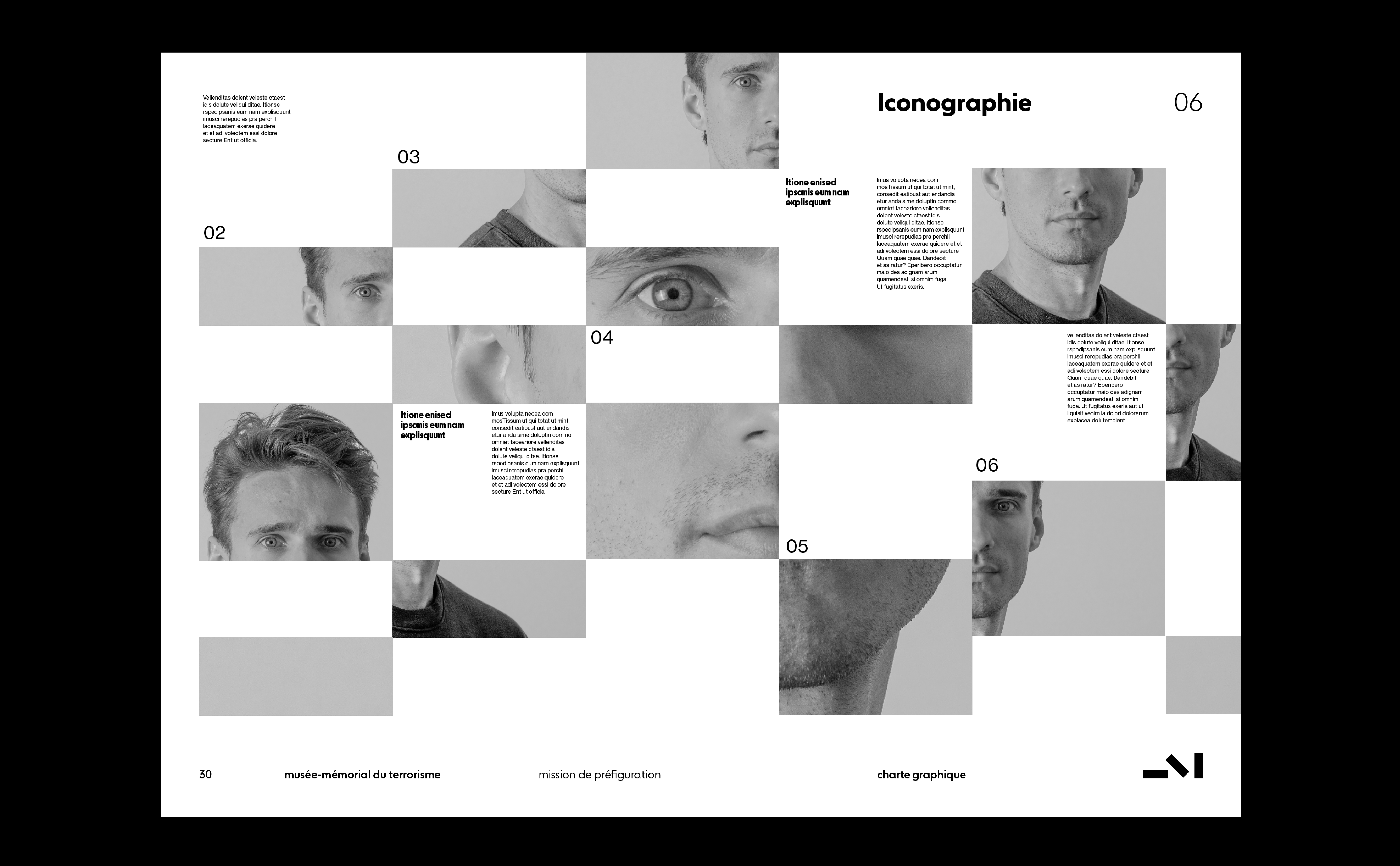 Comment faire écho graphiquement à la mission, qui est justement de permettre de sortir de la sidération que produit ce type d'événement ? À l'inverse d'un traitement médiatique souvent agressif et envahissant, il a fallu trouver de nouveaux codes visuels qui favorisent cette prise de recul. Afin de permettre la réflexion et la compréhension, base de résilience et objectif premier du projet du Musée-mémorial.