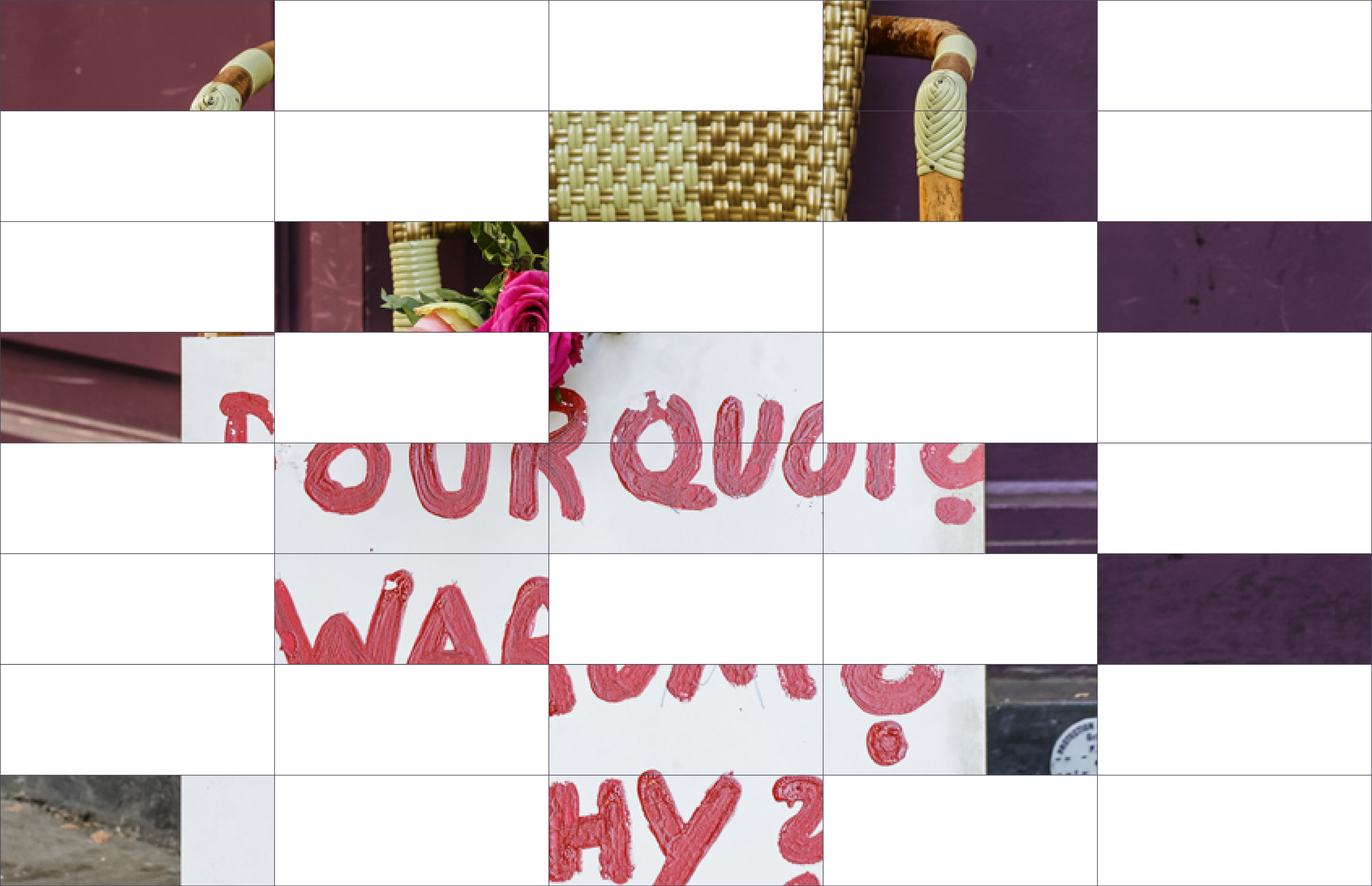 Le système graphique conçu permet le déploiement de l'identité visuelle sur tout type de support. Il est construit en écho aux structures d'encadrement de fenêtre présentes en plusieurs endroits du bâtiment. Plus qu'une simple grille de composition, ce système offre une manière d'entrer dans le récit, tant à l'échelle de l'individu, personnelle et expériencielle, que plus large, nationale et holistique. Ainsi, du proche au global, l'ensemble des différentes vues du sujets pourront y être représentées.