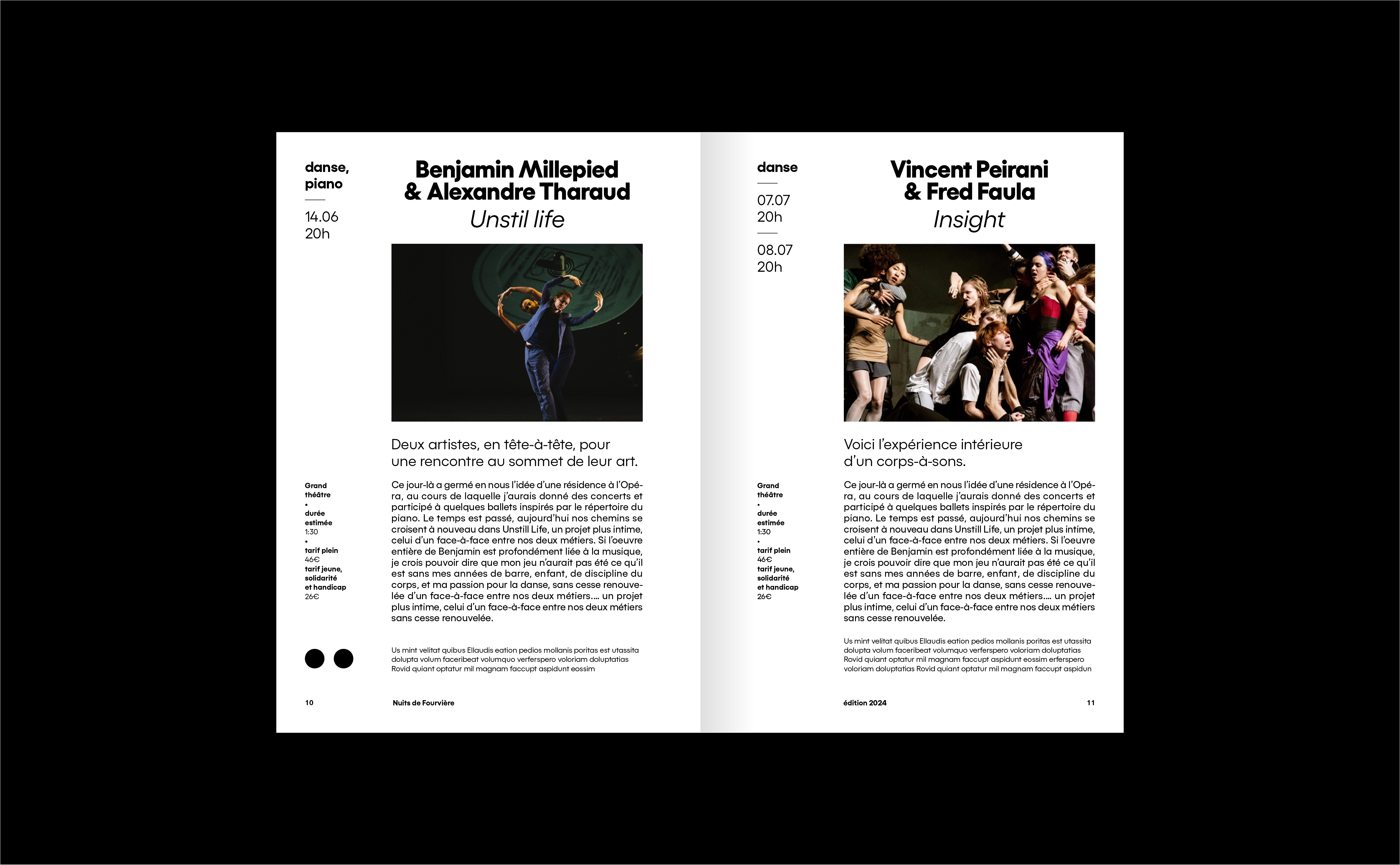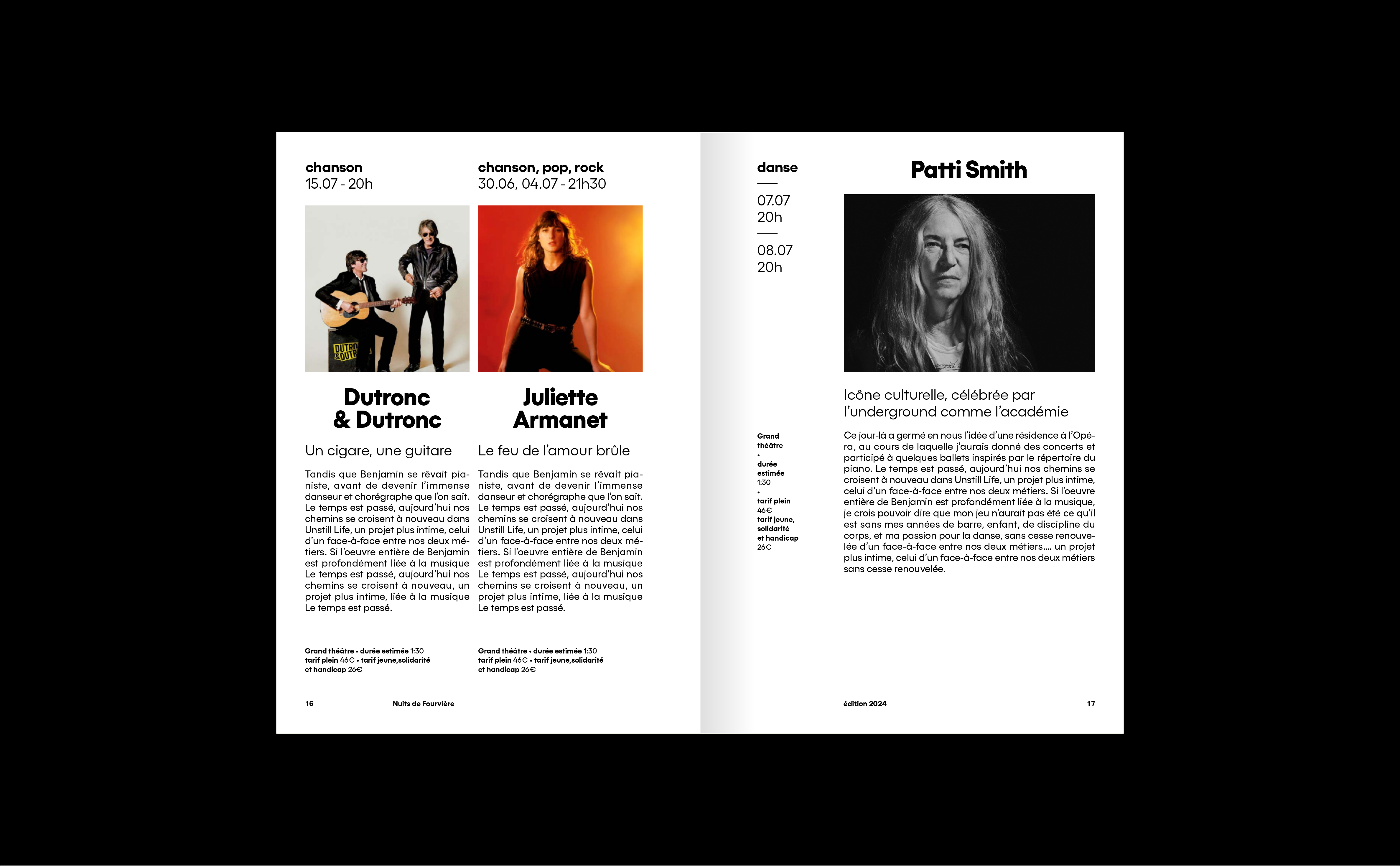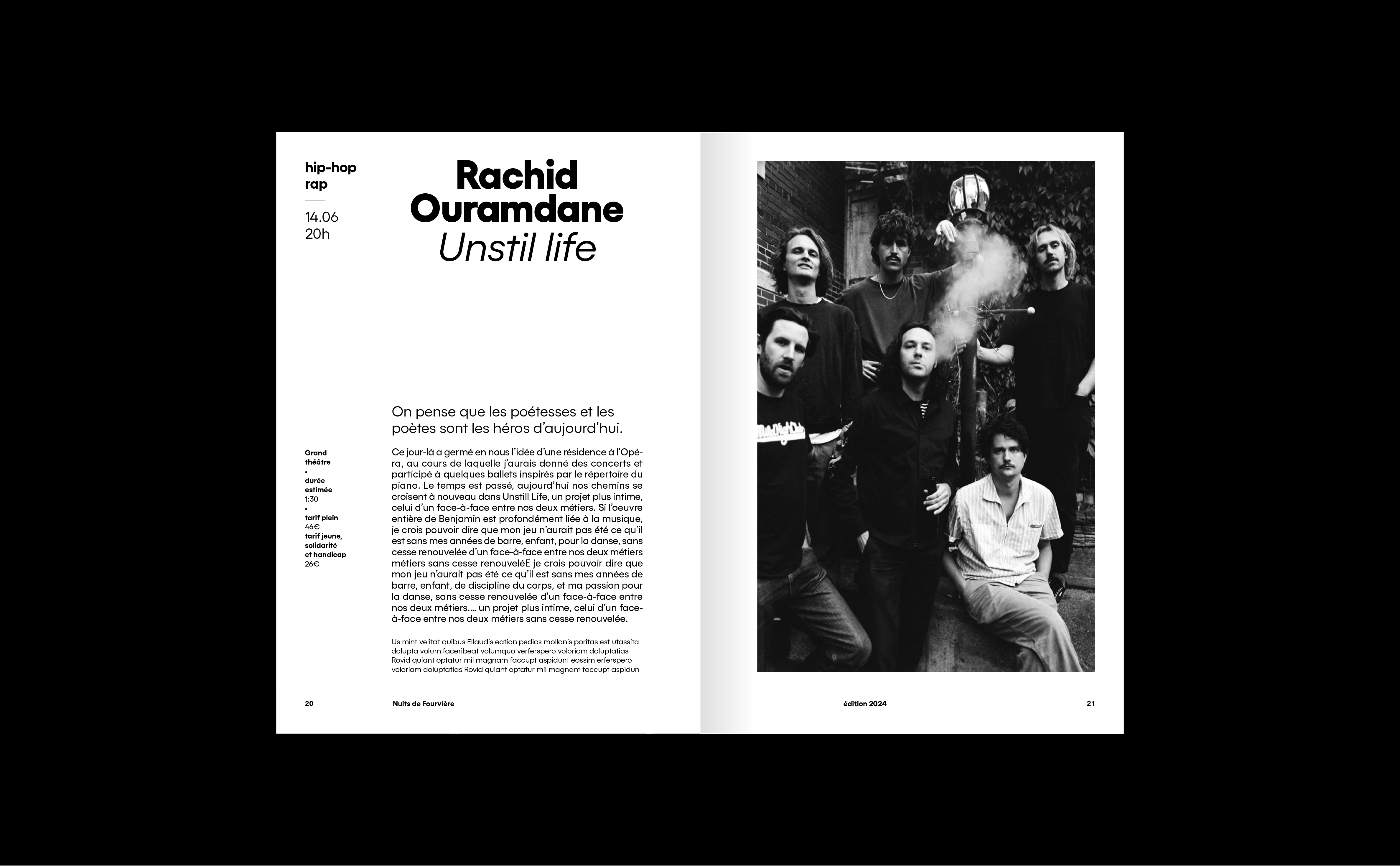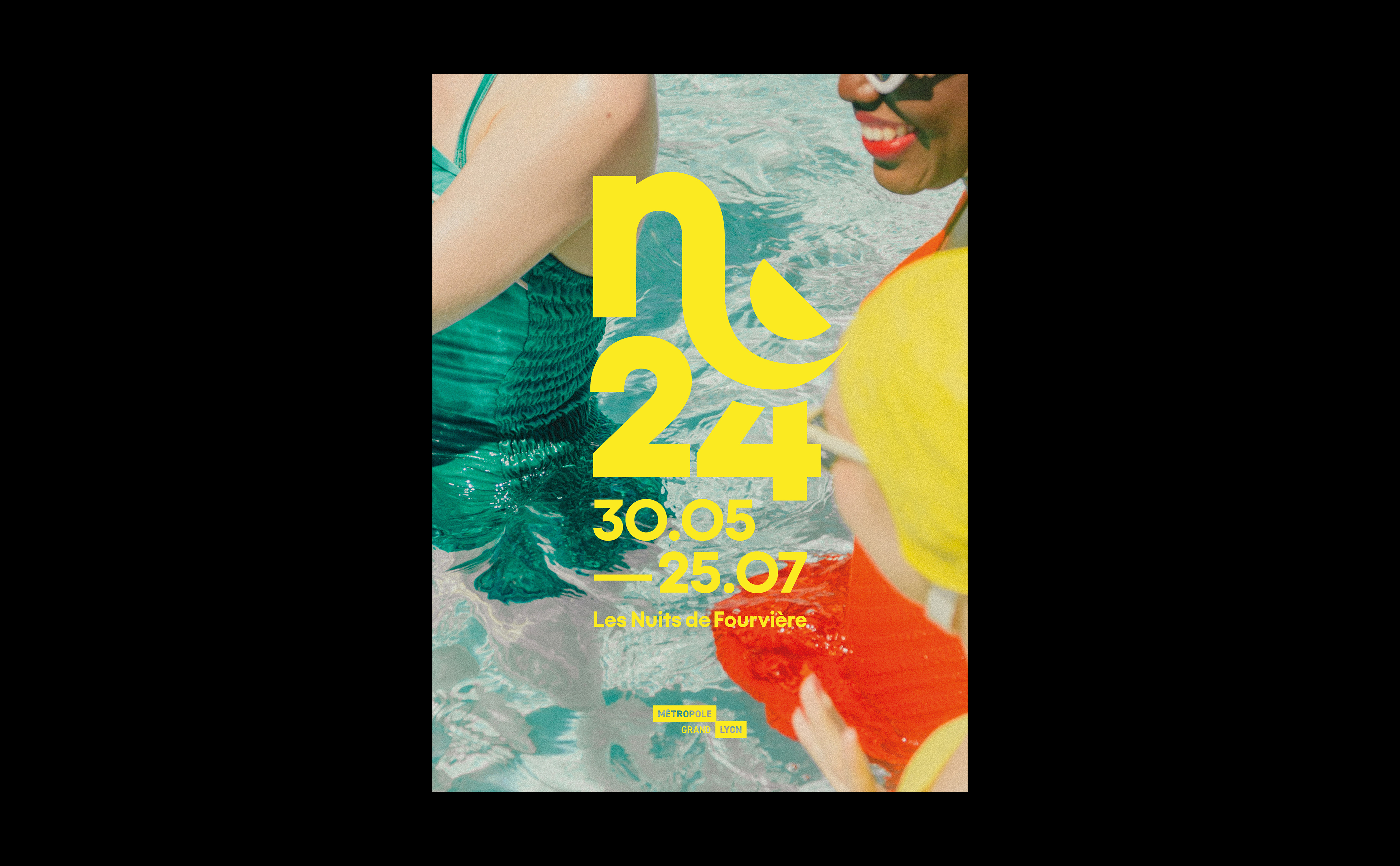 Après un passage de flambeau de direction, l'équipe des Nuits de Fourvière se renouvelle. Autour d'un projet repensé et de nouvelles valeurs, le festival évolue et questionne son image. Dans cette optique, l'équipe nous confie la conception du visuel de l'édition 2024 ainsi que la redéfinition du système graphique global de l'événement.