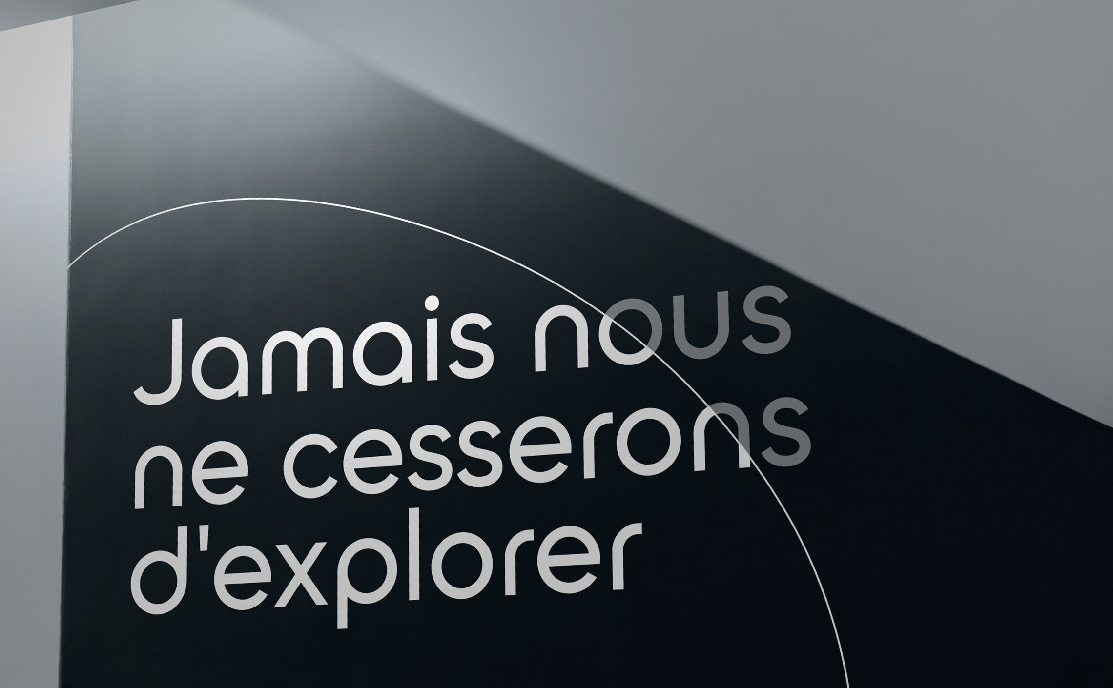 L'identité et le caractère de l'Observatoire s'incarnent à travers son logo et ses couleurs bien sûr, mais également à travers sa typographique. Il s'agit de l'Arago, une police de caractère spécialement dessinée pour l'Observatoire, qui se distingue par son dessin particulièrement géométrique. Son nom fait référence à Francois Arago, un illustre astronome et physicien français du XIXe siècle, qui a d'ores et déjà donné son nom à la célèbre coupole trônant sur le toit du bâtiment Perrault. On remarquera que l'aspect parfaitement circulaire des lettres rappelle la forme ronde des planètes, mais aussi celle des hublots qui courent tout autour de cette même coupole.