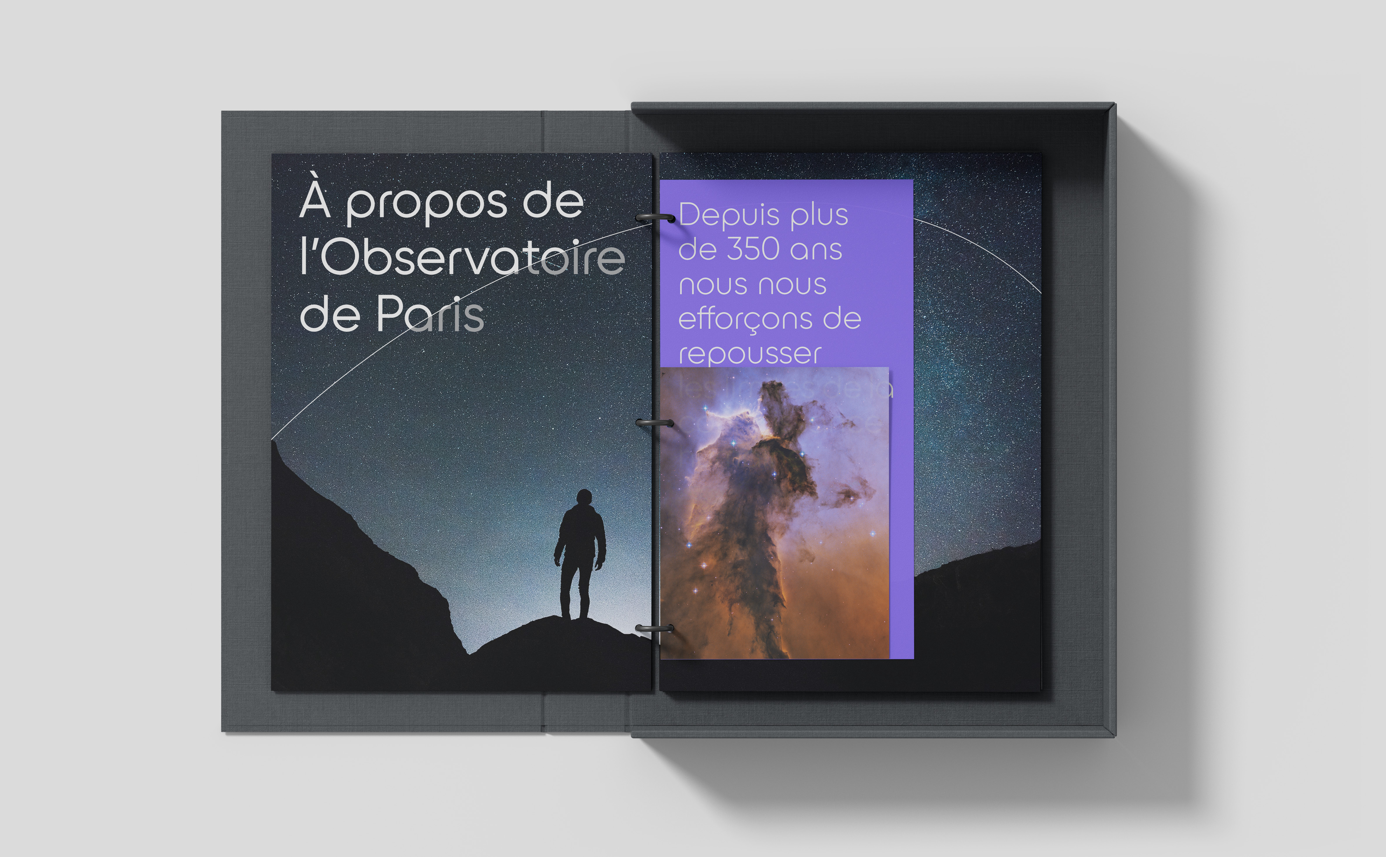Graphéine a donc accompagné l'Observatoire de Paris dans la définition de son nouveau positionnement de marque et la création de sa nouvelle identité visuelle.