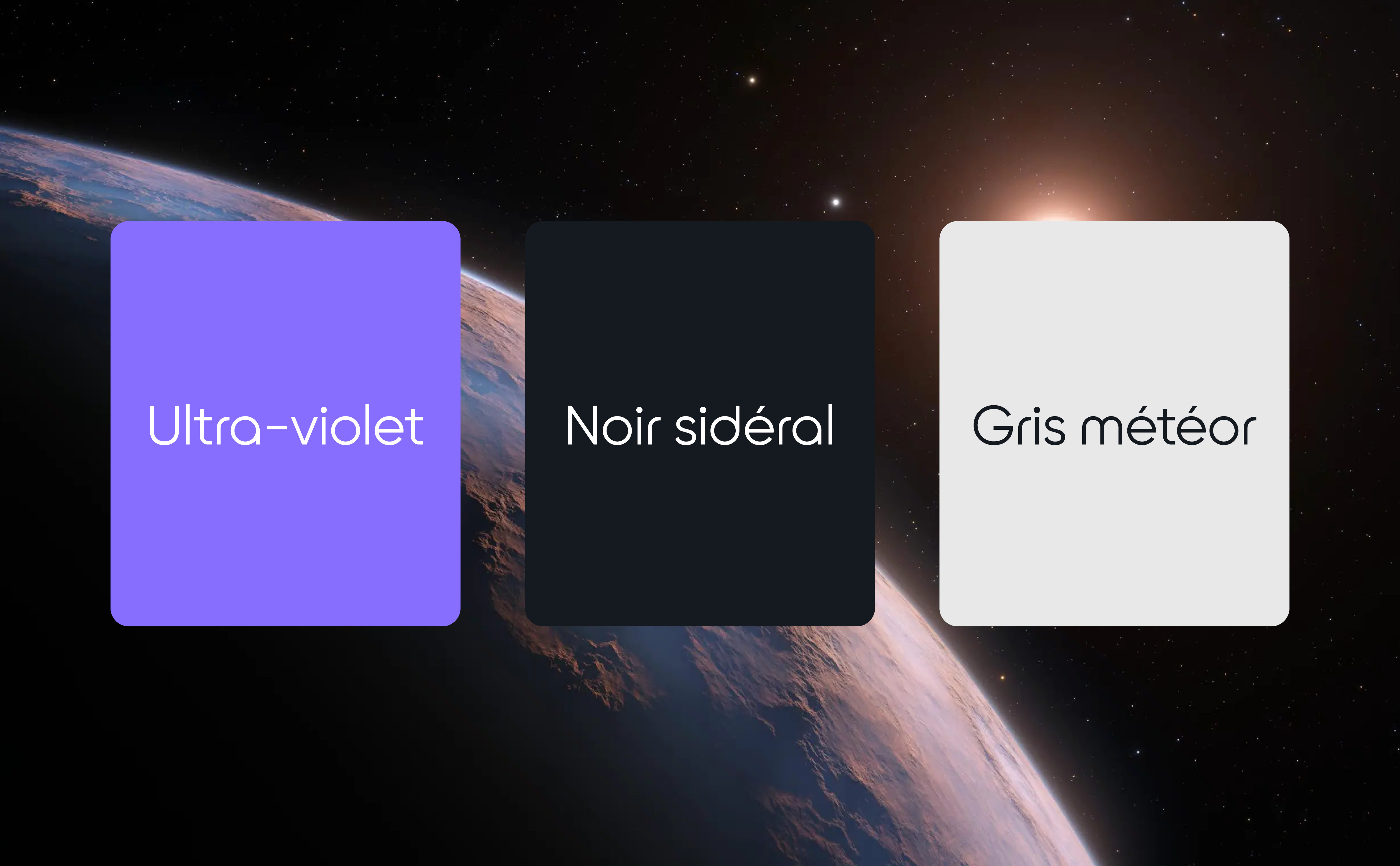 C'est pourquoi nous avons décidé de remplacer le bleu nuit un peu terne par un violet éclatant, que nous avons nommé Ultra-violet, en référence à ces longueurs d'onde invisibles à l'œil nu, mais qui font cependant partie intégrante des observations astronomiques (au même titre que les rayons gamma, les rayons x, l'infrarouge ou encore les ondes radio).