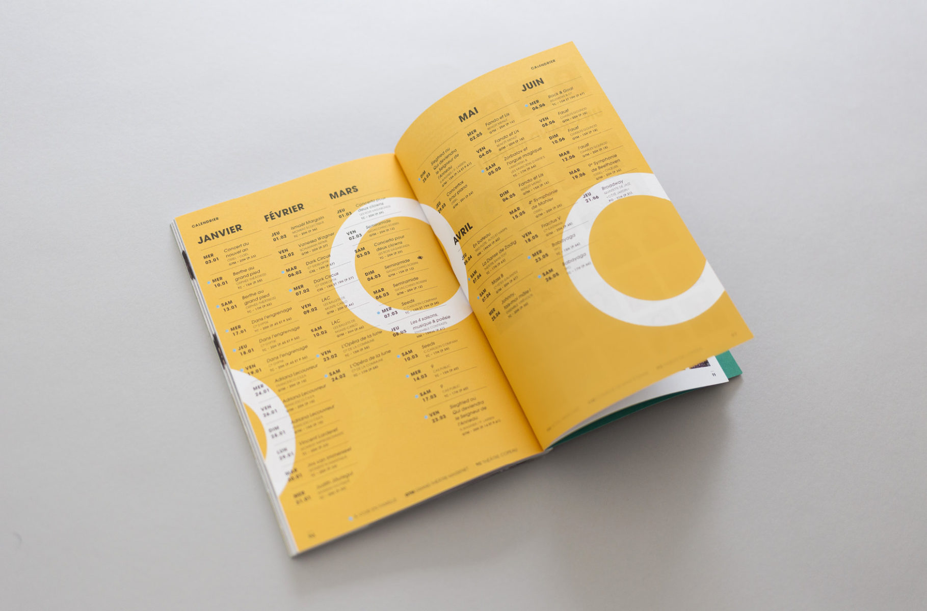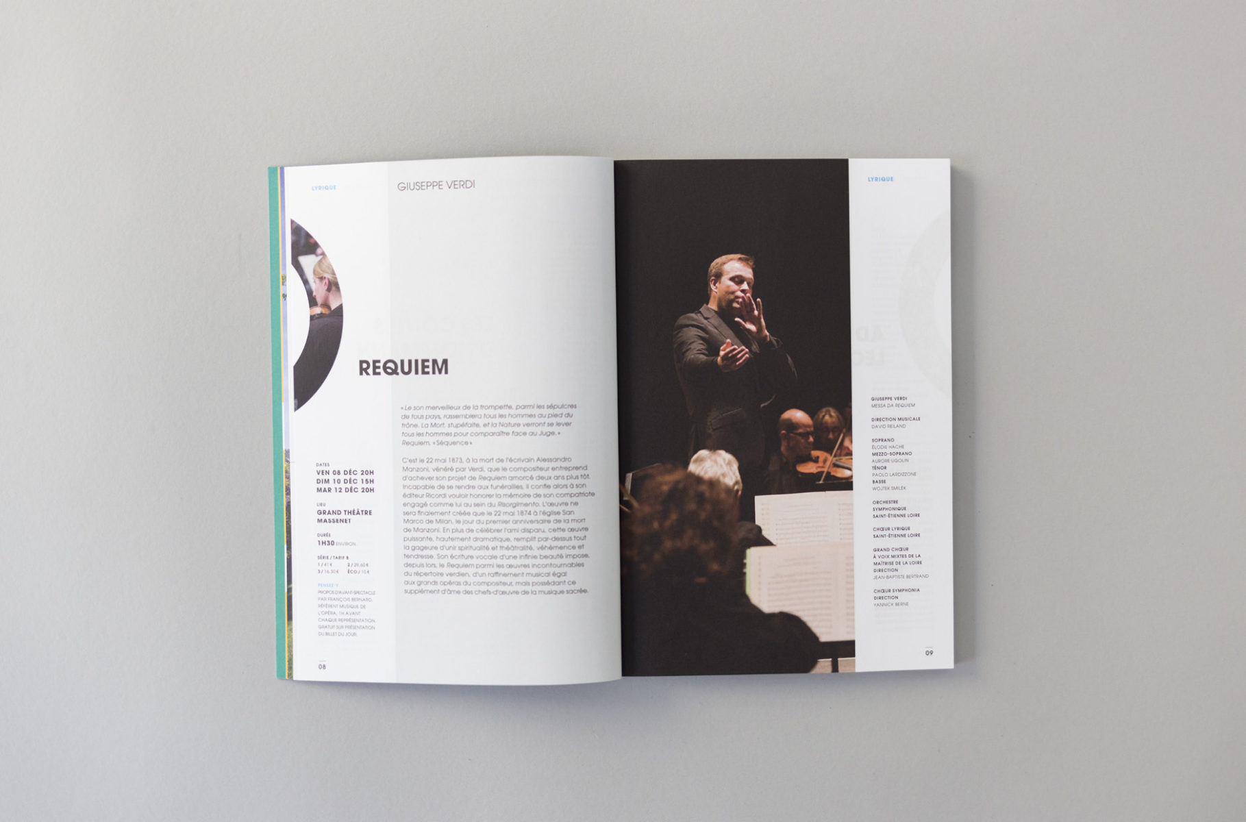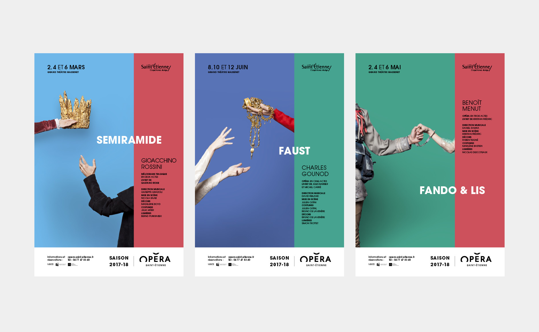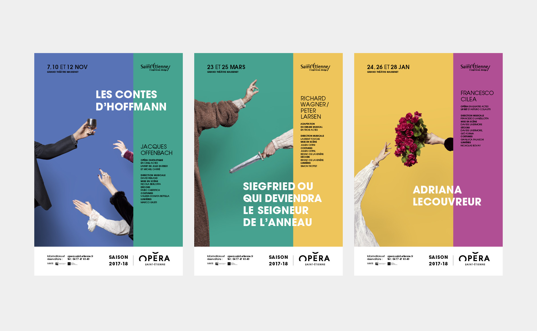 En 2015, nous concevions l'identité visuelle de l'opéra. Un logo typographique décrivant autant le bâtiment (avec son accent en forme de pagode) que la mission de cet opéra (accueillir et divertir tous les publics). Au fur et à mesure des saisons, le challenge était de poursuivre et renouveler cette histoire. Pour la première édition, nous mettions en avant les agents, puis l'orchestre l'année suivante. En 2017, nous avions décidé de mélanger les agents, les musiciens et les publics !
