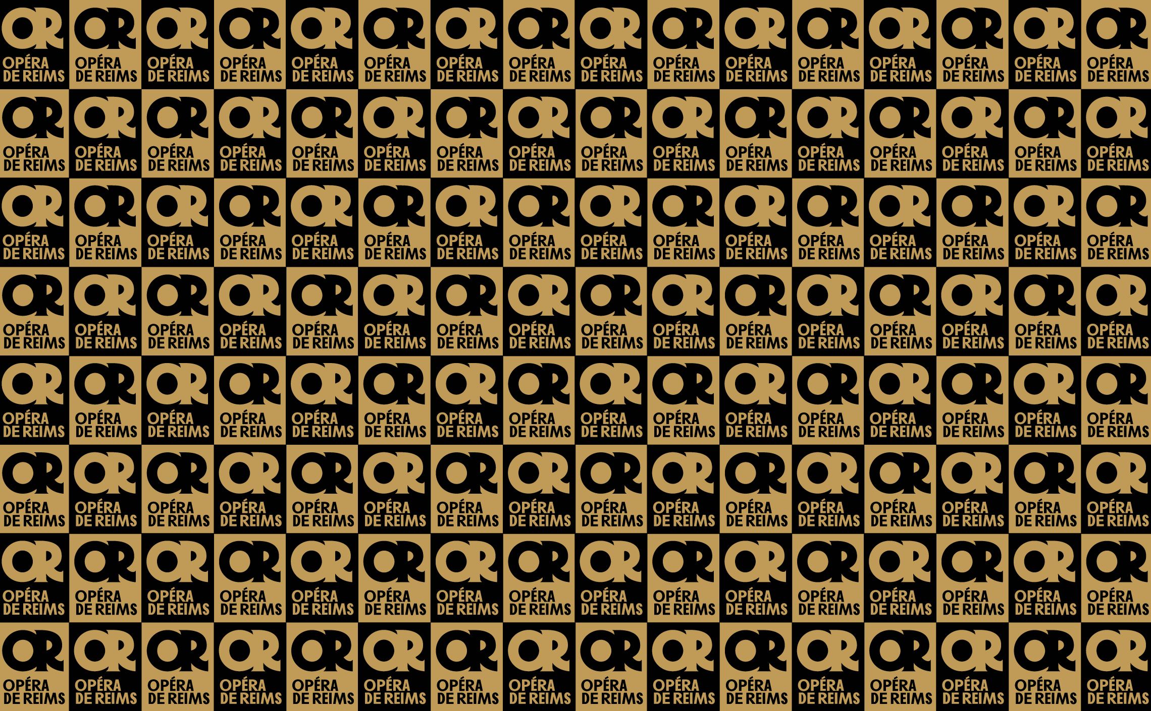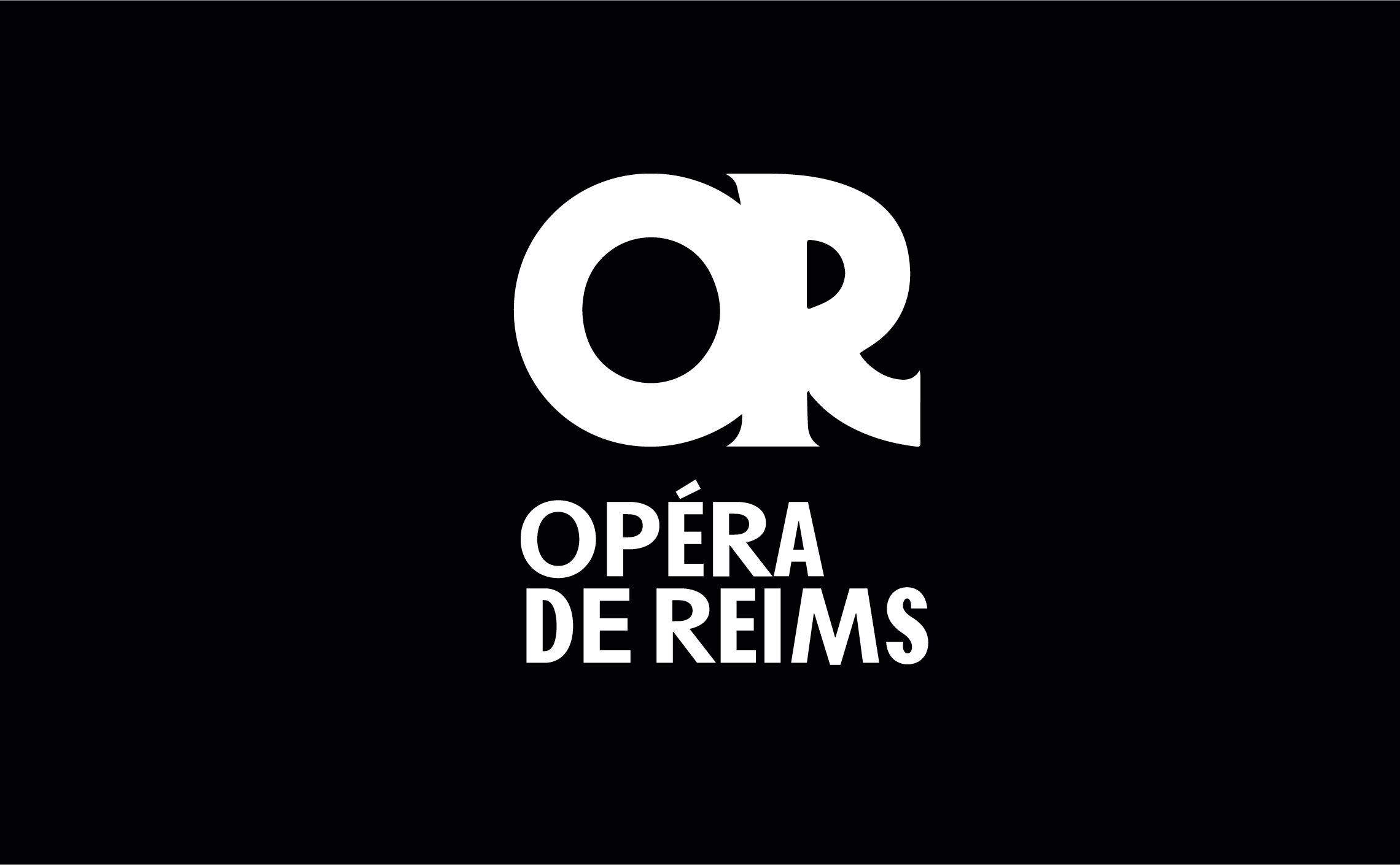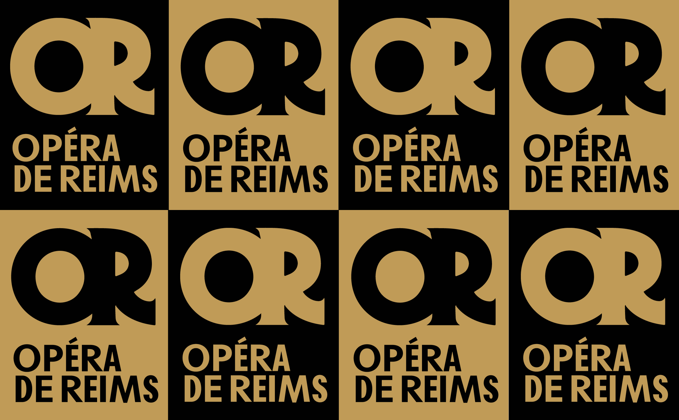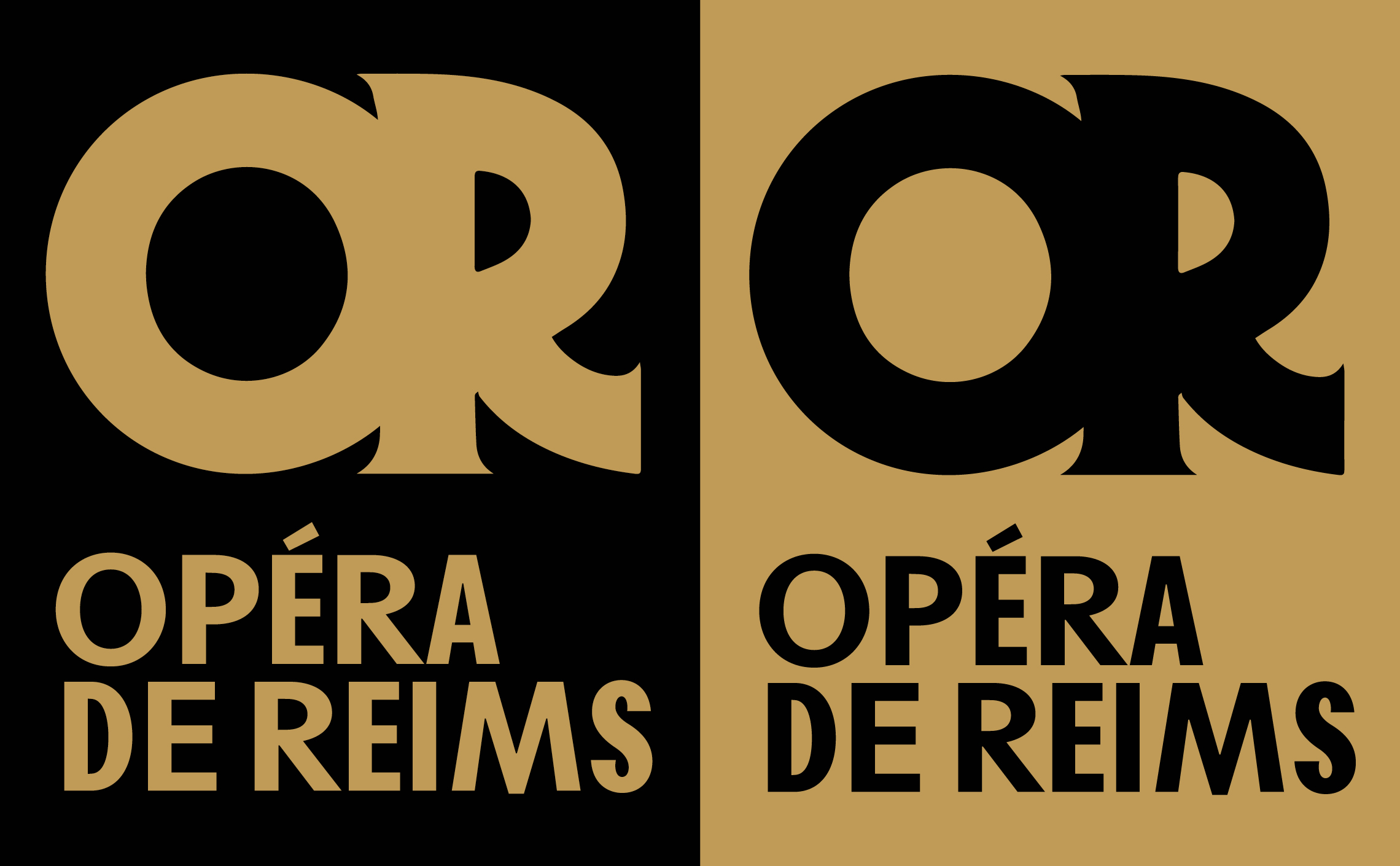 Le logotype est un monogramme "OR"constitué des initiales des mots "Opéra de Reims". C'est aussi un évocation du mot "Or" (métal précieux) renvoyant symboliquement aux dorures de l'Opéra, et qui sera ensuite volontairement détournée pour évoquer l'idée inverse de "l'OR pour tous" définissant la promesse d'un opéra accessible et partagé avec tous les Reimois.