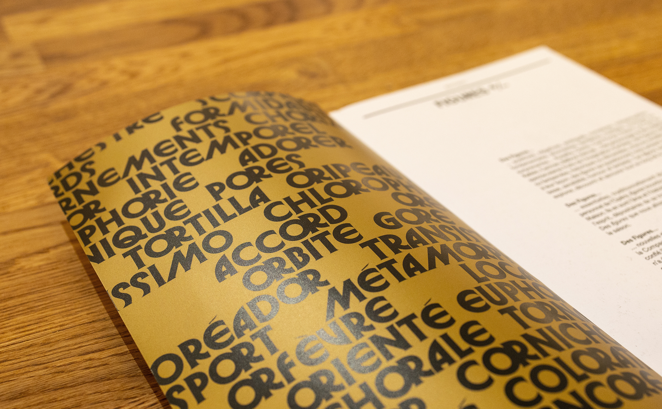 La composition des titres implique l'association de 3 graisses distinctes (bold, bold italic et bold condensed), permettant ainsi de conférer du rythme et de caractériser l'institution.