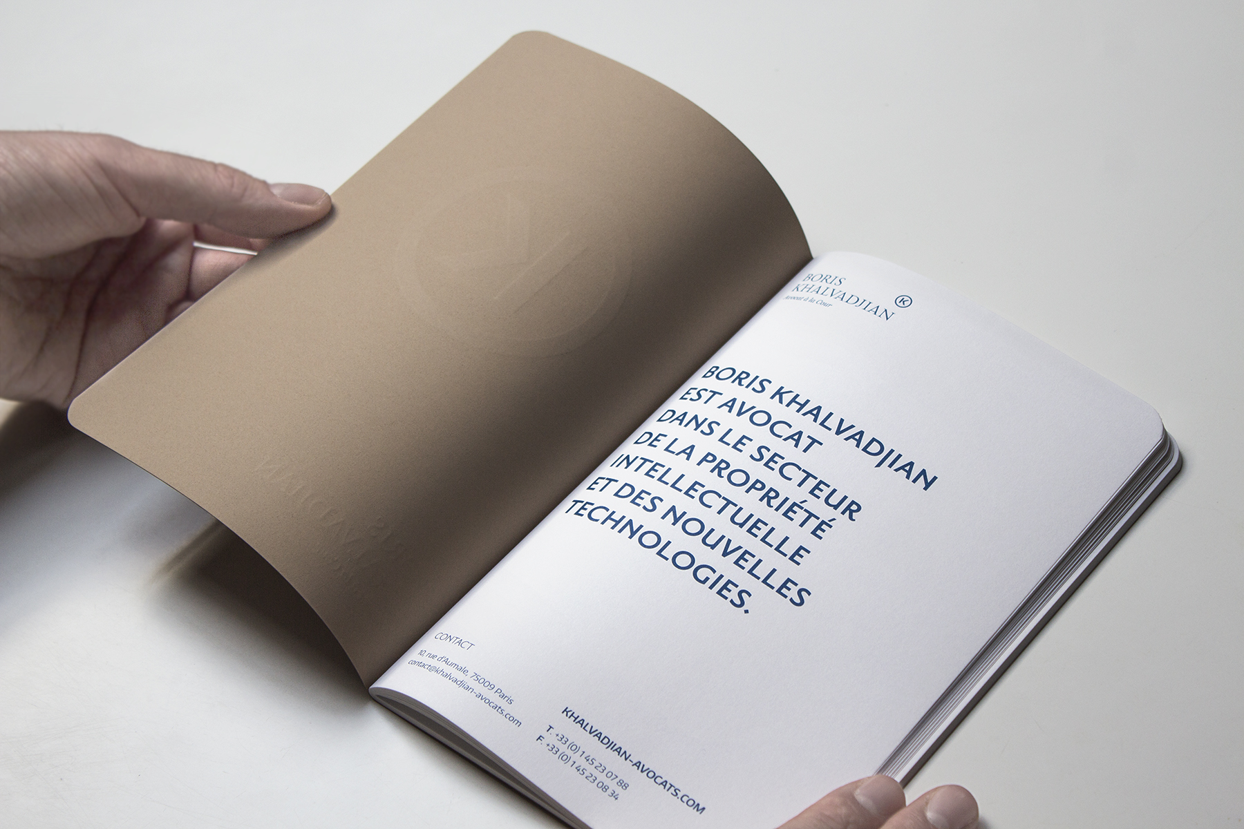 Boris Khalvadjian vient de faire évoluer la communication de son cabinet d’avocats en confiant à Graphéine la création de sa plaquette commerciale. Dédié à la création, la production et à l’innovation, son cabinet est spécialisé dans la propriété intellectuelle. Afin de faire connaitre son activité, et répondre à sa volonté d’originalité, nous avons développé pour lui un objet d’édition singulier.