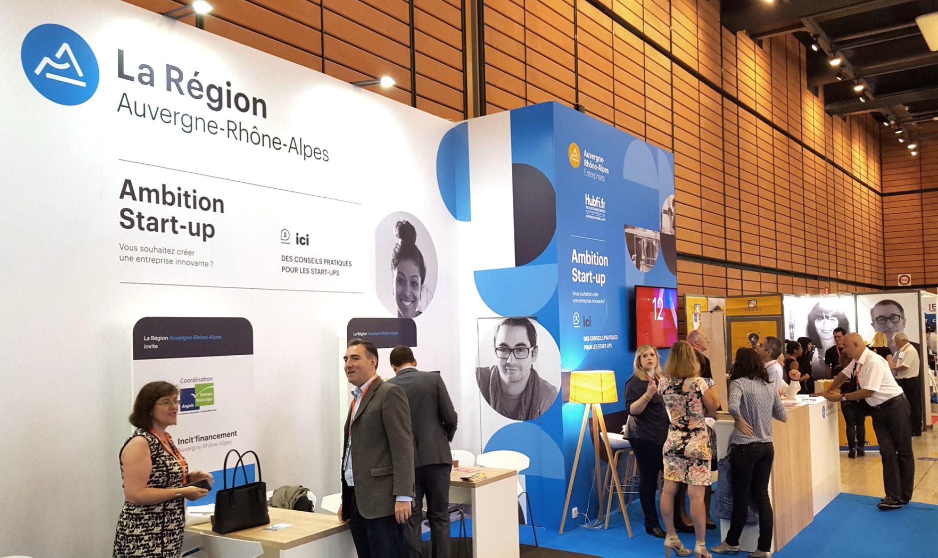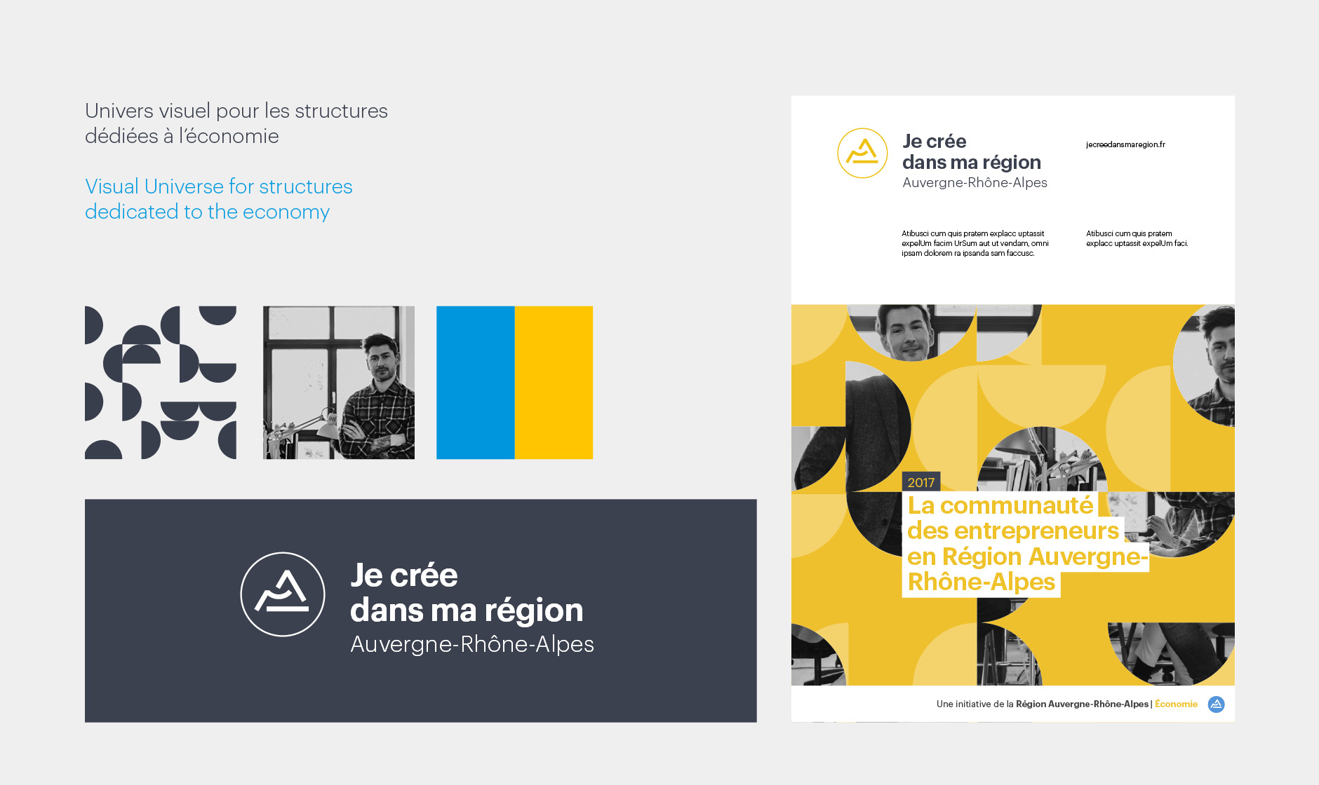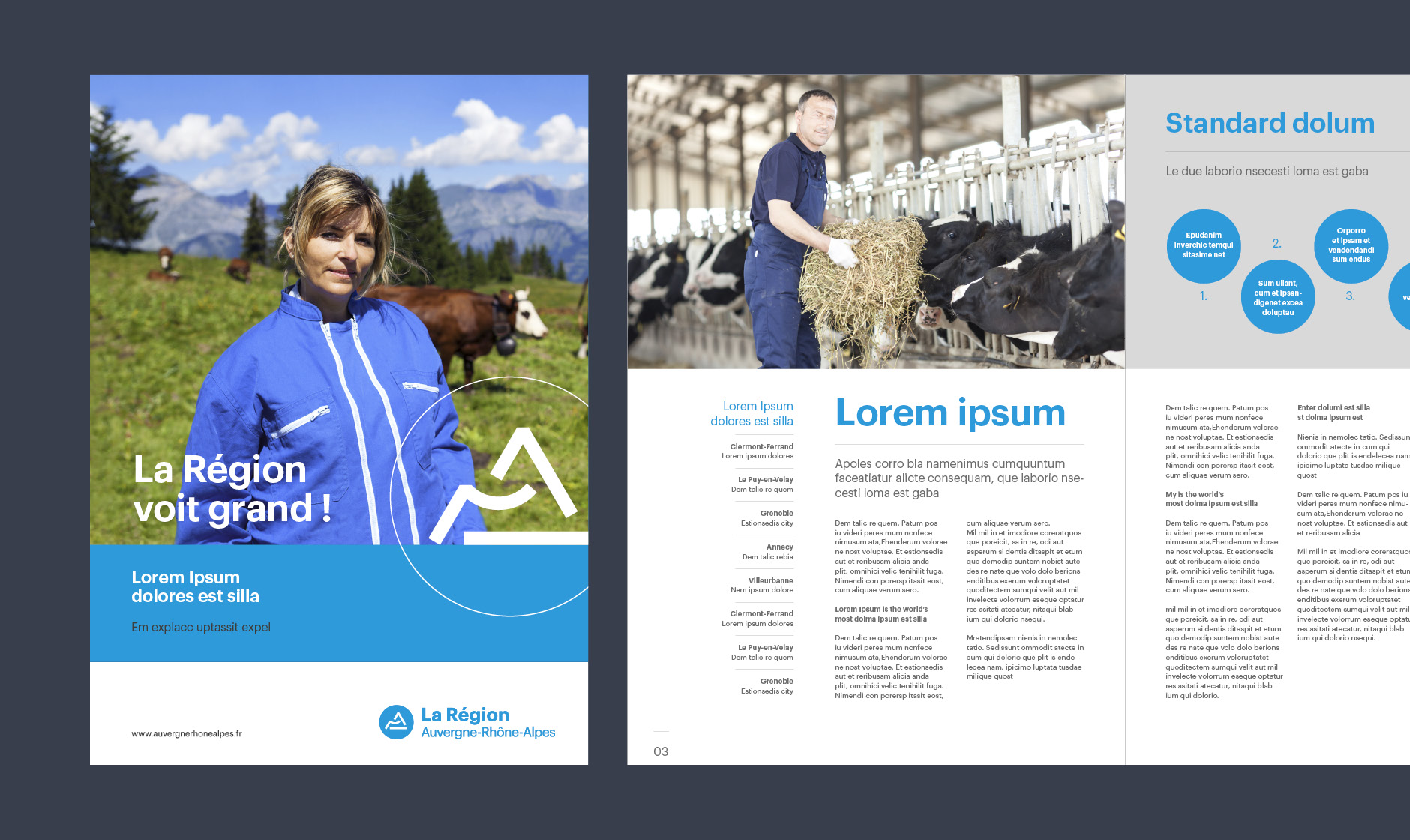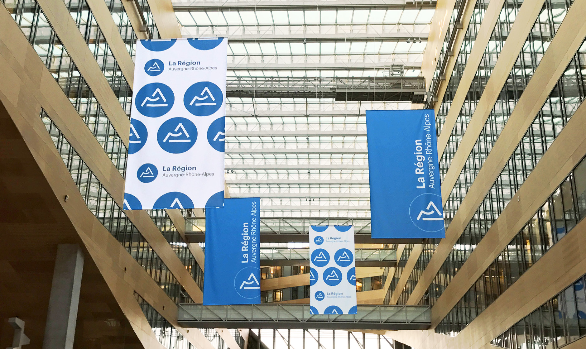 Par un jeu typographique induisant un double niveau de lecture, le mot Région se transforme en phrase d'action "On voit grand !". Quand "La Région voit grand", on voit tous grand.