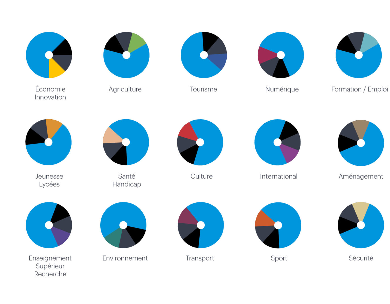 À travers cette liste de suggestions, il s'agit de construire une mini-histoire. Par exemple, en matière de sport, la région "équipe, forme, entraine, soutient, gagne" et au final "fait grandir"...