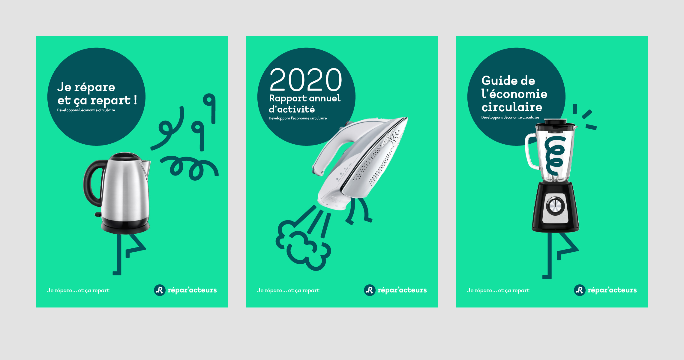 Graphéine a accompagné Répar’acteurs dans la refonte de son identité visuelle pour lui permettre de promouvoir son modèle de consommation plus responsable auprès du plus grand nombre, et aussi afin d'harmoniser et fédérer davantage l’ensemble des initiatives portées au niveau régional.