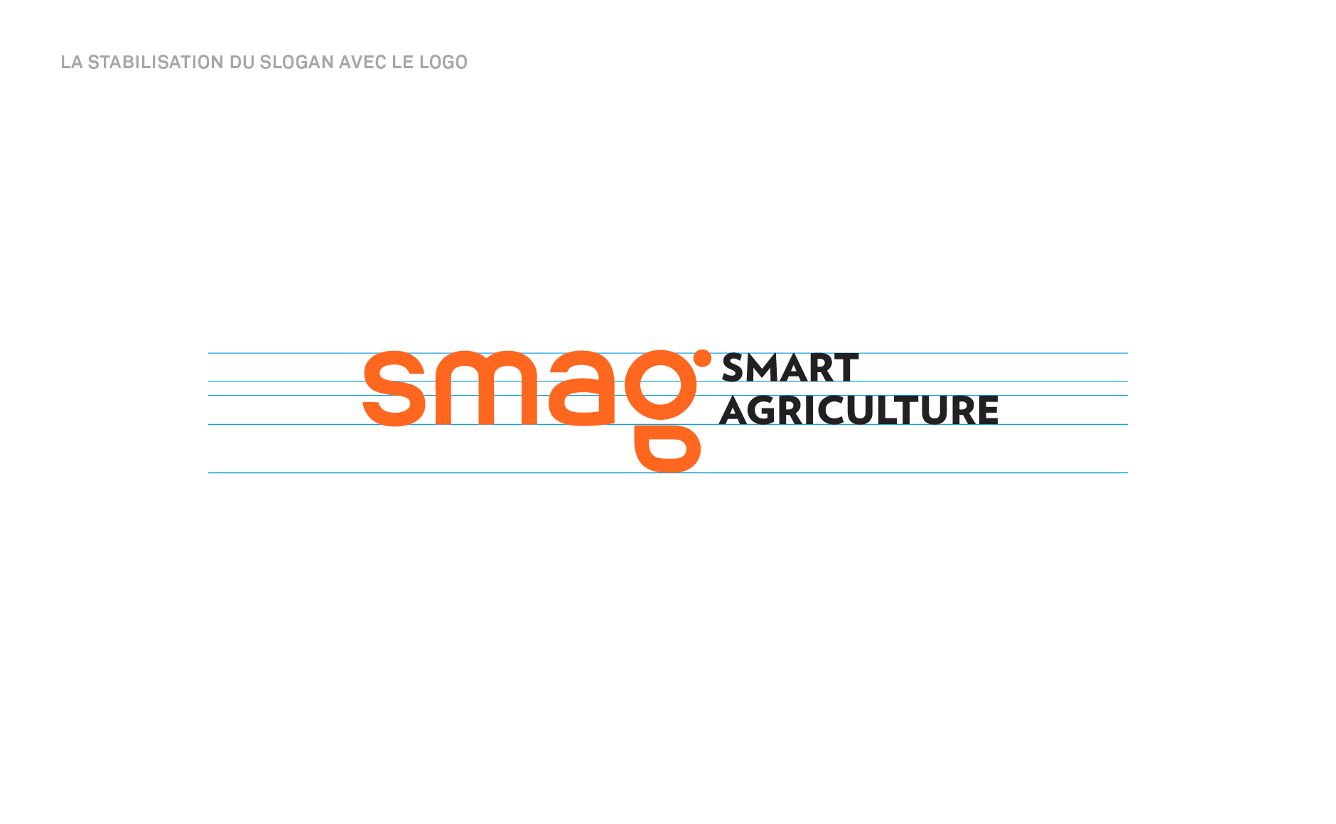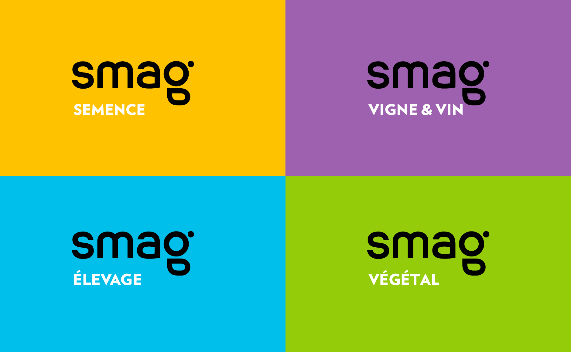 L'accident graphique créé un logotype à la silhouette mémorable et astucieuse. Ce nouvel emblème permet au logo d’être plus dynamique et plus impactant visuellement. Il fait sens avec la marque, les outils et les filières d'intervention de SMAG. La couleur orange a été redynamisée et la typographie du logo a été entièrement redessinée dans une volonté de rondeur inclusive. L’offre logicielle a été rebrandée pour créer une architecture de marque plus cohérente avec la nouvelle identité graphique de SMAG. Des déclinaisons du logo SMAG ont été réalisées par le biais de variation de couleurs pour adapter la marque aux différentes filières "semences, végétal, viticulture et élevage".