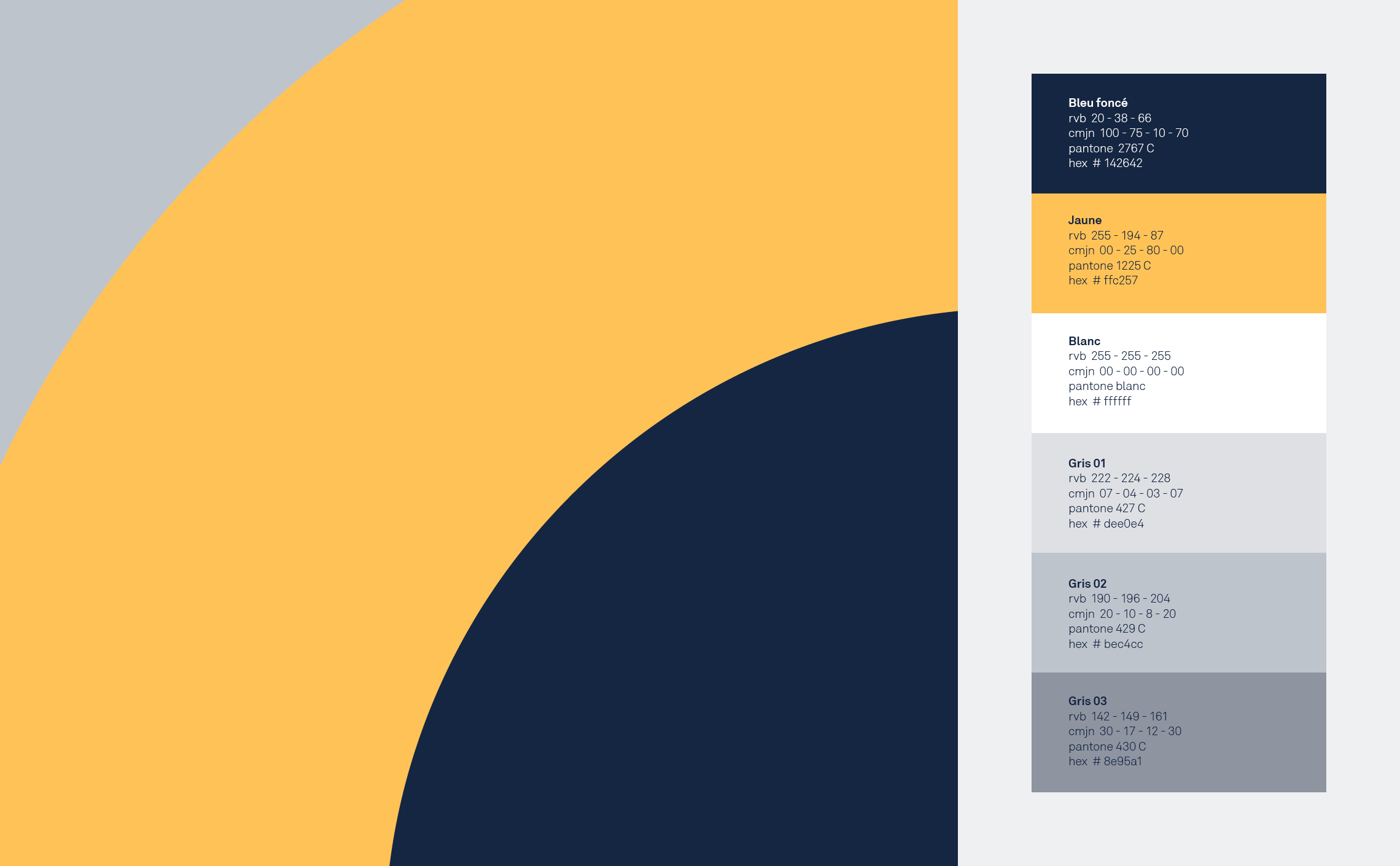 Le duo Jaune/Bleu se démarque des codes couleurs habituels de l'univers médical, considérés comme trop froids. Le jaune apporte de la chaleur, de la modernité, tandis que le bleu foncé confère de l'élégance et du sérieux.