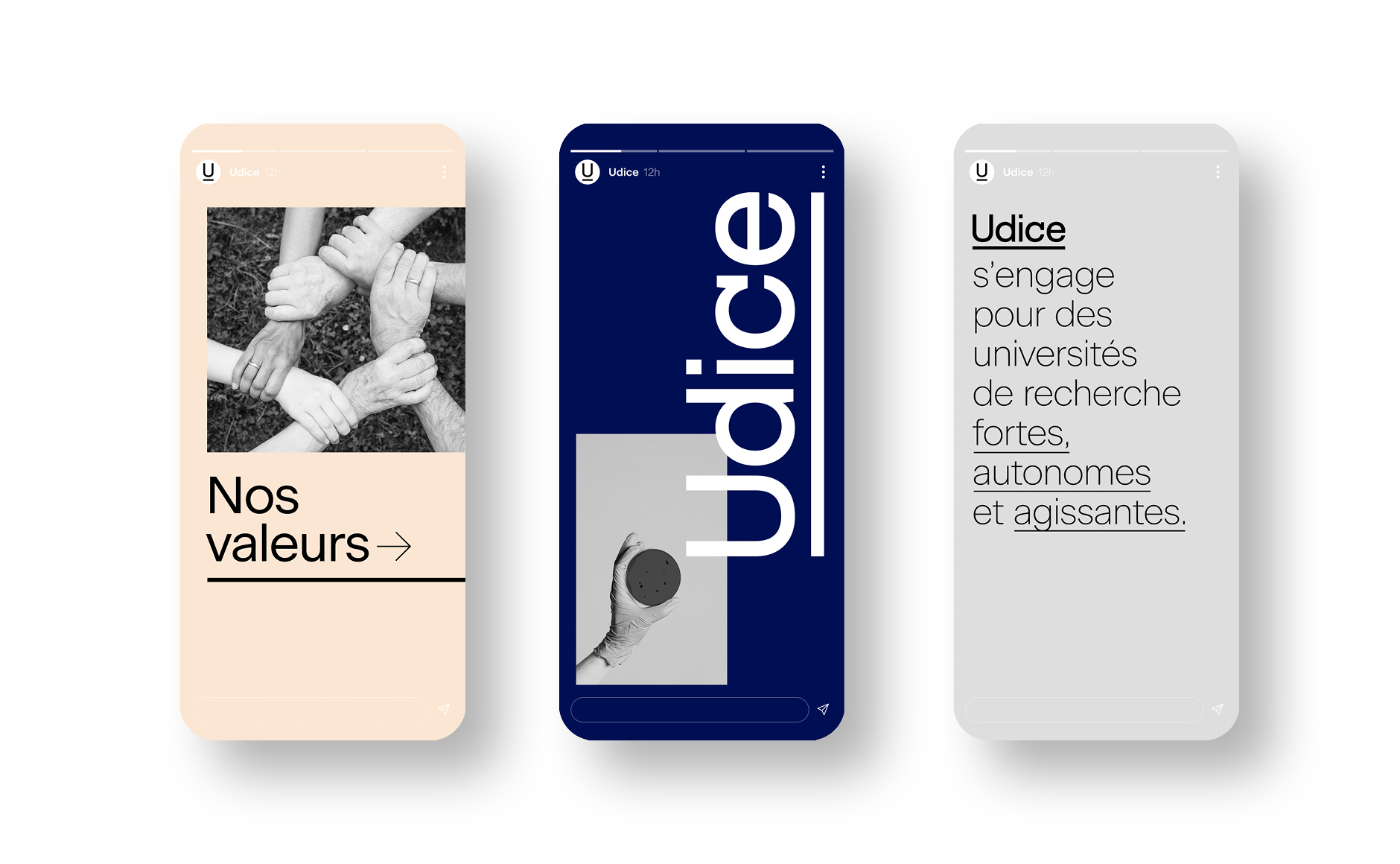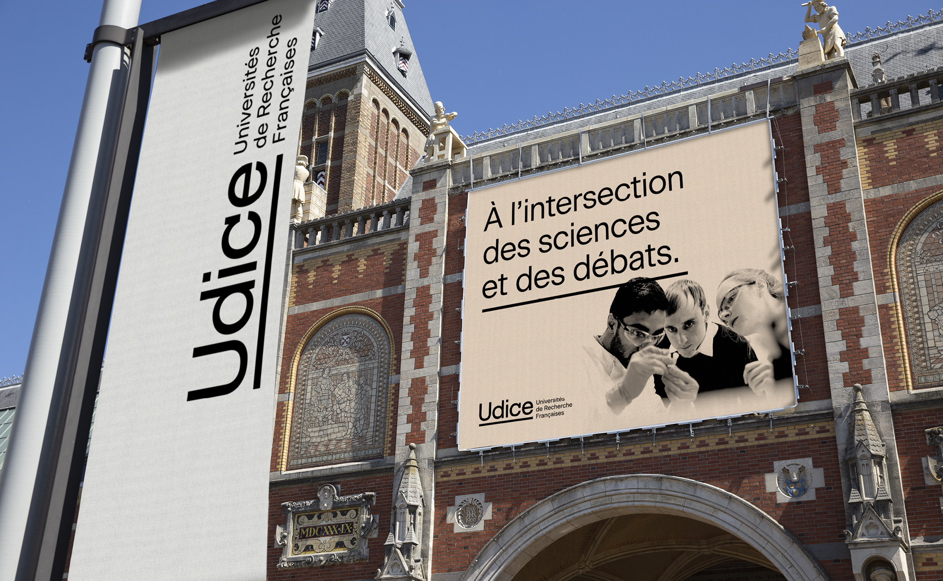 Pour contribuer à la légitimité et l’excellence de cette association, nous avons accompagné Udice dans la création de son nom, de son identité visuelle, ainsi que de sa signature. Il était important que ce regroupement dispose d’une image institutionnelle forte qui puisse les soutenir sur leurs interventions et prises de parole, ainsi que de ressortir parmi les nombreux autres regroupements d’universités de recherche intensive en Europe et à l’international.