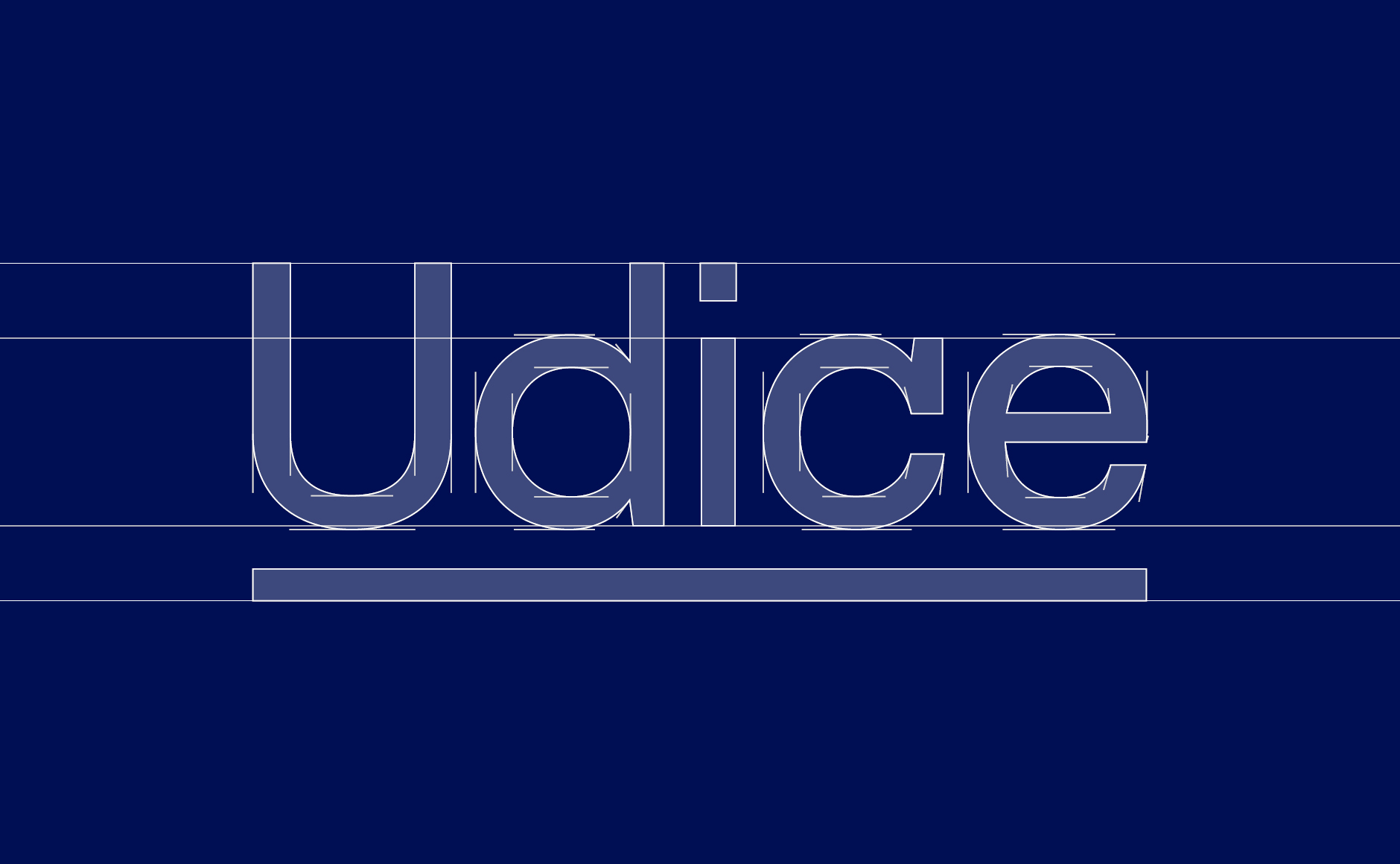 Le soulignement est le plus souvent réservé aux termes importants. Il souligne ici l’union des 10 universités sous un même projet. Il devient le trait qui symbolise l’unité de chacune et le regroupement. C’est un élément graphique qui se décline sur les supports de communication en créant un univers visuel cohérent et identifiable comme étant le style « Udice ». Appliqué aux textes et à l’iconographie, le soulignement participe à la reconnaissance de l'association.