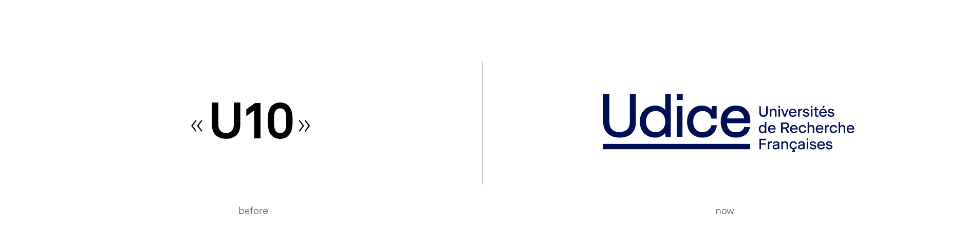 La signature « Universités de Recherche Françaises » vient quant à elle expliciter de manière très concrète l’activité d’Udice, là où le nom exprime le positionnement et les valeurs de la marque.