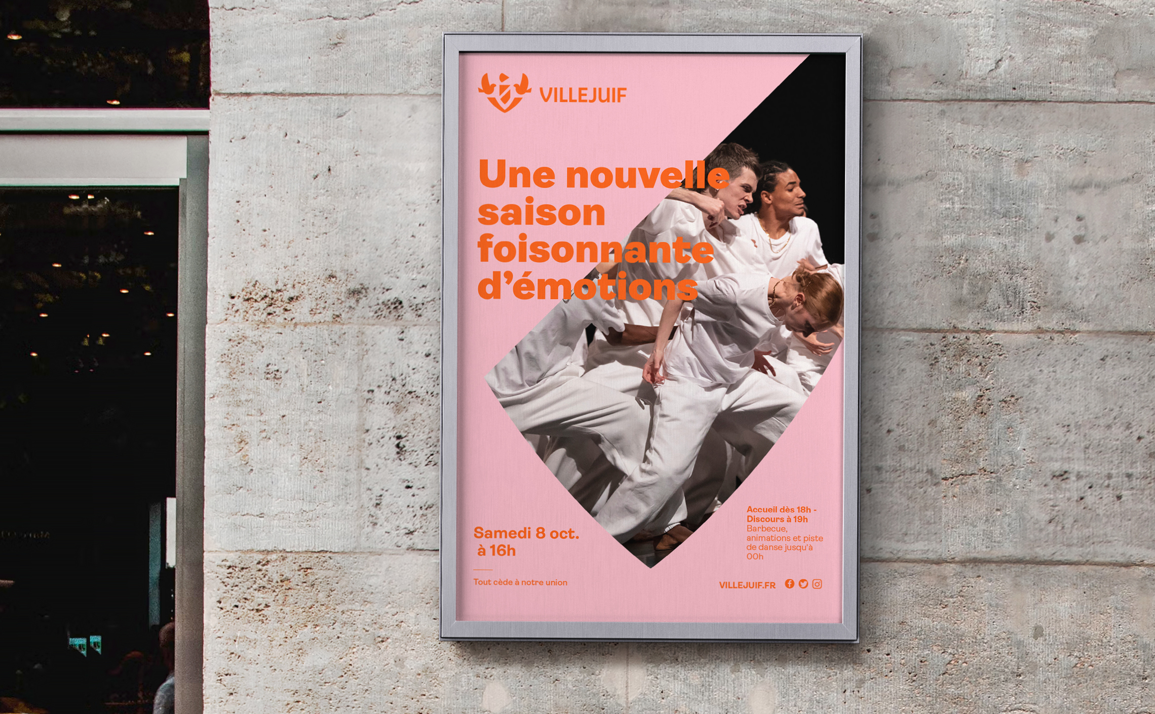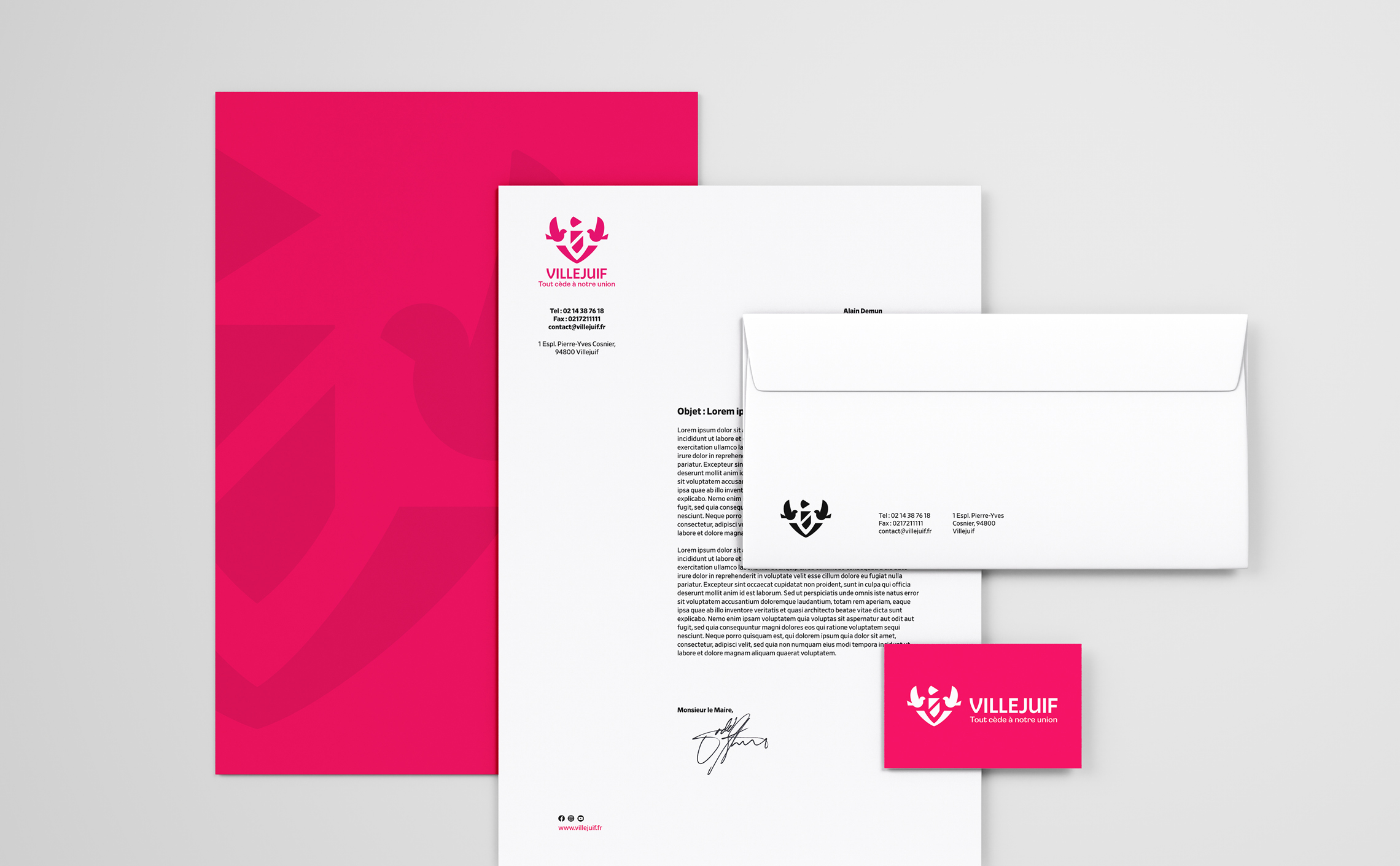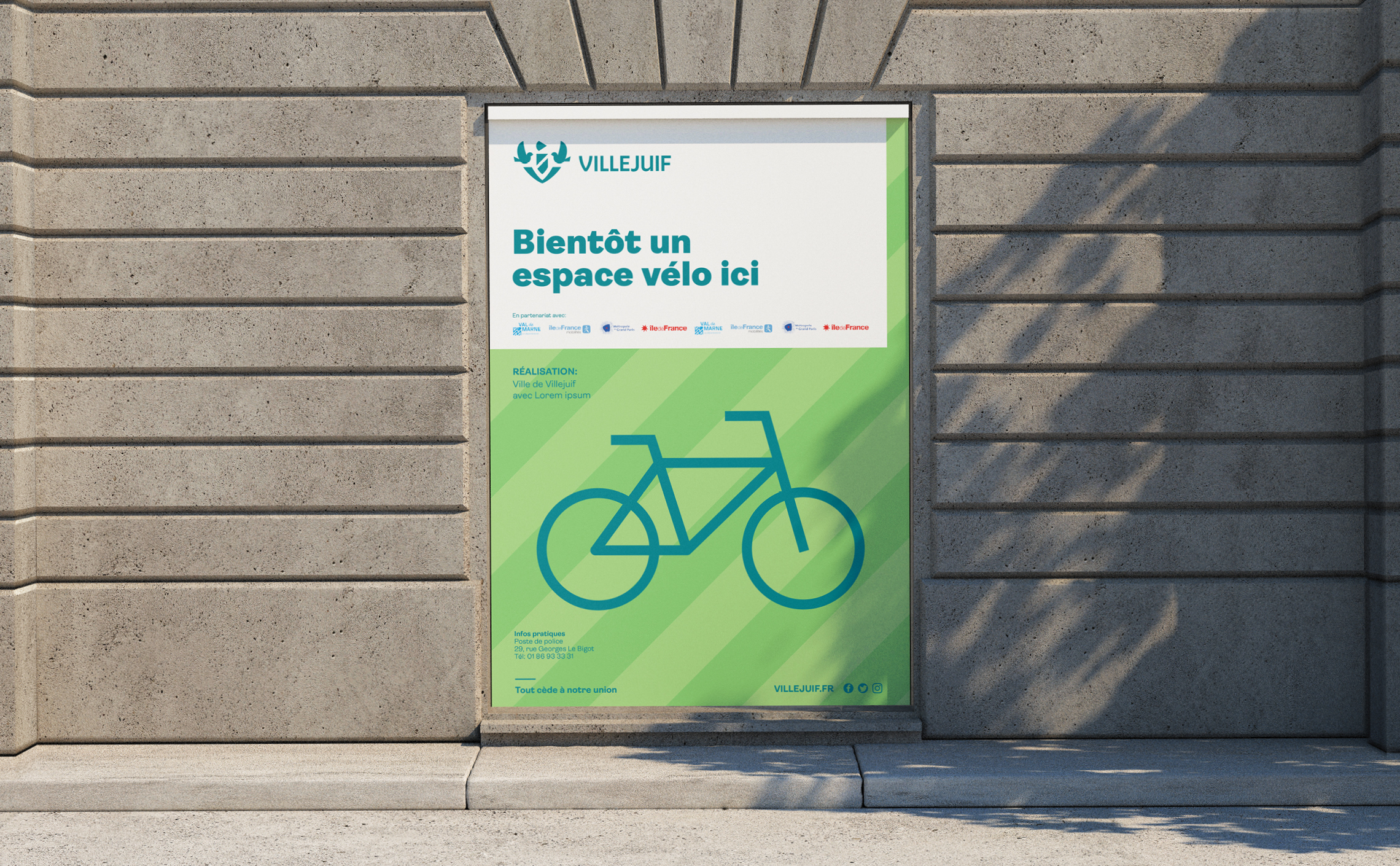 La devise « Tout cède à notre union » porte les valeurs de la ville et nous avons souhaité l’affirmer en tant que signature du territoire. Elle reprend ainsi une place centrale et devient un message à part entière. Le terme d’union qui caractérise si bien la solidarité des villejuifoises et villejuifois se décline pour identifier les 3 engagements piliers de la ville : citoyenneté, solidarité et transition écologique.