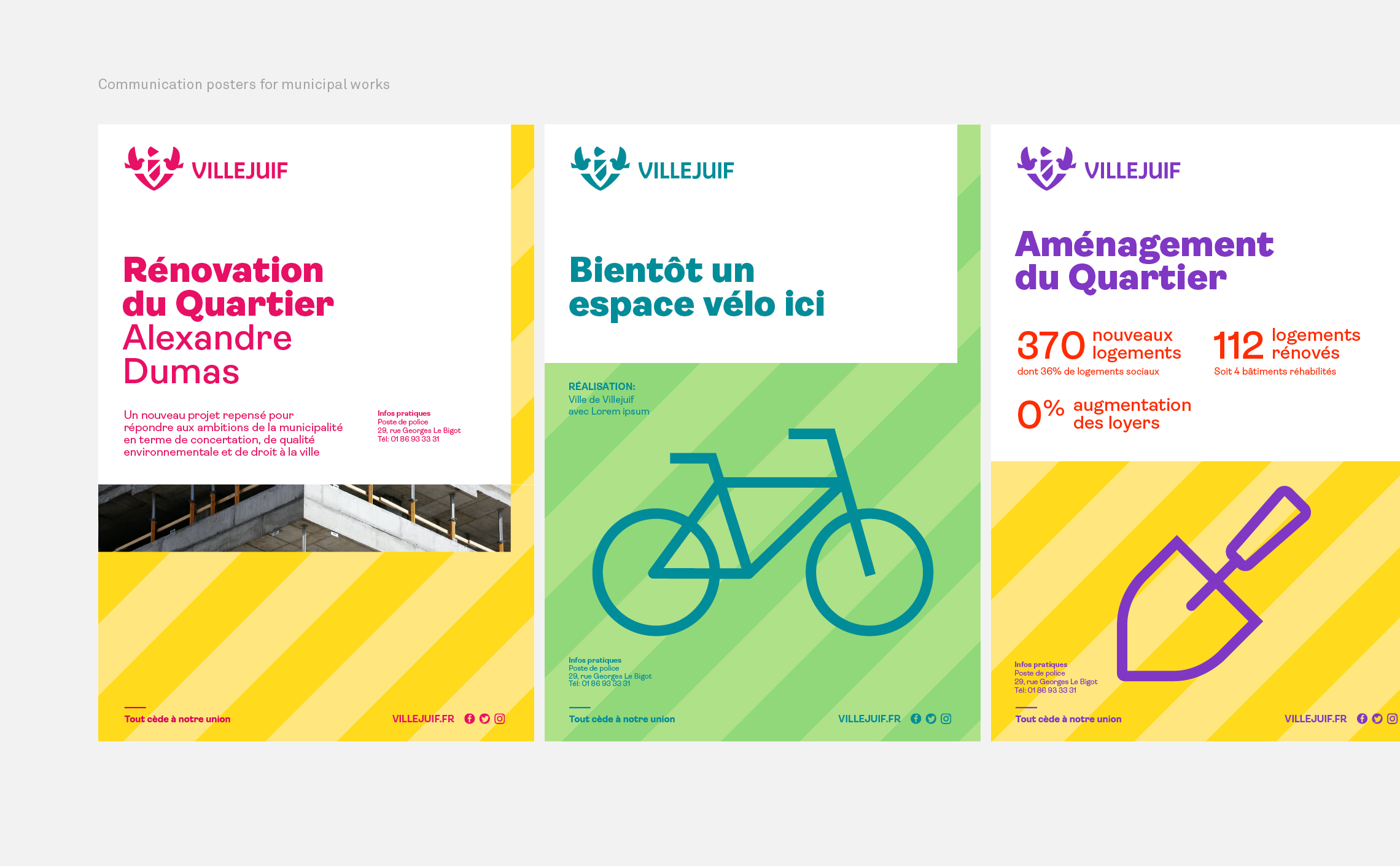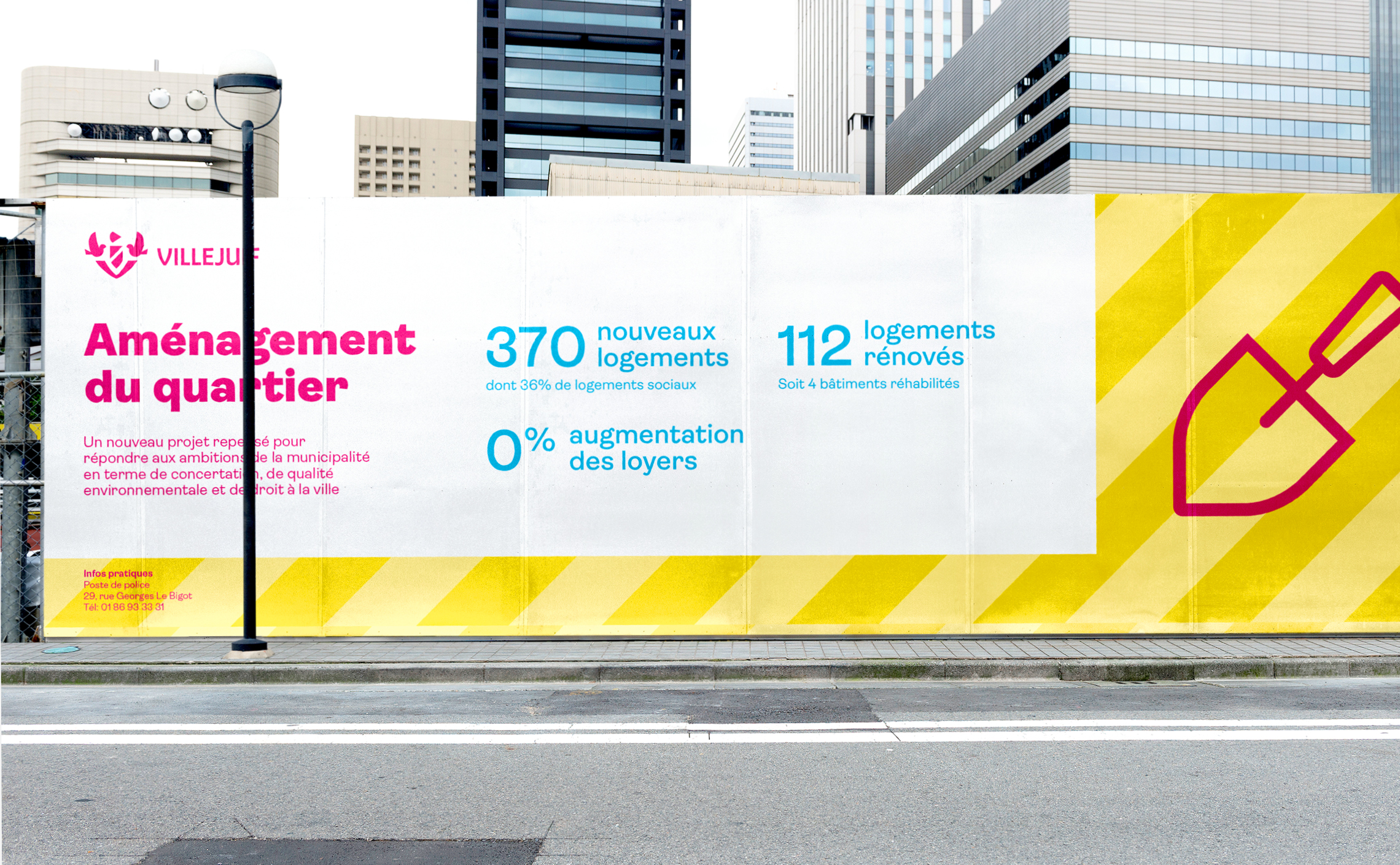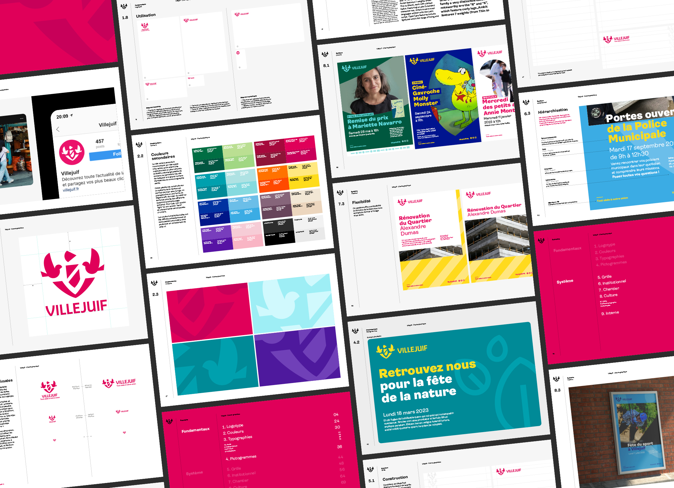 Villejuif disposait d’un ensemble d’outils de communication disparate qui ne permettait pas l’affirmation et la reconnaissance de son identité visuelle. Il a été nécessaire de redonner une place centrale au logotype pour permettre un marquage systématique, impactant et reconnaissable du nouveau système d’identité visuelle. En apportant de la cohérence nous avons redonné une voix aux communications de la ville. Le logotype y est maintenant à l’honneur et facilite l’identification des communications.